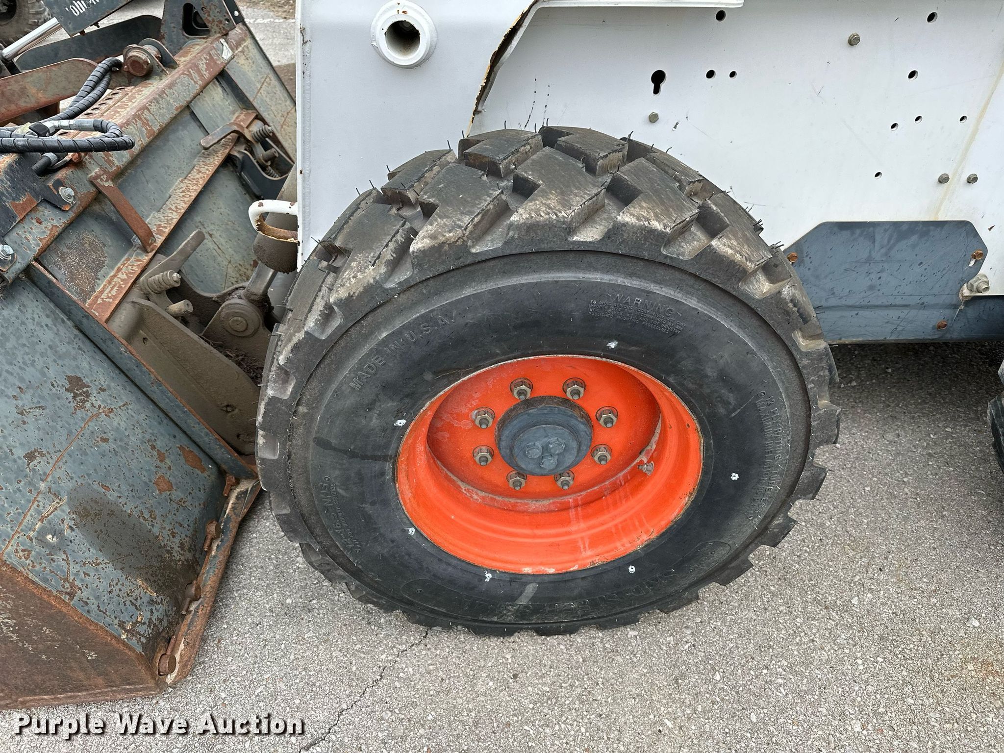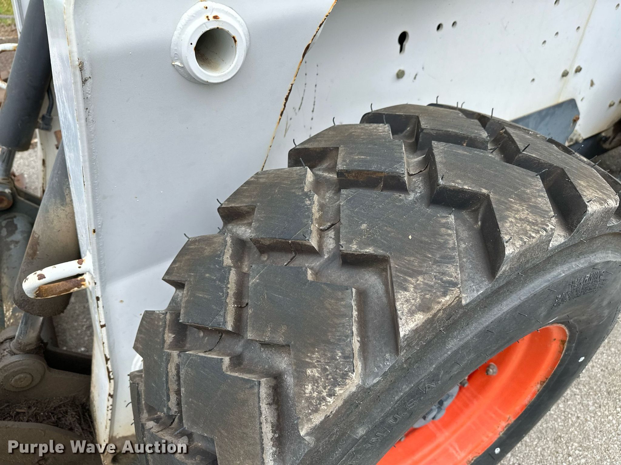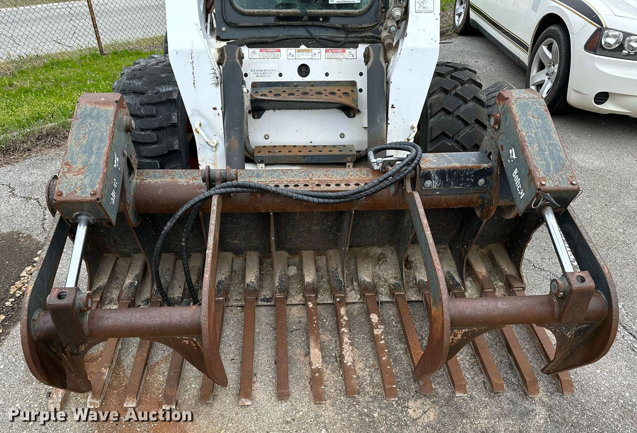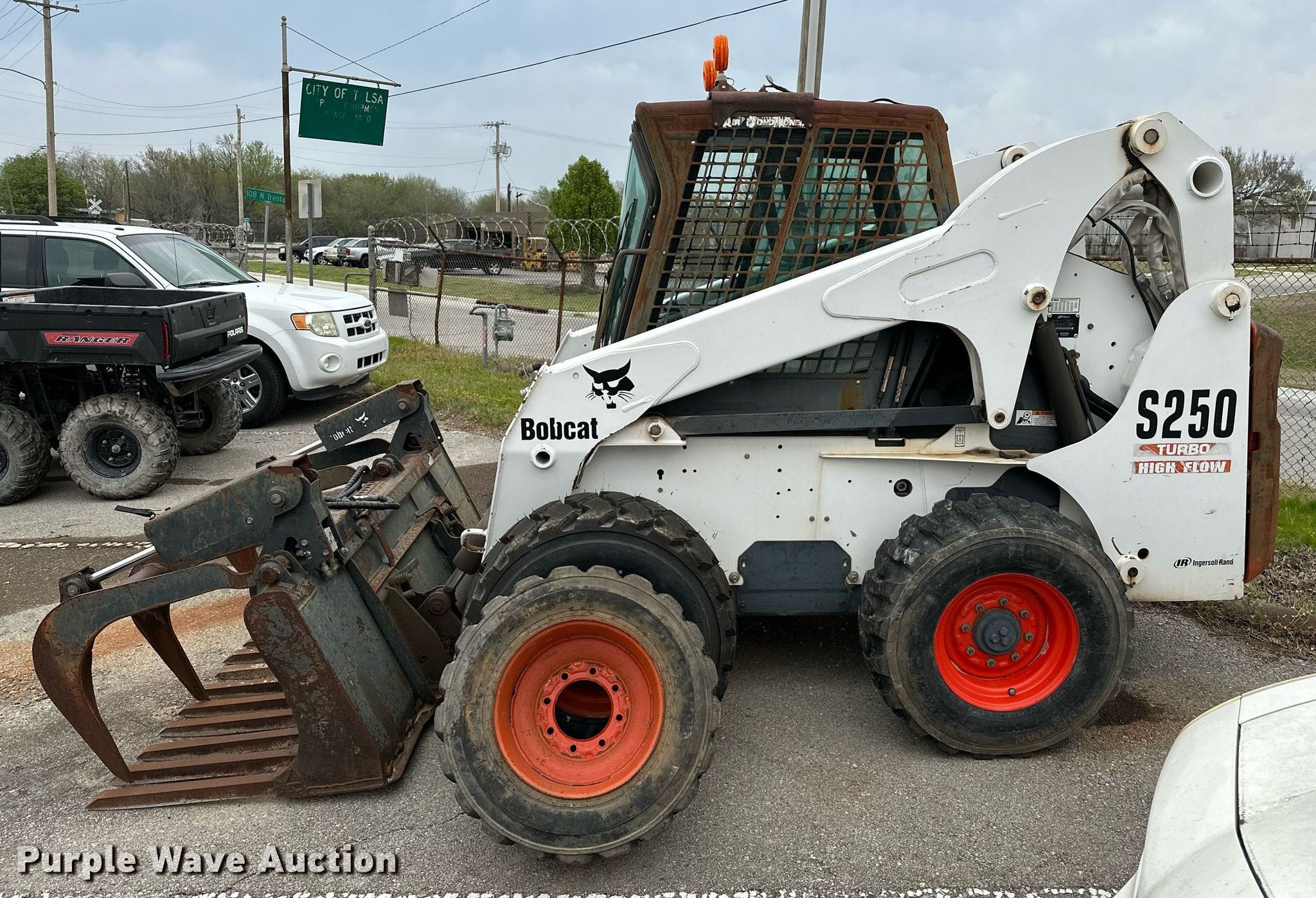 2004 Bobcat S250 skid steer loader. Hours: 1,151 on meter, Serial: 526014632, Unit #: 722. Engine Kubota, Cylinders: 4, Fuel type: Diesel. Transmission Hydrostatic, Two speed travel. Operators station Enclosed cab, AC, Heat, Bucket control: Foot, Electronic Monitoring System panel. Features Auxiliary hydraulics, Auxiliary electrical outlet, Quick coupler: Manual, Rock grapple bucket Bobcat, Width: 79". Tires Size: 12-16.5. Notes (2) additional tires and wheels, Hydraulic leak, Non-operational grapple, solenoid issues. City of Tulsa, OK. 208 North Trenton Avenue. Tulsa, OK 74120