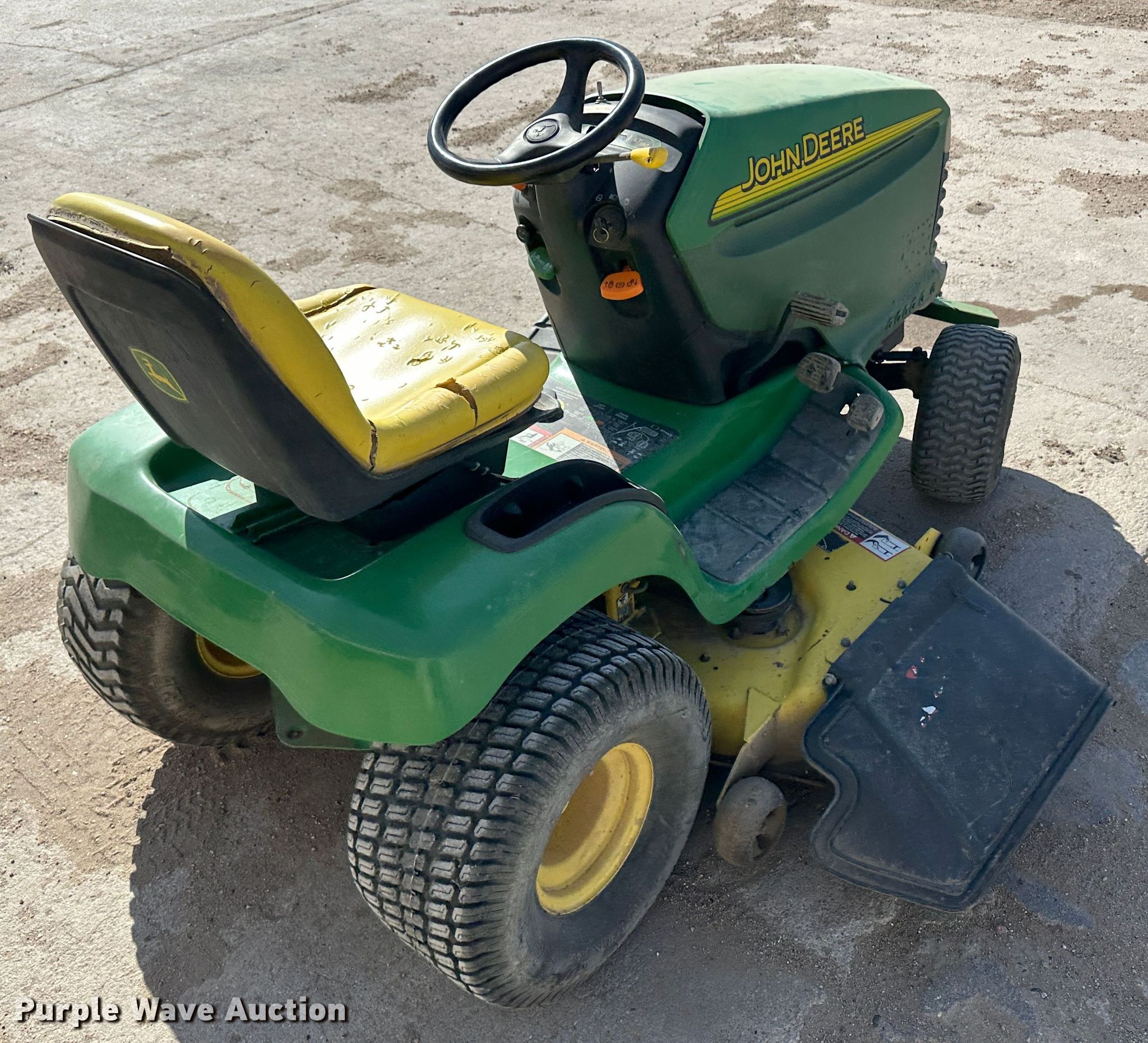 Purple Wave is selling a used Lawn Mower in Kansas. This item is a John Deere LT180 lawn mower with the following: Hours: 344 on meter, Cutting width: 48", Serial: M0L180J015398
