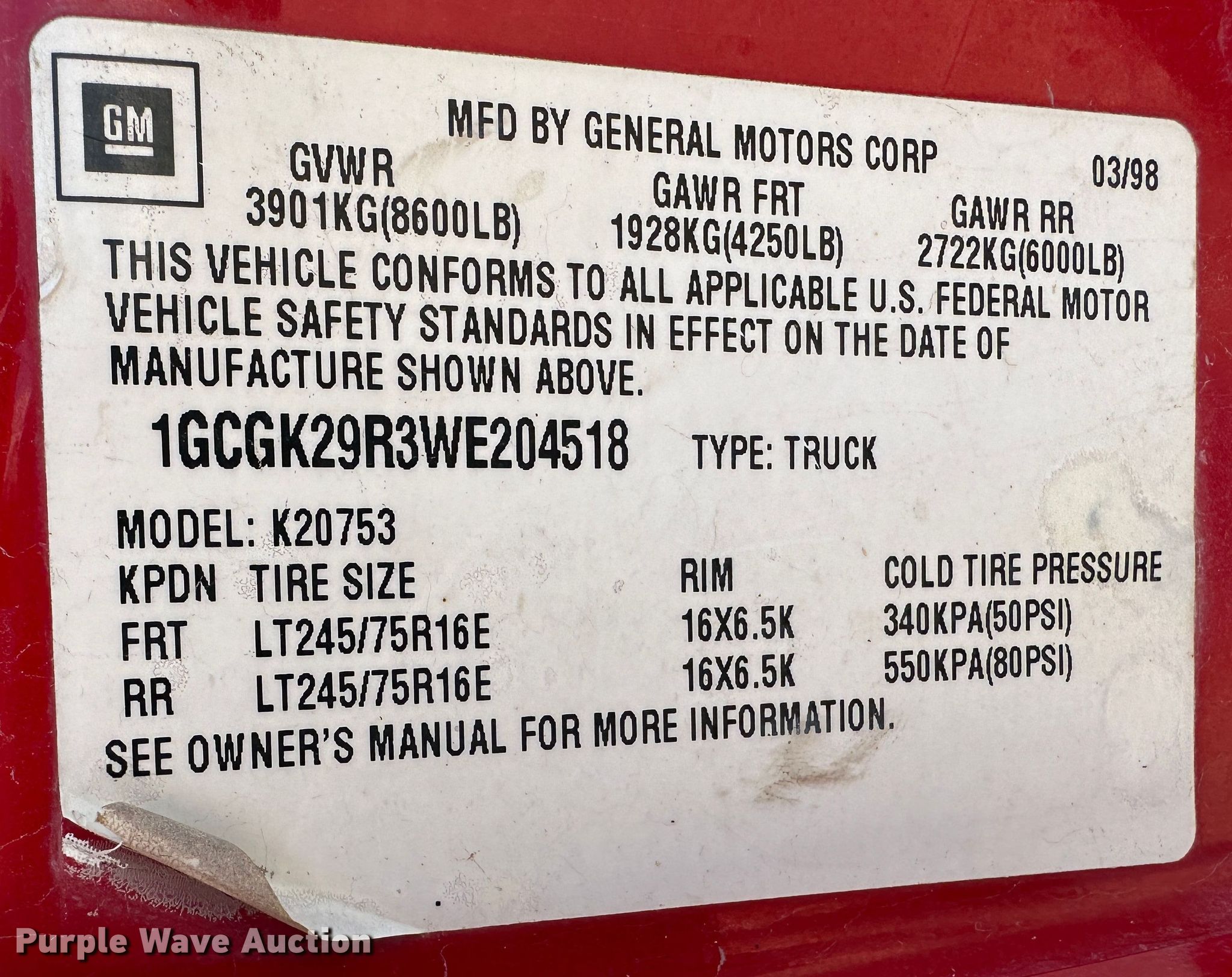 - VIN: 1GCGK29R3WE204518