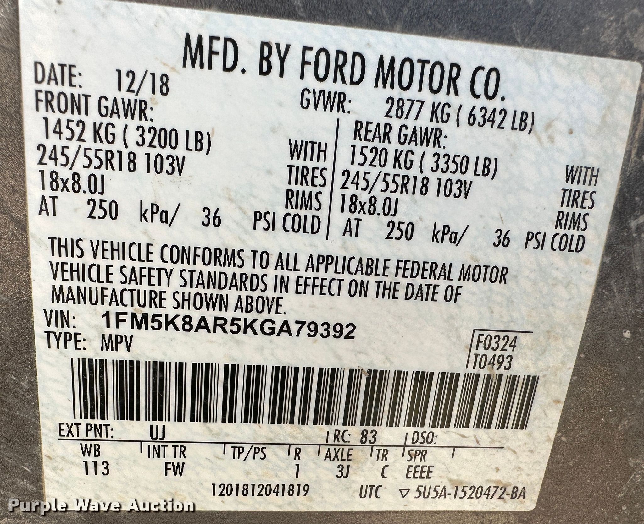 Purple Wave is selling a used Passenger Vehicle in Kansas. This item is a 2019 Ford Explorer Police Interceptor SUV with the following: Miles: 212,227 on odometer, VIN: 1FM5K8AR5KGA79392