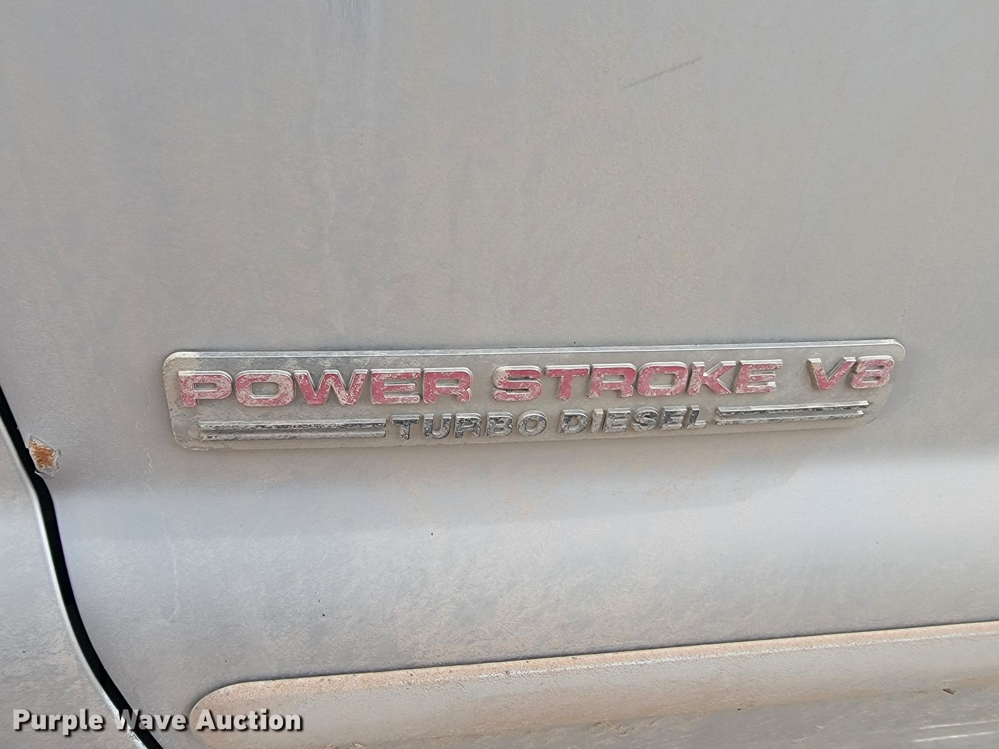 2003 Ford F250 Super Duty Lariat Crew Cab pickup truck. Miles: 252,745 on odometer, VIN: 1FTNW21P83ED79459. Engine Displacement: 6.0L V8 OHV, Cylinders: 8, Fuel type: Diesel. Transmission Automatic, Four wheel drive. Interior AC, Heat, Seat: Power driver, Power passenger, Power windows, Power locks, Cruise control. Features Auiliary fuel tank Pump. Tires Size: LT265/75R16. Notes Windshield chipped or cracked. Nebraska title. Cherry County. 85001 Nebraska 97. Mullen, NE 69152