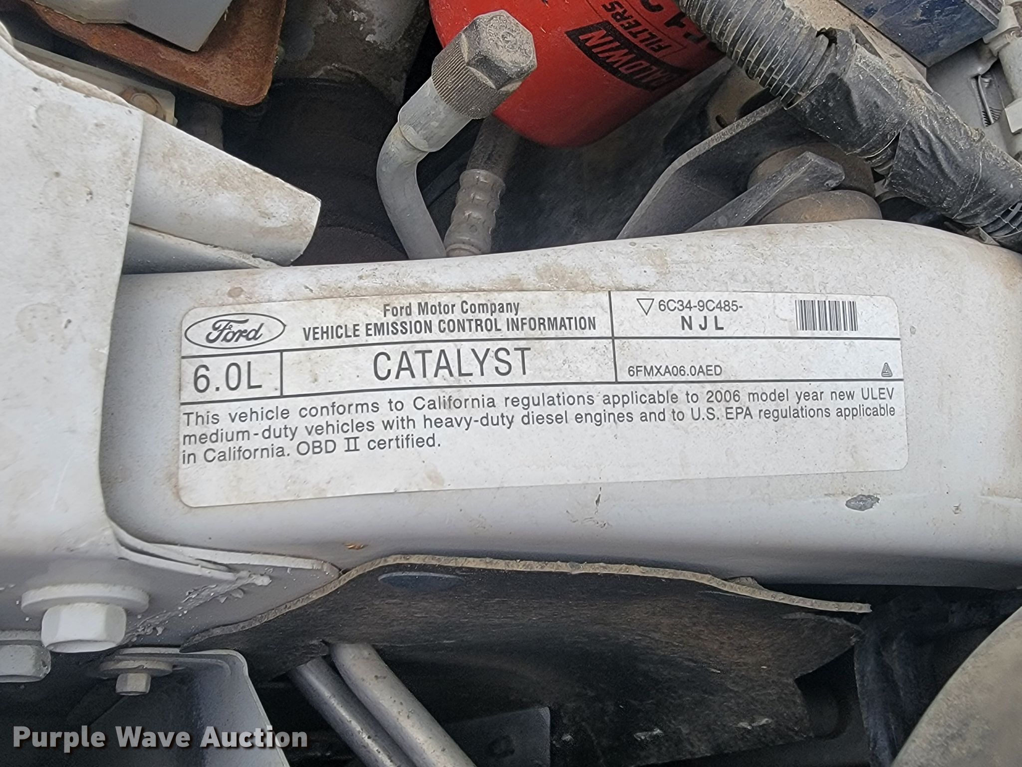 2006 Ford F250 Super Duty XL SuperCab pickup truck. Miles: 122,785 on odometer, VIN: 1FTSX21P86ED20190. Engine Displacement: 6.0L V8 OHV, Cylinders: 8, Fuel type: Diesel. Transmission Manual, Speed: 6, Four wheel drive. Interior AC, Heat, Cruise control. Tires Size: LT265/70R17. Notes Dash warning indicator: Check engine, Windshield chipped or cracked. Nebraska title. Cherry County. 85001 Nebraska 97. Mullen, NE 69152