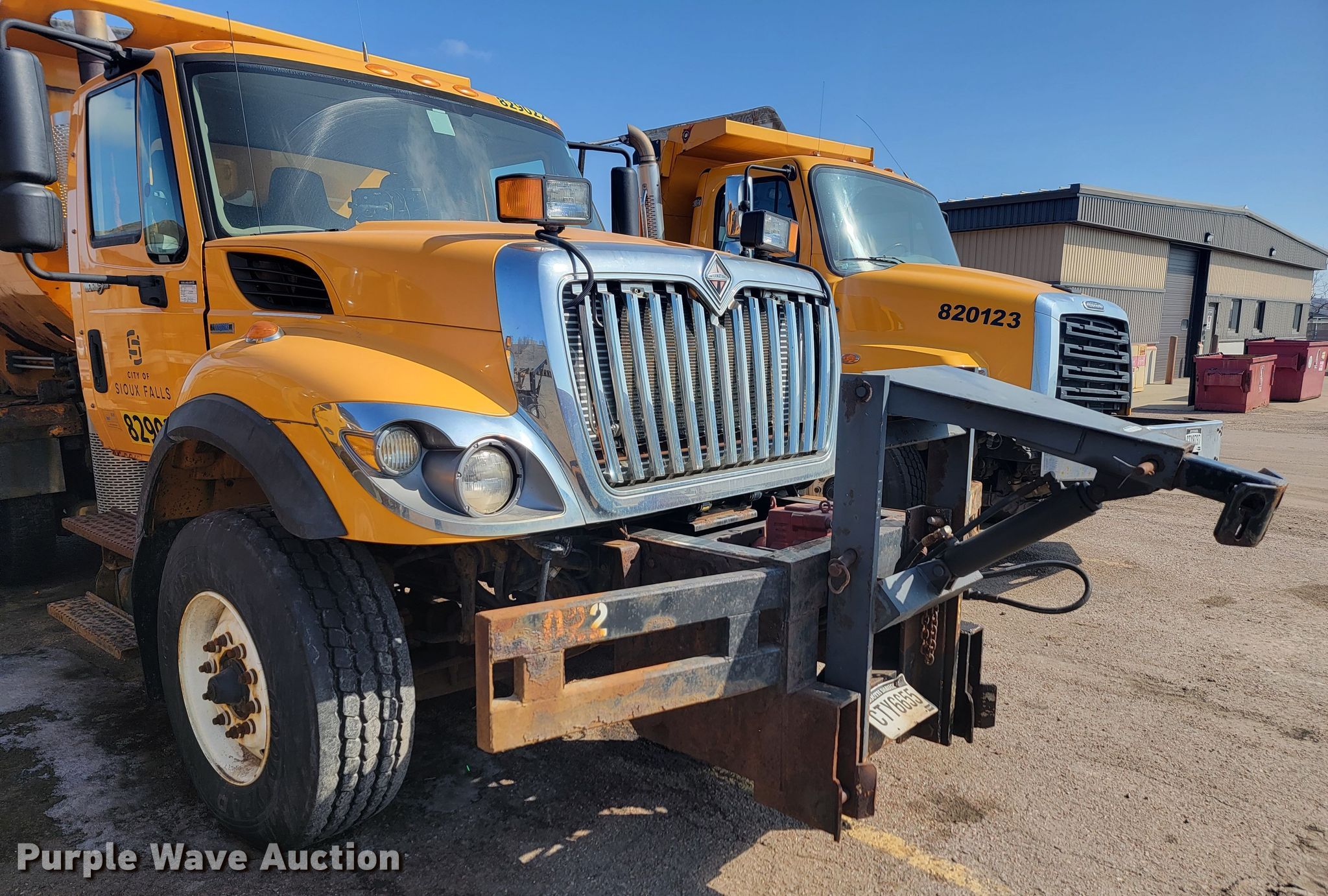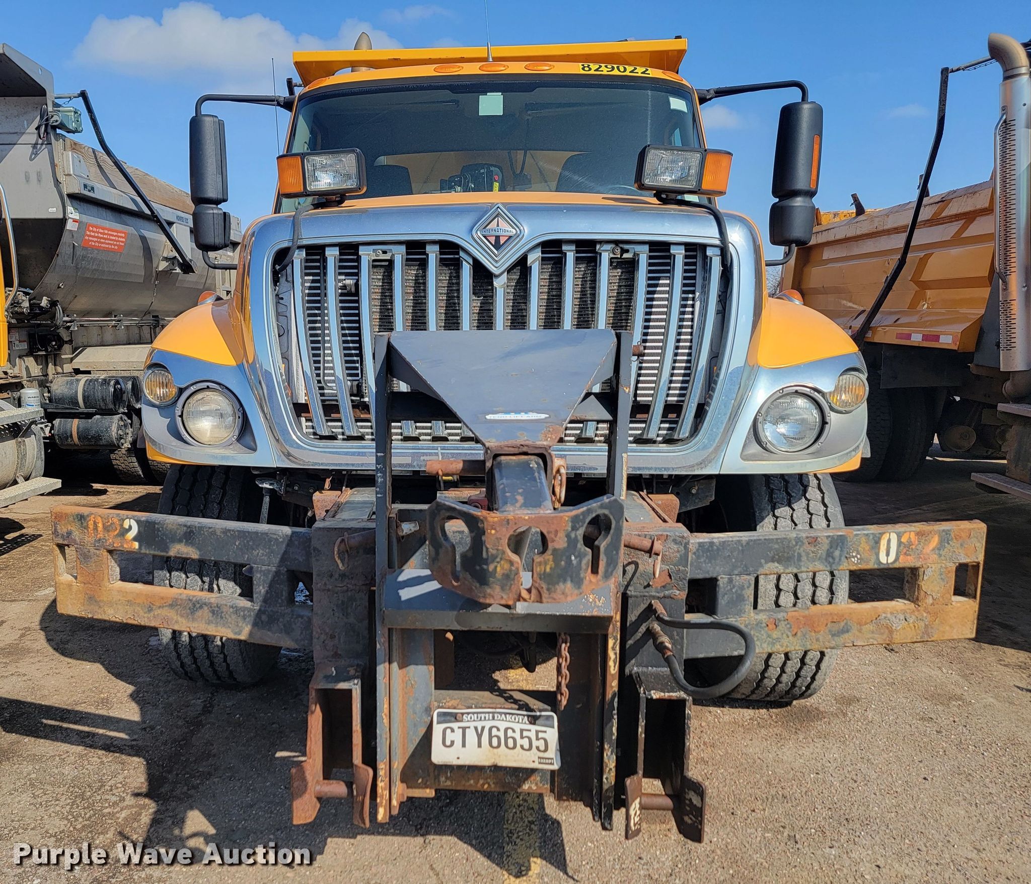 2008 International WorkStar 7400 dump truck. Miles: 138,938 on odometer, Hours: 11,223 on meter, VIN: 1HTWGAAT38J659770, Unit #: 51-9. Engine International MaxxForce DT, Displacement: 7.6L, Cylinders: 6, Fuel type: Diesel. Transmission Automatic. Chassis Double frame, Axles: Tandem, Differential lock: Inter-axle, Suspension: Spring over walking beam Dump valves, Brakes: Air, Front mount PTO, GVWR: 64,000 lbs FAWR: 18,000 lbs, IAWR: 23,000 lbs, RAWR: 23,000 lbs. Interior AC, Heat, Cruise control. Features Dump bed 14' L x 96" W, Side height: 36", Side board height: 10", Bed type: Steel, Roll tarp, Ram: Single , End gate: Air operated, Plow Monroe, Width: 144". Tires Front: 385/65R22.5, Rear: 11R22.5. Notes Driveline issues, Non-operational unit. South Dakota title. Title distribution may be delayed up to 14 days from verification of funds. Sioux Falls Street Department - Open inspection April 28. 1000 E Chambers St.. Sioux Falls, SD 57104