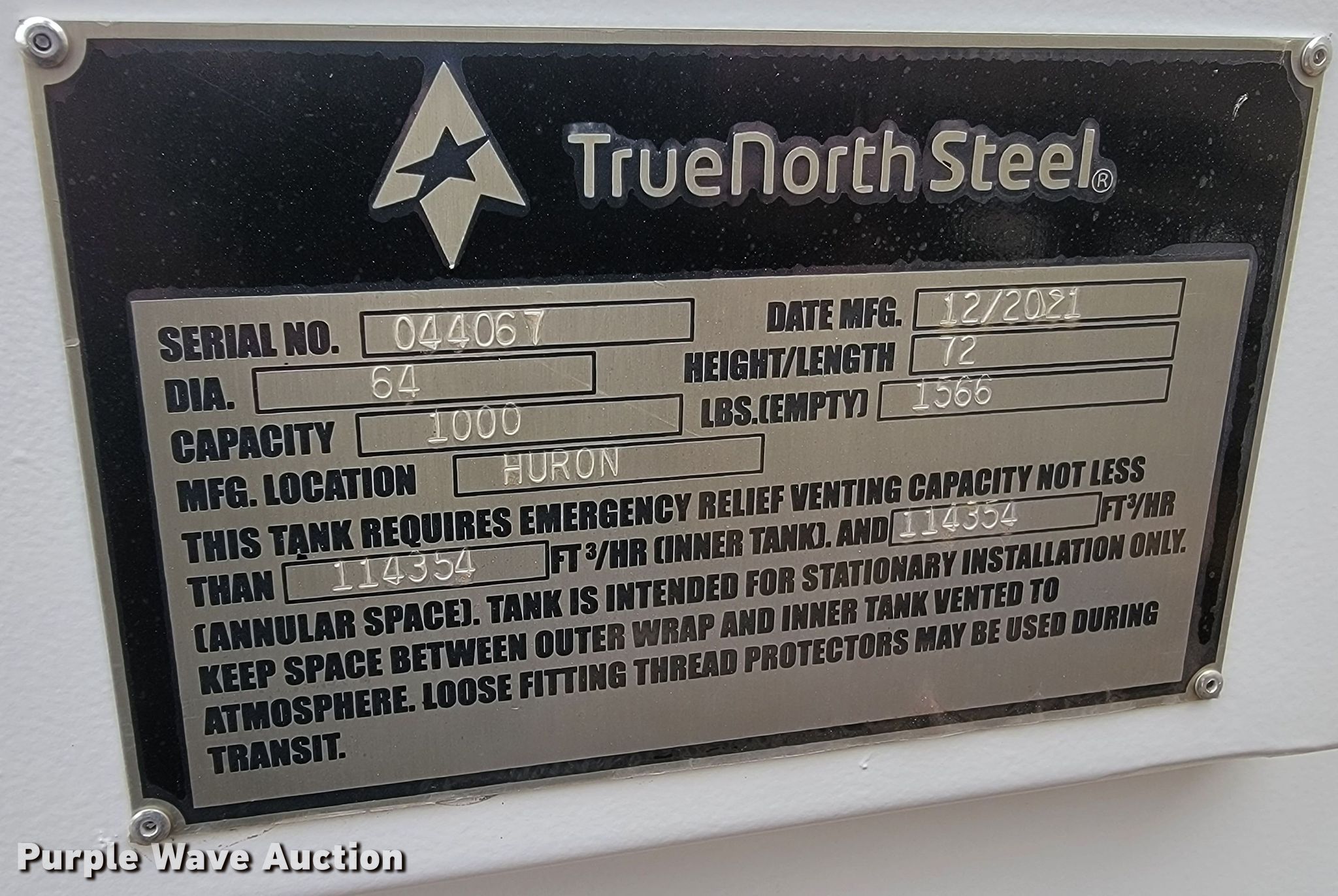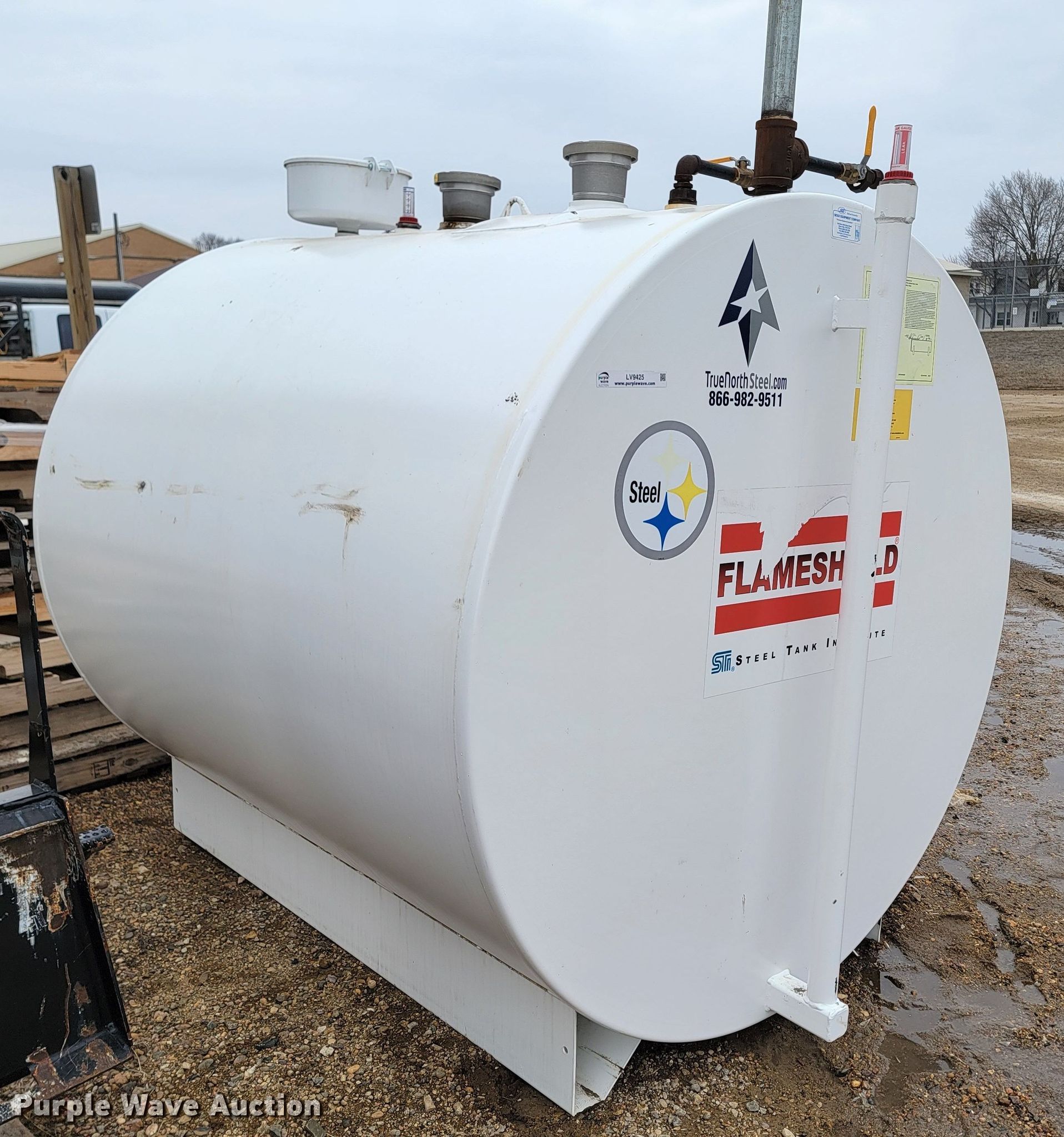 Purple Wave is selling a used Fuel and Lube in South Dakota. This item is a True North Steel fuel tank with the following: 72" L x 65" W, Capacity: 1,000 gallons, Double walled flame shield