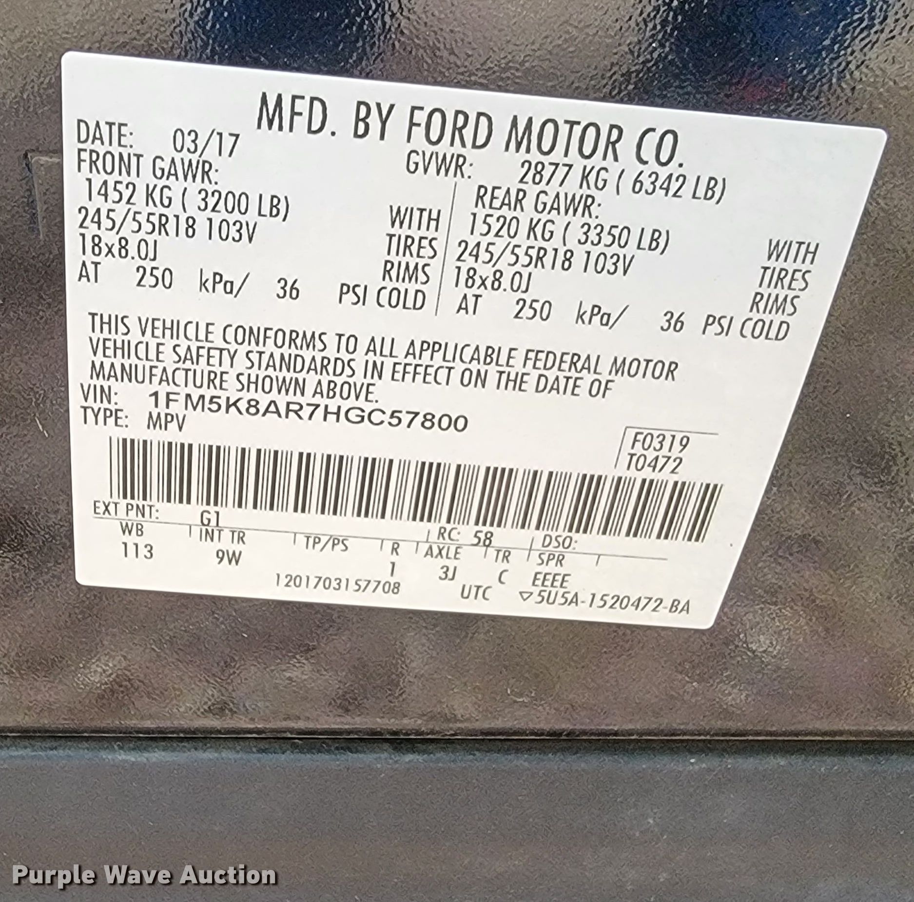 2017 Ford Explorer Police Interceptor SUV. Miles: 130,624 on odometer, VIN: 1FM5K8AR7HGC57800. Engine Displacement: 3.7L V6 DOHC , Cylinders: 6, Fuel type: Gas. Transmission Automatic, All wheel drive. Interior AC, Heat, Seat: Power driver, Power windows, Power locks, Cruise control, Backup camera. Tires Size: 245/55R18. Notes Dash warning indicator: Check engine. South Dakota title. Title distribution may be delayed up to 14 days from verification of funds. City of Yankton. 700 E Levee St. Yankton, SD 57078