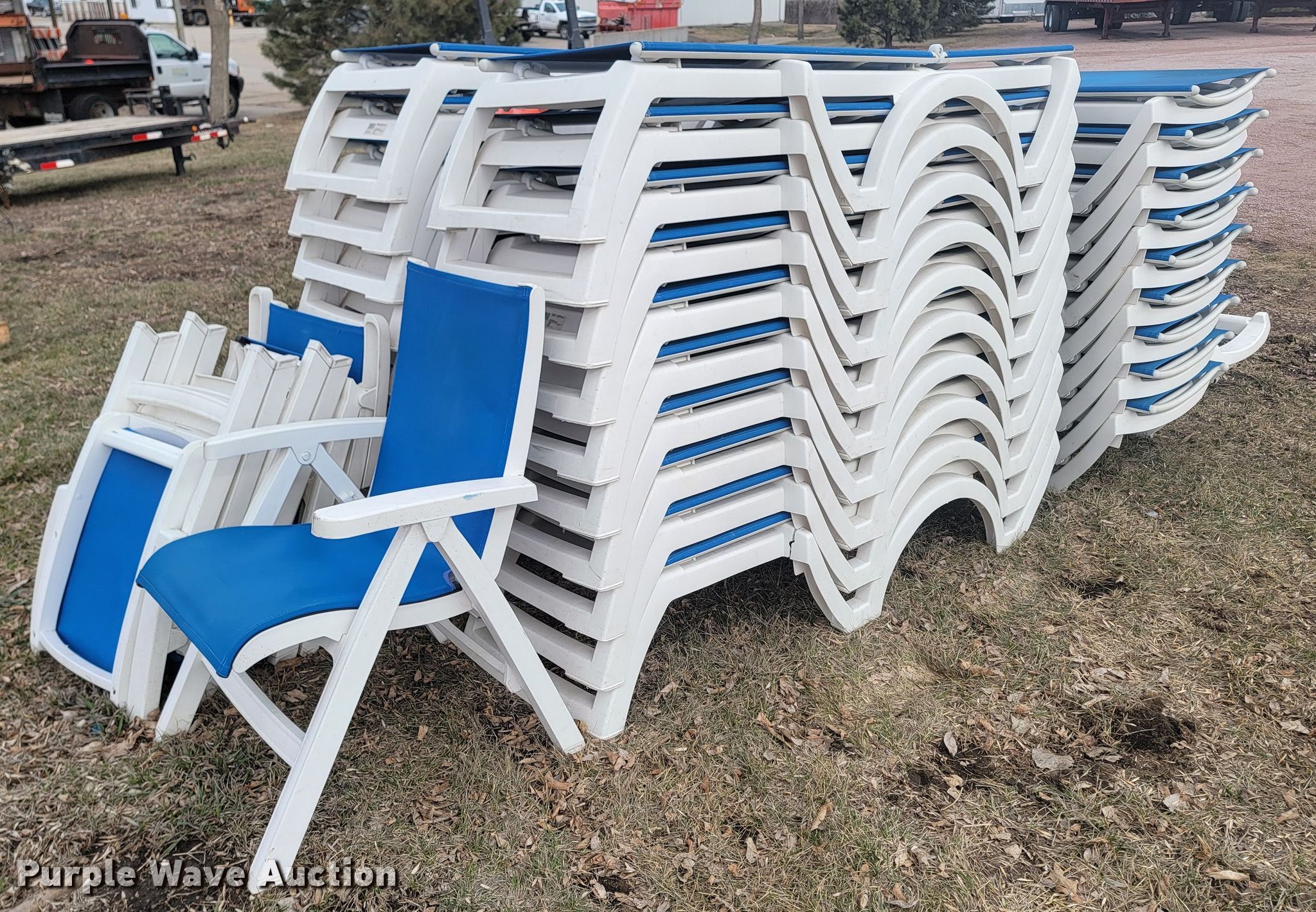Purple Wave is selling a used Furniture in South Dakota. This item is a (30) pool lounge chairs with the following: (4) pool chairs