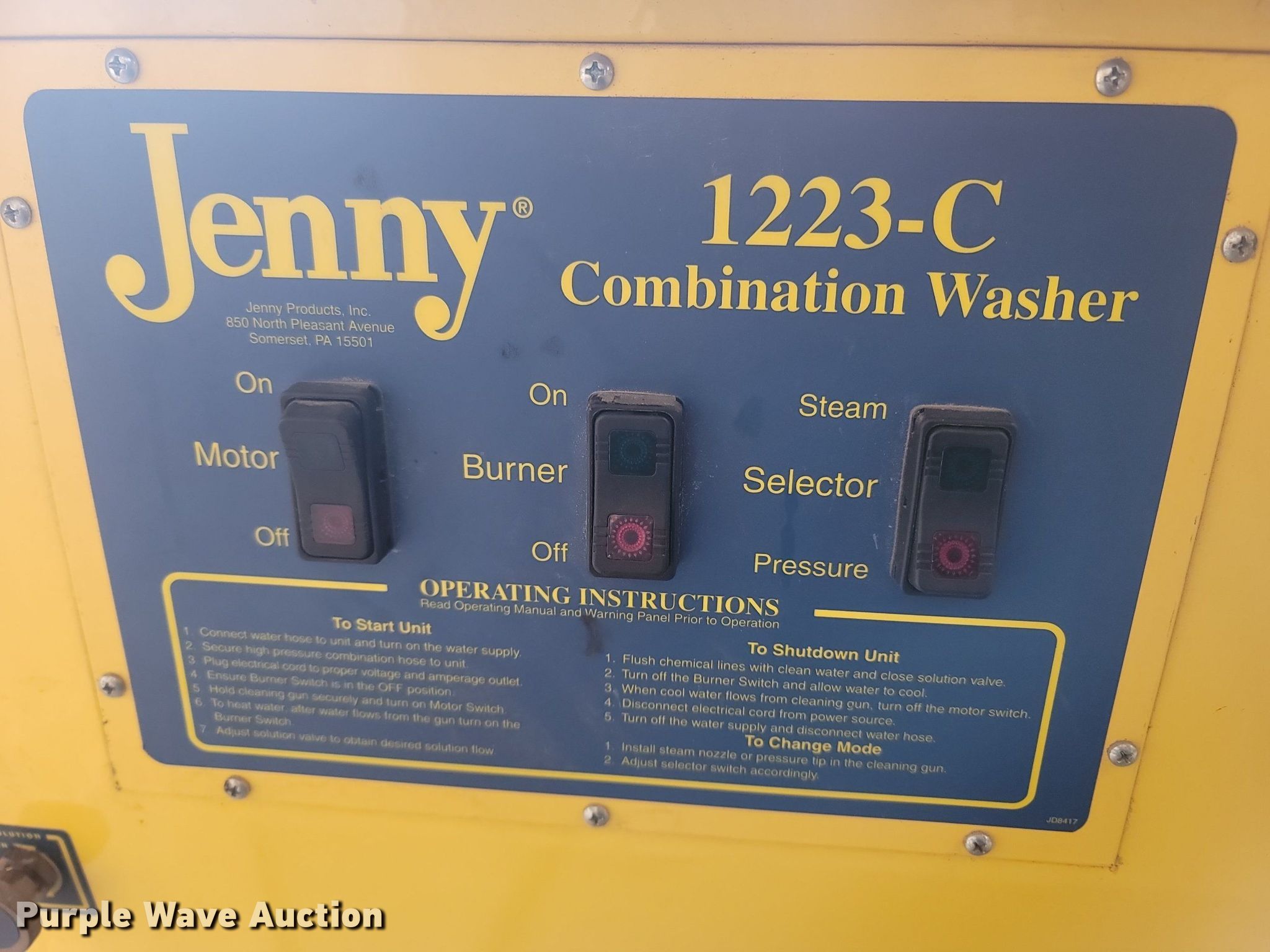 This Jenny 1223-C pressure washer will sell to the highest bidder regardless of price.