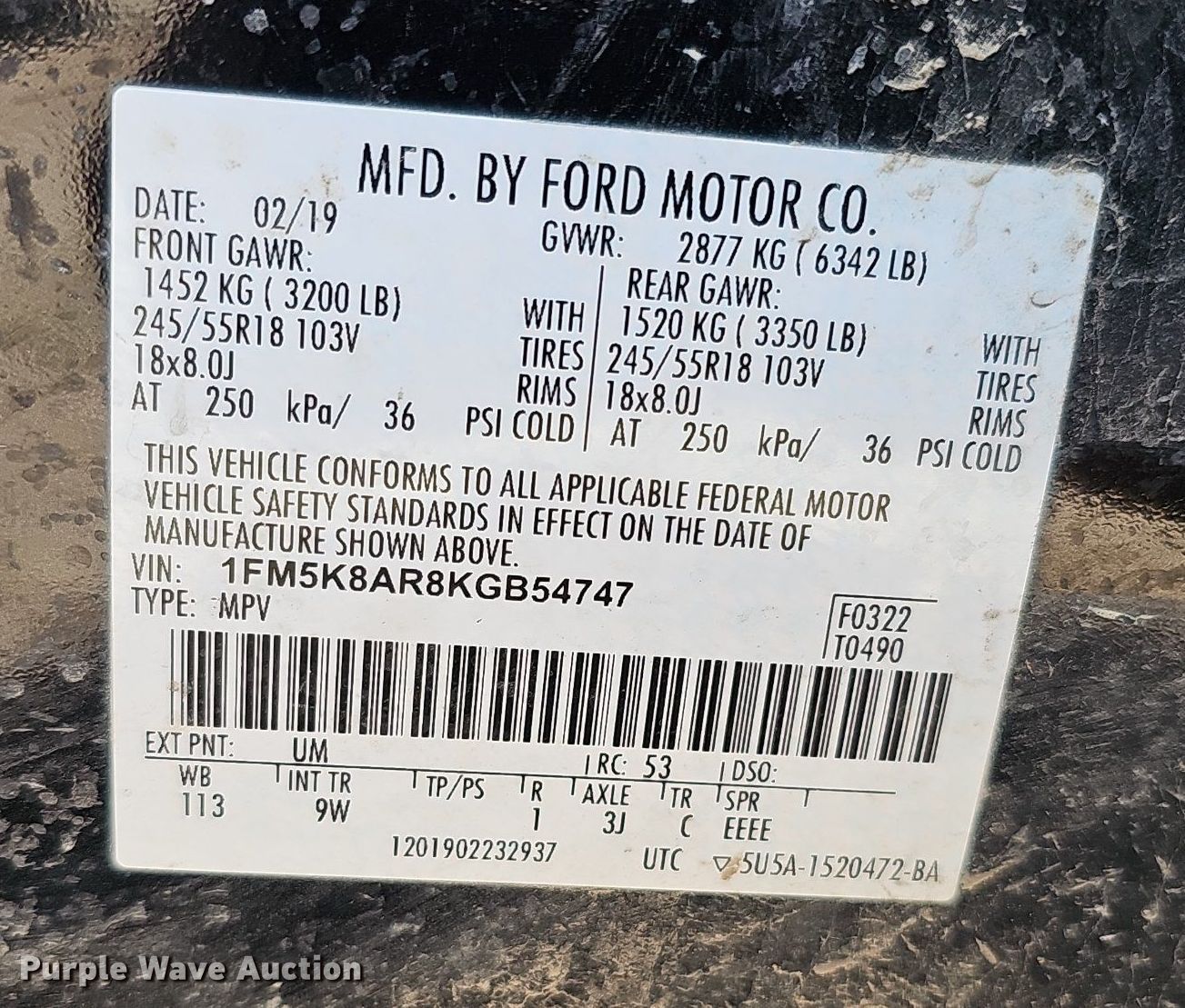 2019 Ford Explorer Police Interceptor SUV. Miles: 78,402 on odometer, VIN: 1FM5K8AR8KGB54747. Engine Displacement: 3.7L V6 DOHC, Cylinders: 6, Fuel type: Gas. Transmission Automatic, All wheel drive. Interior AC, Heat, Seat: Power driver, Power windows, Power locks, Cruise control, Backup camera. Tires Size: 245/55R18. Notes Dash warning indicator: Airbag, Windshield chipped or cracked, Hail damage, Rear passenger door issues Controls missing, Interior handle missing, Rear driver door issues Lock missing, Window controls missing. Nebraska rebuilt title. Title distribution may be delayed up to 14 days from verification of funds. Seward County Sheriffs Office. 2731 Van Dorn Road. Milford, NE 68405