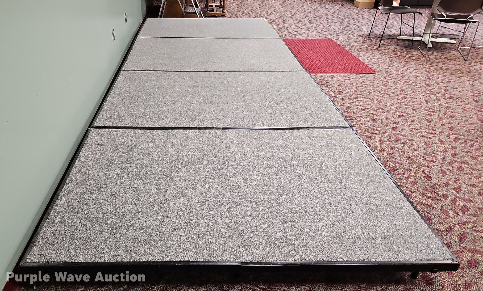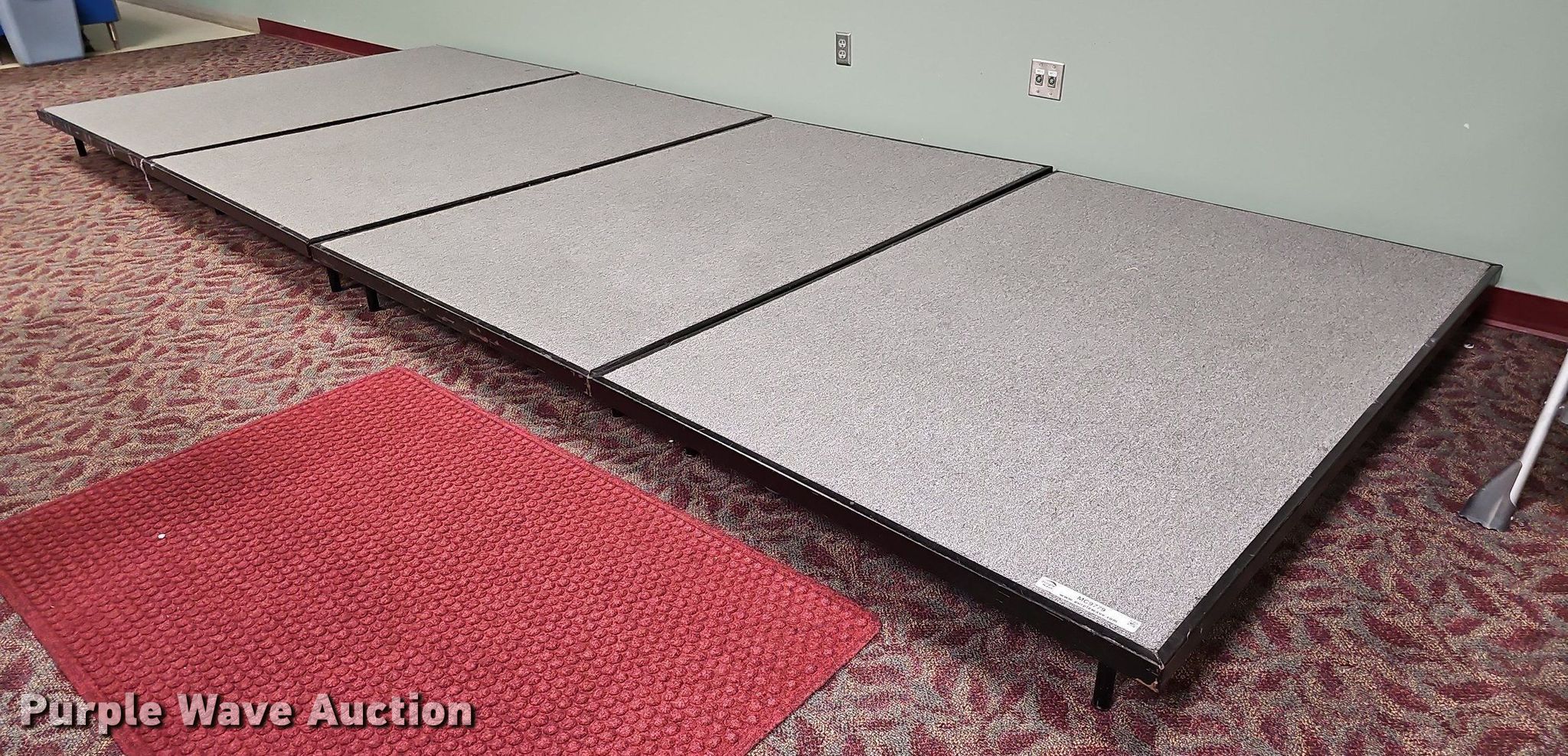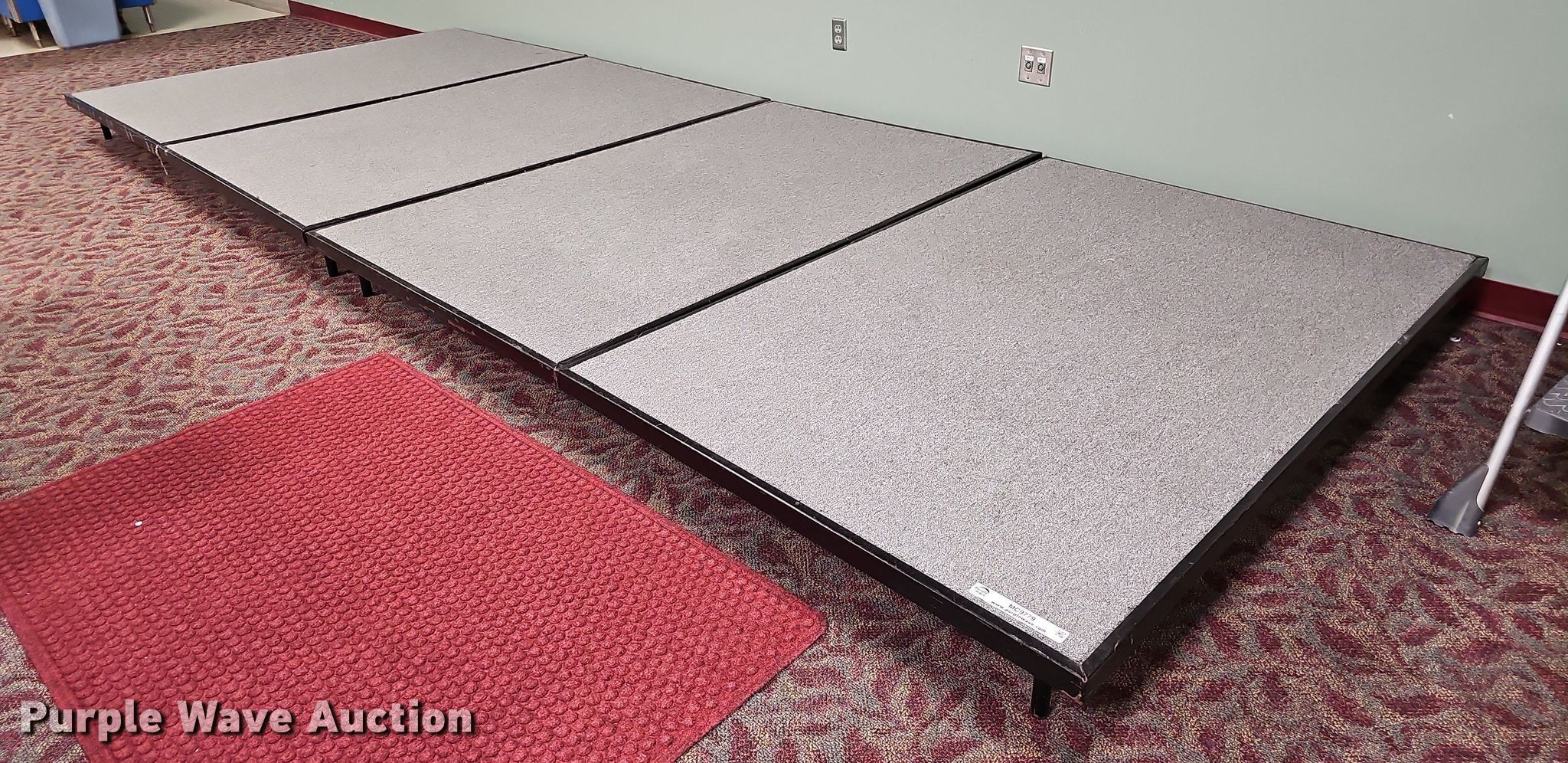 Purple Wave is selling a used Furniture in Nebraska. This item is a (4) section stage with the following: Overall: 16'L x 72"W x 8"H, Sections: 4'L x 72"W x 8"H