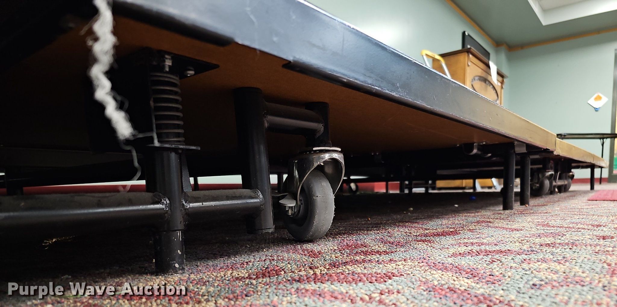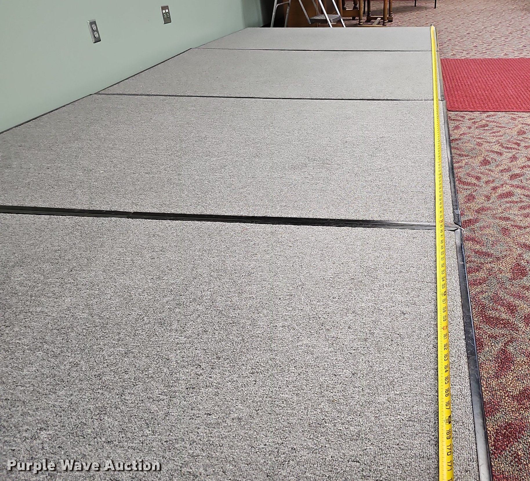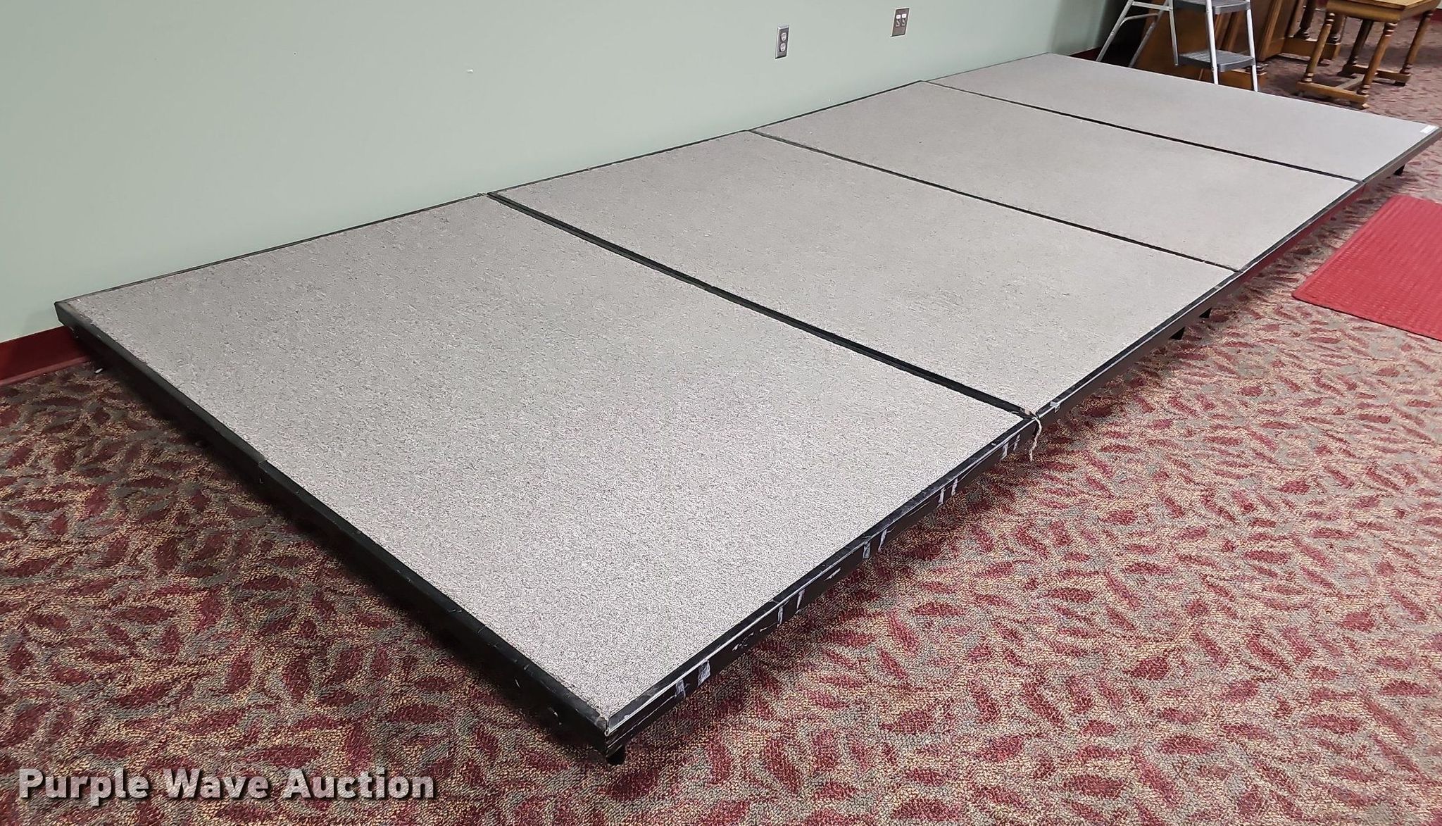 Purple Wave is selling a used Furniture in Nebraska. This item is a (4) section stage with the following: Overall: 16'L x 72"W x 8"H, Sections: 4'L x 72"W x 8"H
