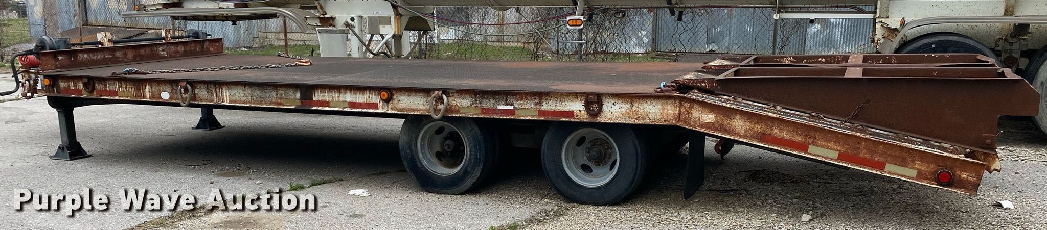 1998 Belshe DT-235 equipment trailer. VIN: 16JF0202XW1030719, Unit #: 102. Dimensions Overall: 32' L x 96" W, Deck: 20' L x 96" W, Tail length: 6', Ramps: Manual Length: 77". Features Deck type: Steel. Chassis Hitch: Pintle, Landing gear: Dual, Two speed, Suspension: Spring, Brakes: Air, Axles: Tandem, GVWR: 23,500 lbs, GAWR: 10,000 lbs. Tires Size: LT235/85R16. Oklahoma title. Seller is a government entity who will be assigning and distributing the title. Please contact the seller for distribution questions. Title distribution may be delayed up to 30 days from verification of funds. City of Tulsa, OK. 208 North Trenton Avenue. Tulsa, OK 74120