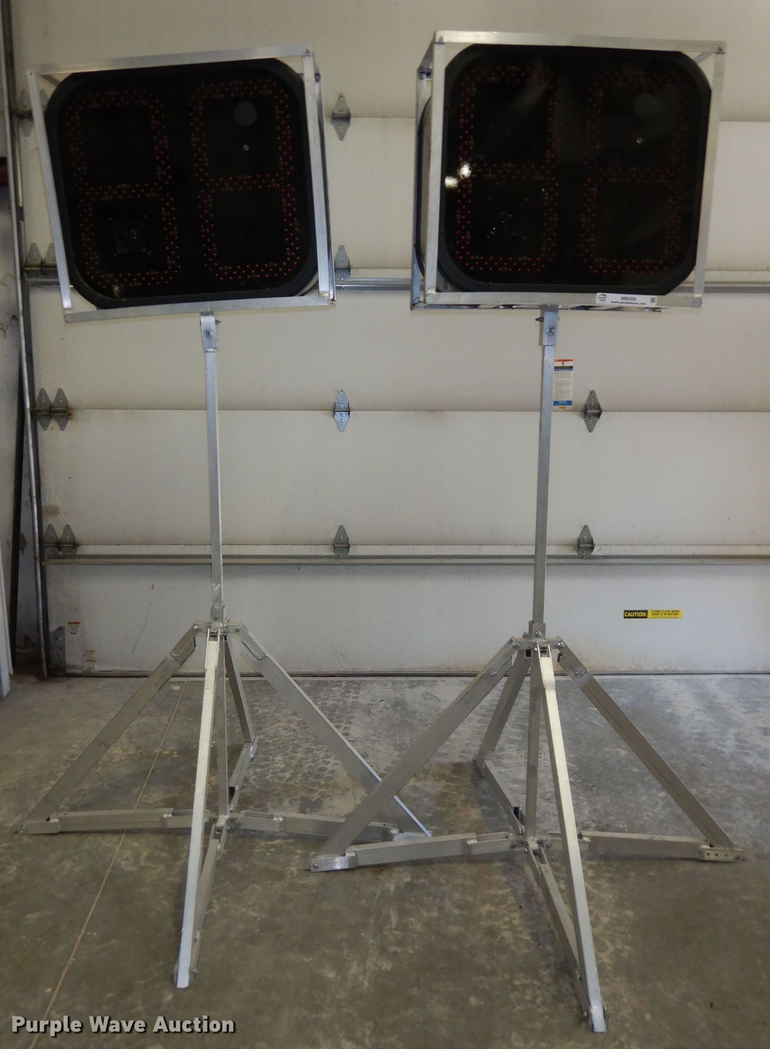 Purple Wave is selling a used Sporting Goods in Kansas. This item is a (2) Nevco SEGX2-18 play clocks with the following: Controller, Tripods