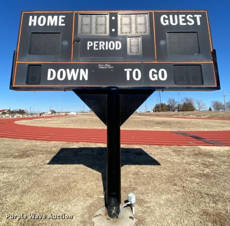 Purple Wave is selling a used Sporting Goods in Kansas. This item is a Fairplay scoreboard with the following: 14' 2" x 8" W x 6' 1" H, Overall 13' 2" H