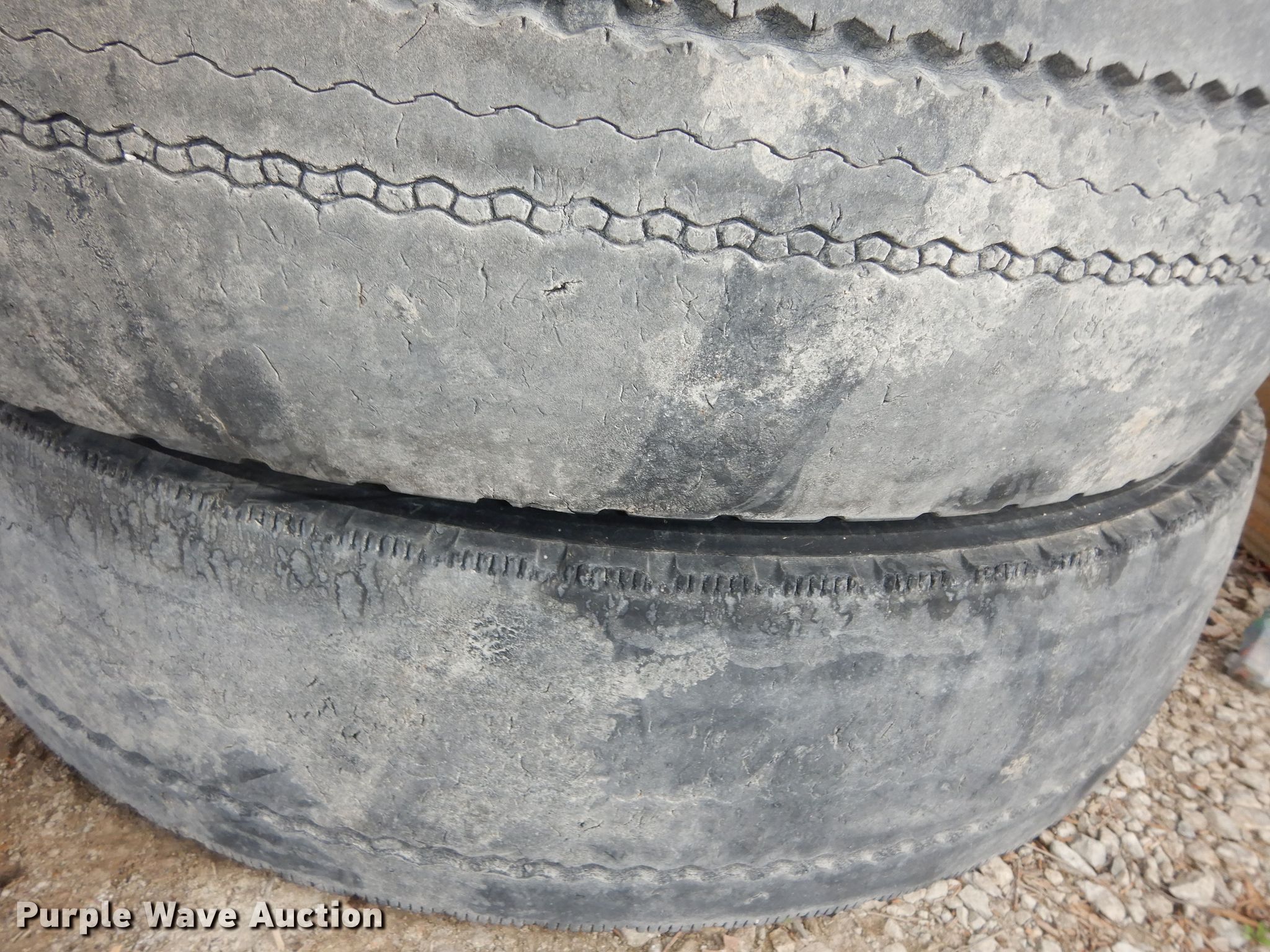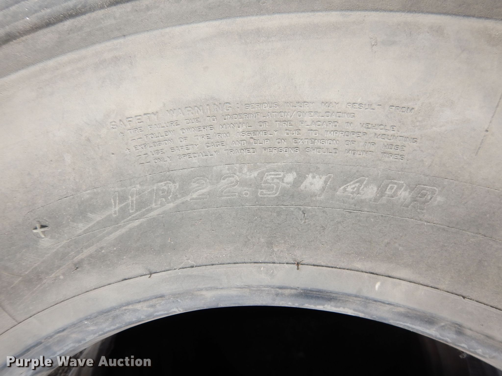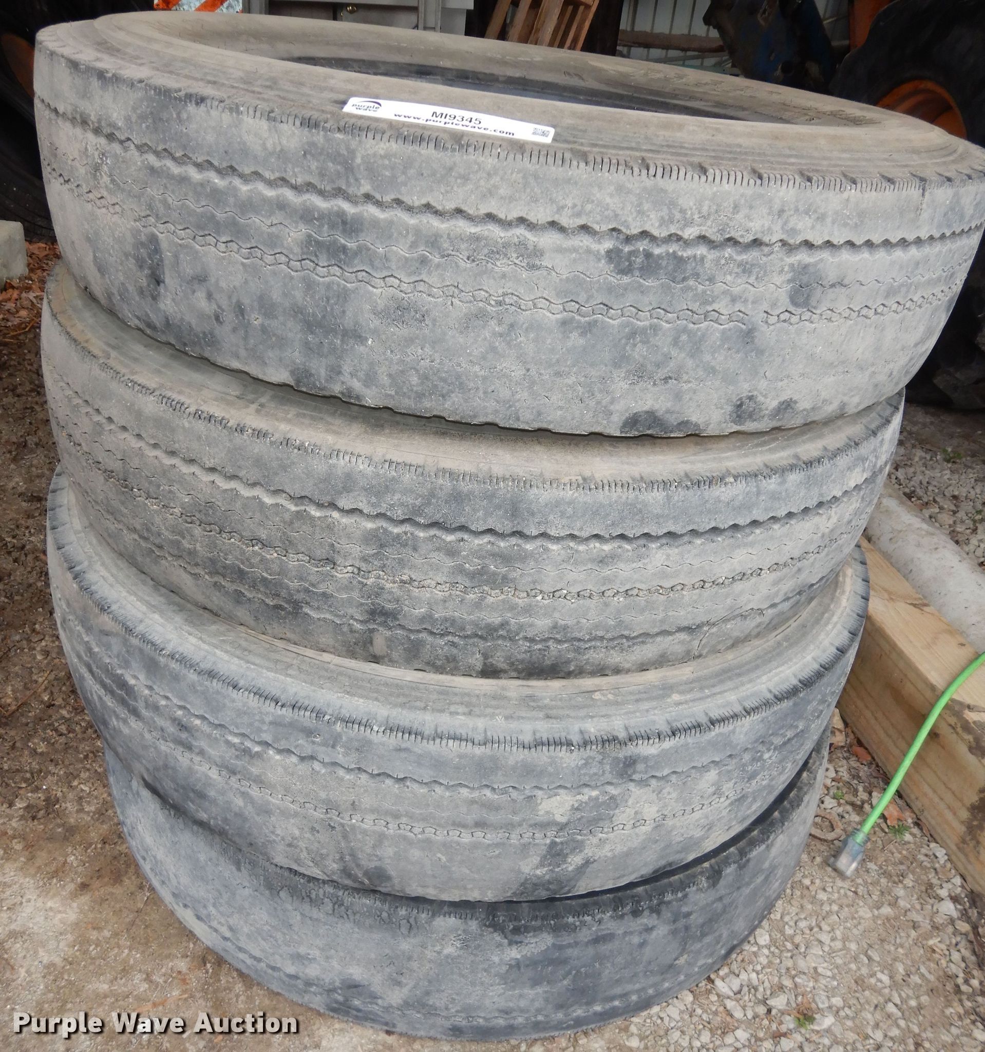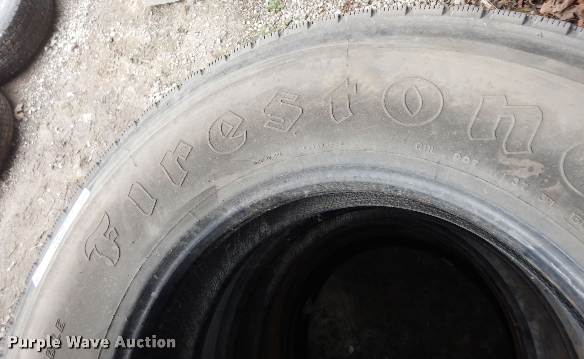 Purple Wave is selling a used Industrial Tires or Tracks in Kansas. This item is a (4) Firestone 11R22.5 tires with the following: (4) Firestone 11R22.5 tires. Osawatomie, KS 66064
