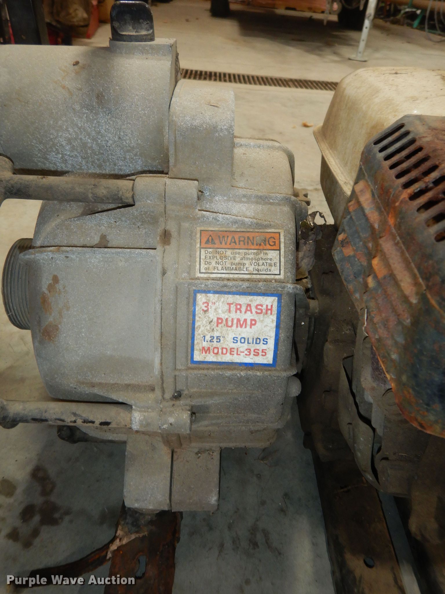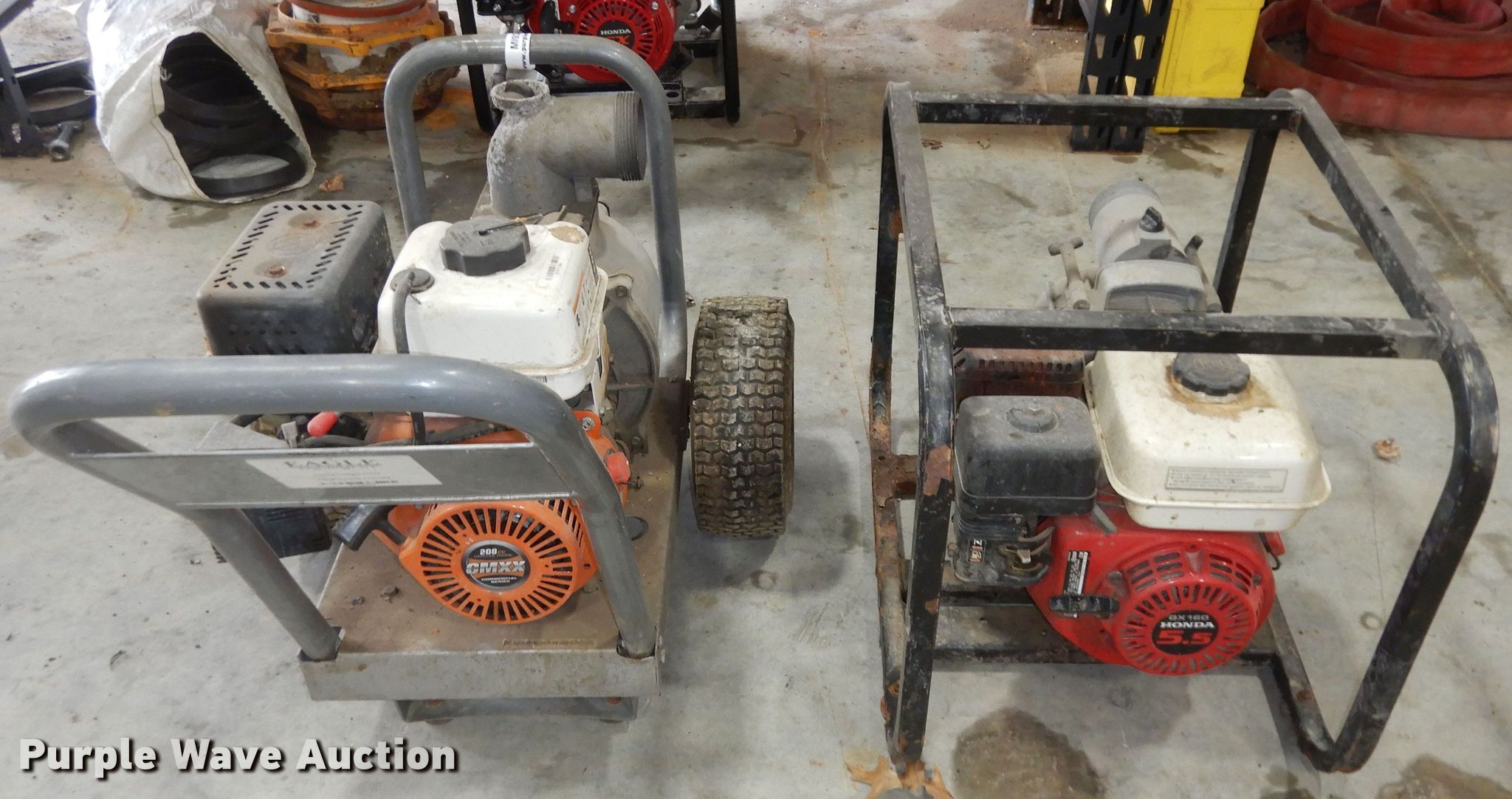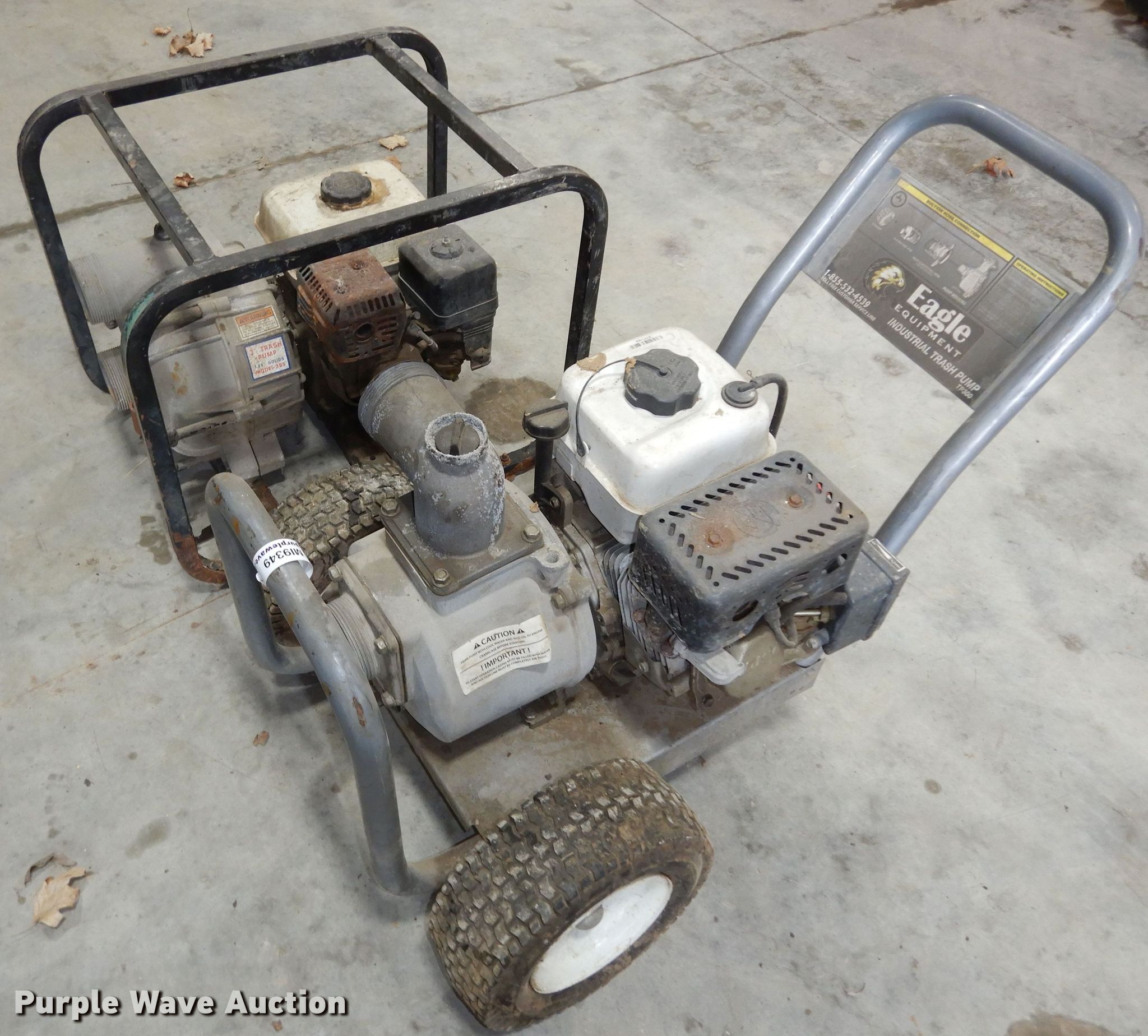 Purple Wave is selling a used Pump in Kansas. This item is a (2) trash pumps with the following: Eagle, CMXX 208cc single cylinder gas engine, Inlet/outlet: 3", Honda 3S5, Honda 5.5 HP single cylinder gas engine, Inlet/outlet: 3"