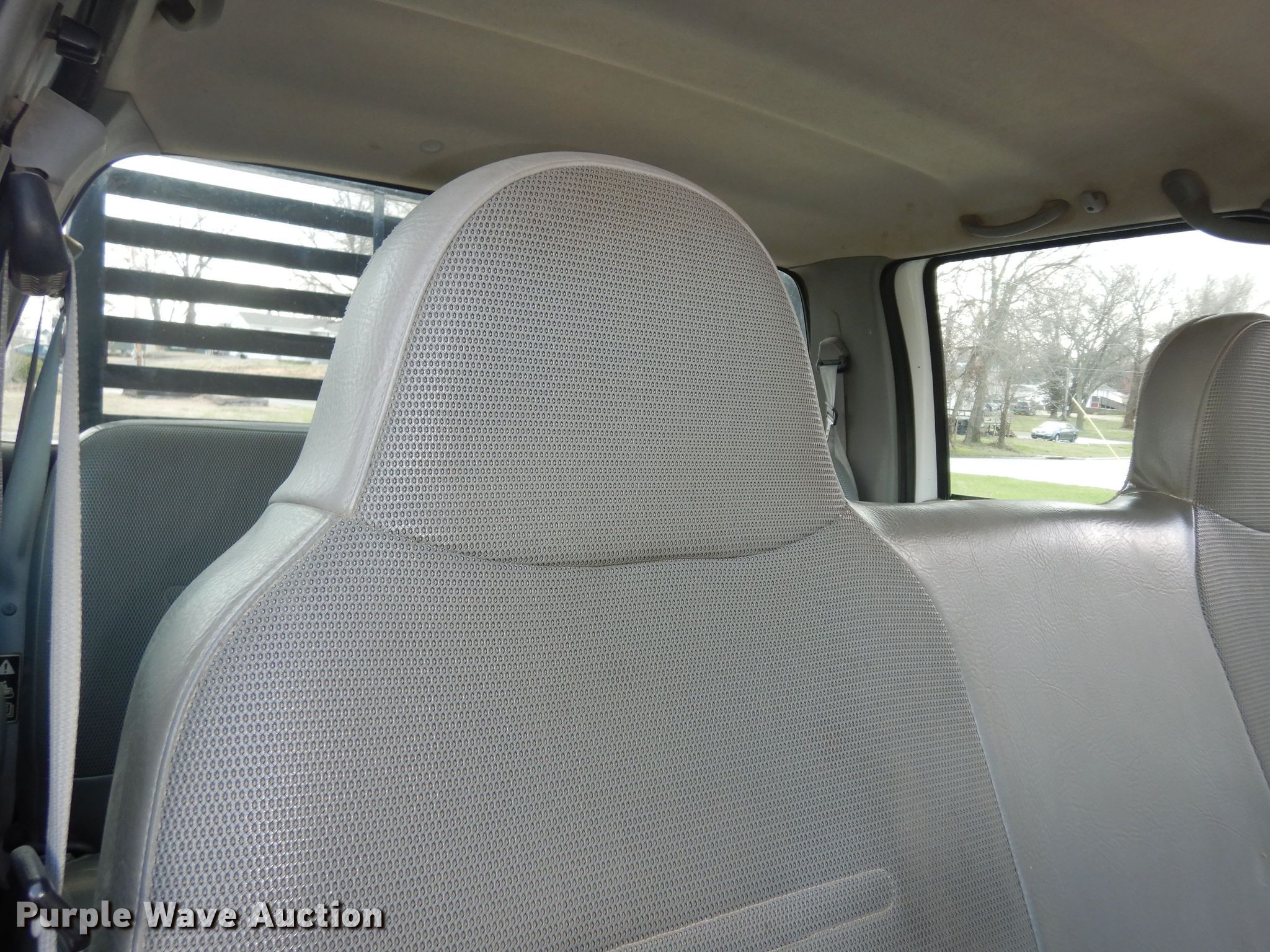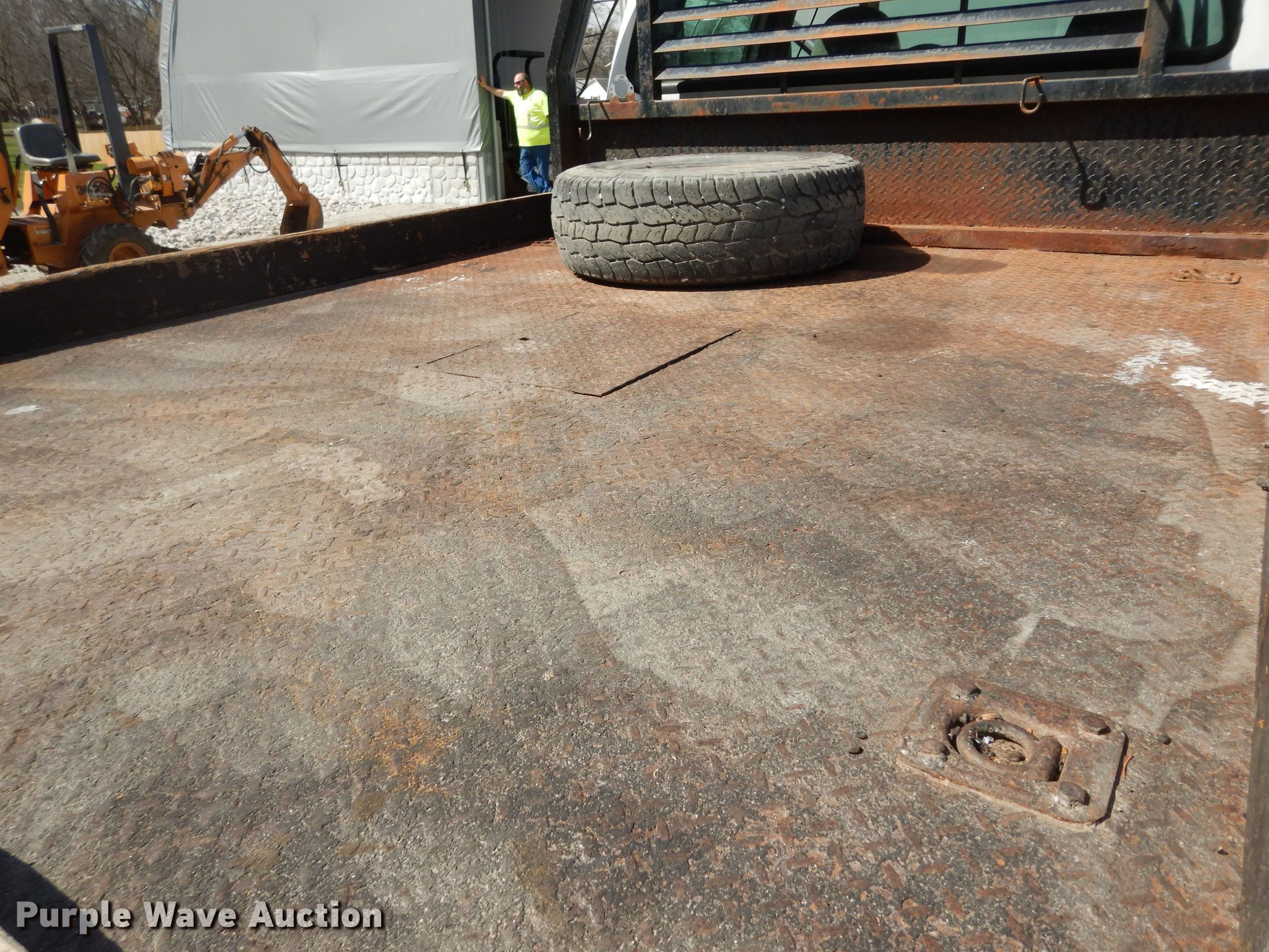 2002 Ford F350 Super Duty XL Crew Cab flatbed pickup truck. Miles: 100,213 on odometer, VIN: 1FTSW31L42ED28027, Unit #: 11. Engine Displacement: 5.4L V8 SOHC, Cylinders: 8, Fuel type: Gas. Transmission Automatic, Four wheel drive. Interior AC, Heat, Cruise control. Features Flatbed 102" L x 7' W. Tires Size: 265/75R16. Notes Decals will be removed prior to auction, Possible engine issues Oil leak, Coolant leak. Kansas title. Osawatomie, KS 66064
