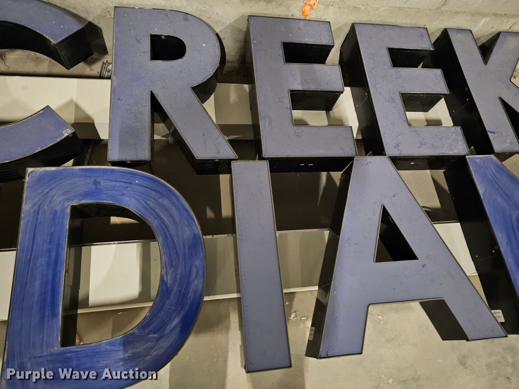 (2) neon signs. Indian: 10' L x 23" H, Creek: 9' L x 24" H. Items must be removed by May 27, 2023. Items not removed by May 27, 2023 will be considered forfeited. Olathe, KS 66061
