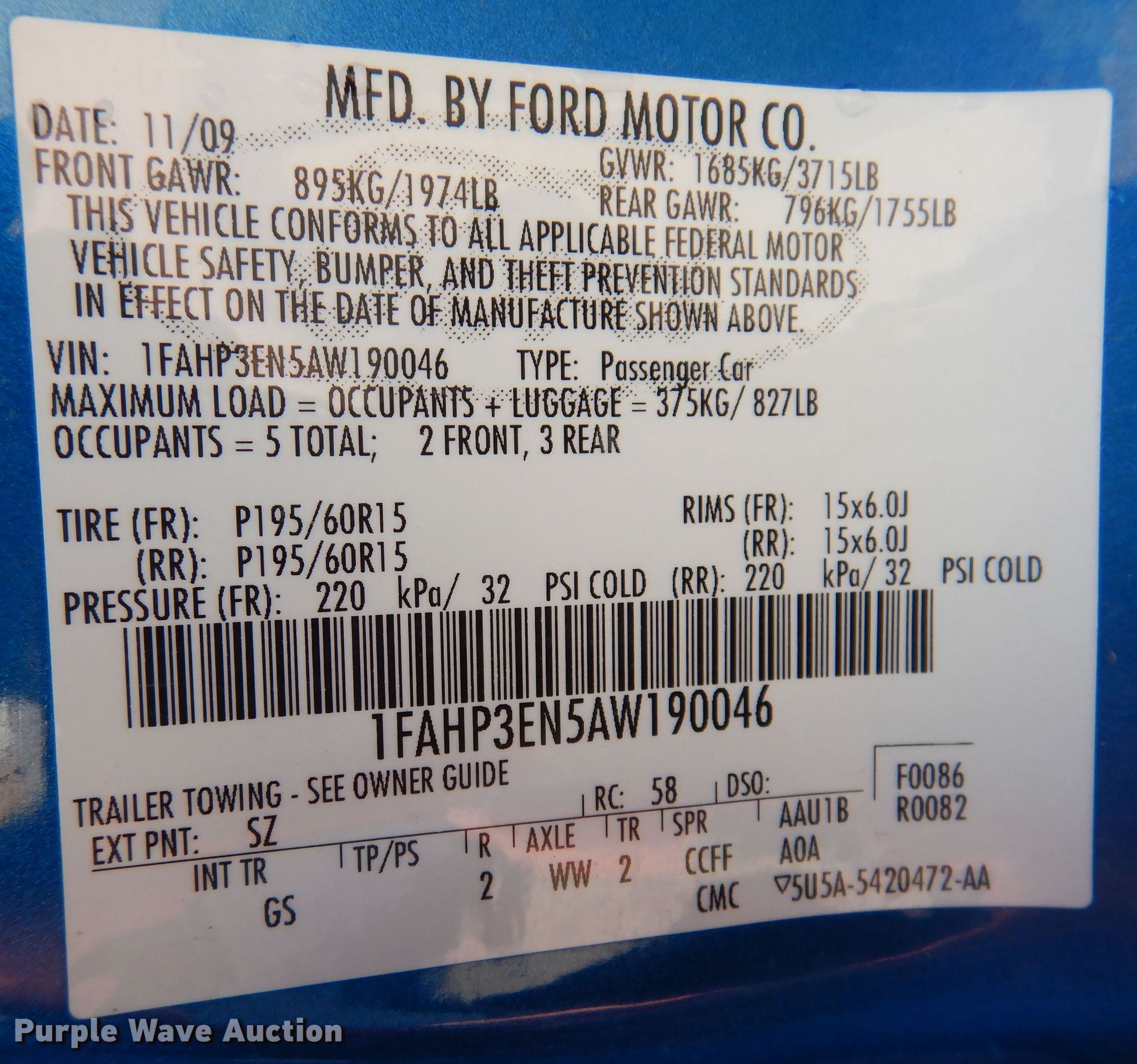 2010 Ford Focus. Miles: 86,271 on odometer, VIN: 1FAHP3EN5AW190046. Engine Displacement: 2.0L L4 DOHC, Cylinders: 4, Fuel type: Gas. Transmission Automatic. Interior AC, Heat, Power locks, Cruise control. Tires Size: 195/60R15. Notes Non-operational rear passenger door. Iowa title. Seller is a government entity who will be assigning and distributing the title. Please contact the seller for distribution questions. Story County Conservation Board. 67464 250th Street. Colo, IA 50056