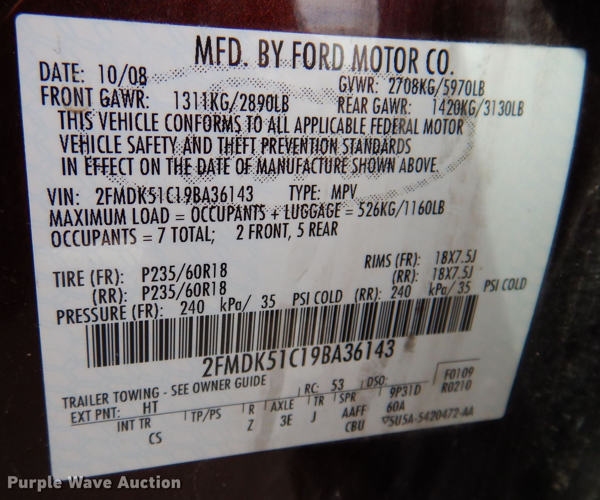 2009 Ford Flex SUV. Miles: 112,623 on odometer, VIN: 2FMDK51C19BA36143. Engine Displacement: 3.5L V6 DOHC, Cylinders: 6, Fuel type: Gas. Transmission Automatic. Interior AC, Heat, Seat: Power driver, Power windows, Power locks, Cruise control. Tires Size: 235/60R18. Notes Dash warning indicator: TPMS. Iowa title. Seller is a government entity who will be assigning and distributing the title. Please contact the seller for distribution questions. Marion County Public Health Department. 2003 North Lincoln Street. Knoxville, IA 50138