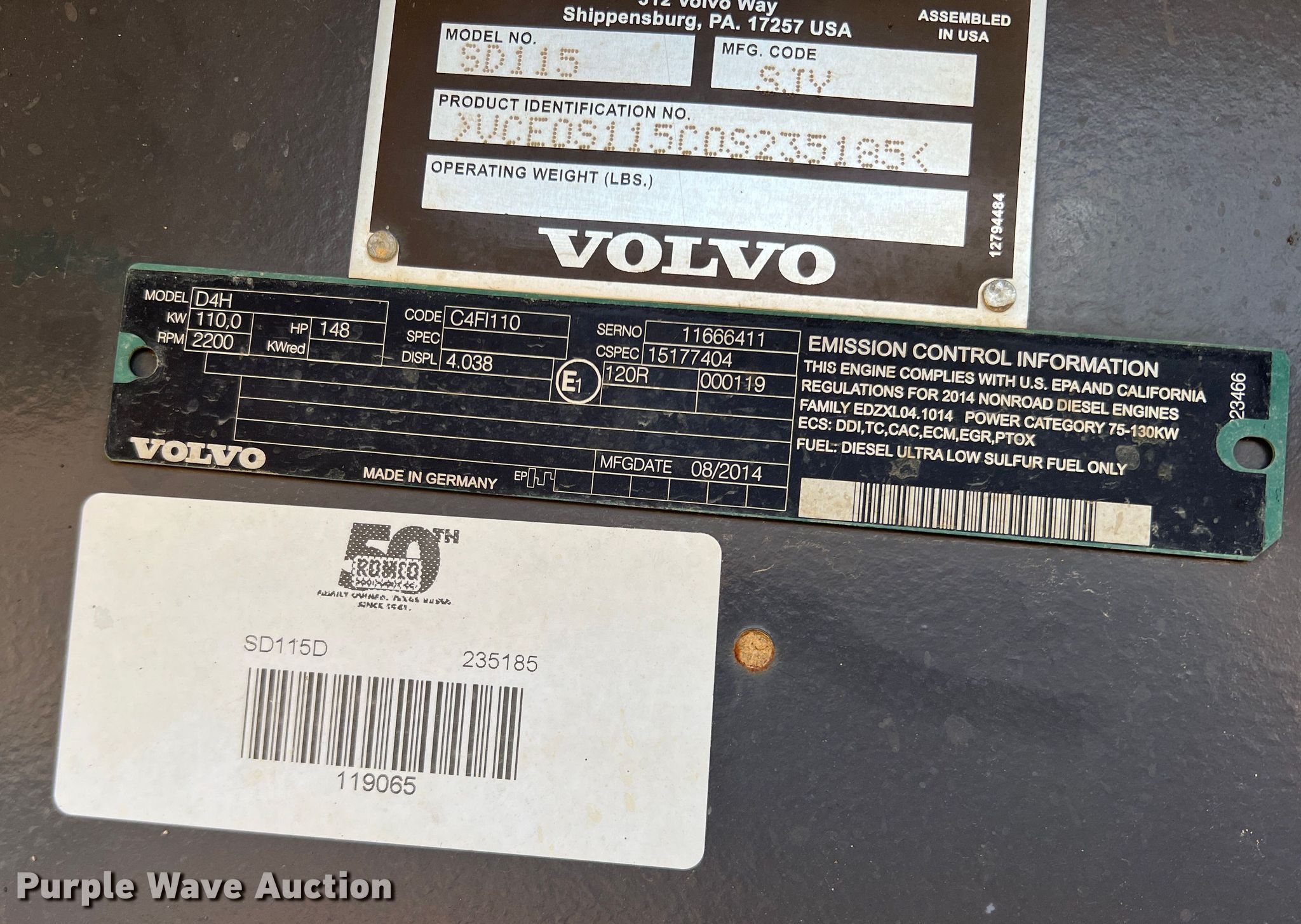 Purple Wave is selling a used Single Drum Roller Compactor in Texas. This item is a Volvo SD115 single drum roller with the following: Hours: 1,080 on meter, Serial: VCE0S115C0S235185