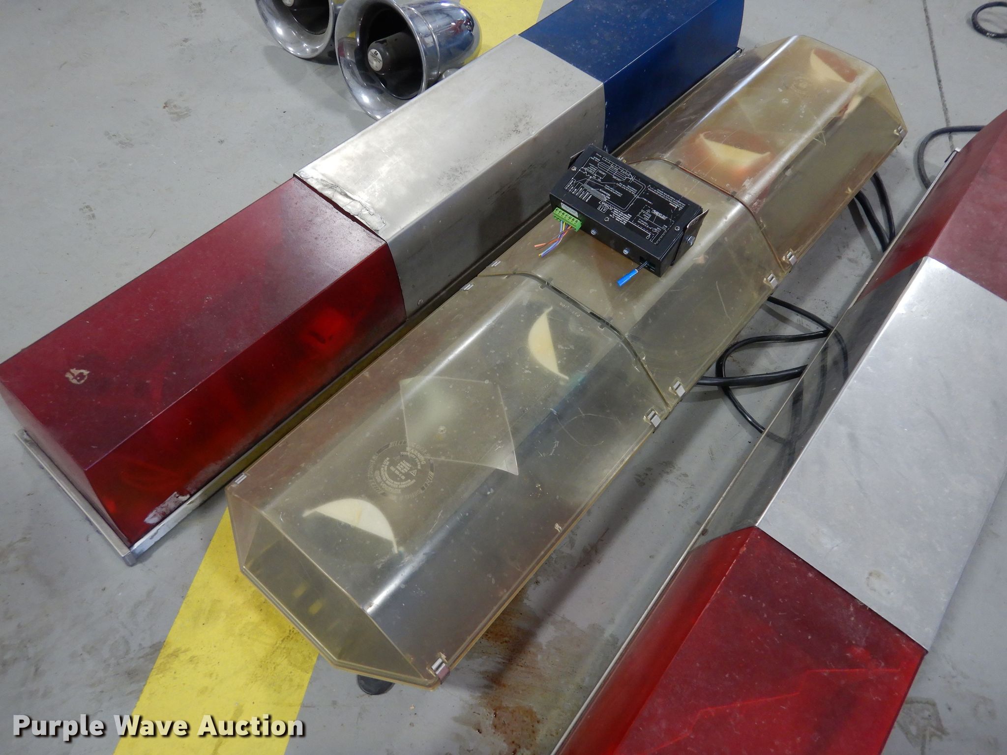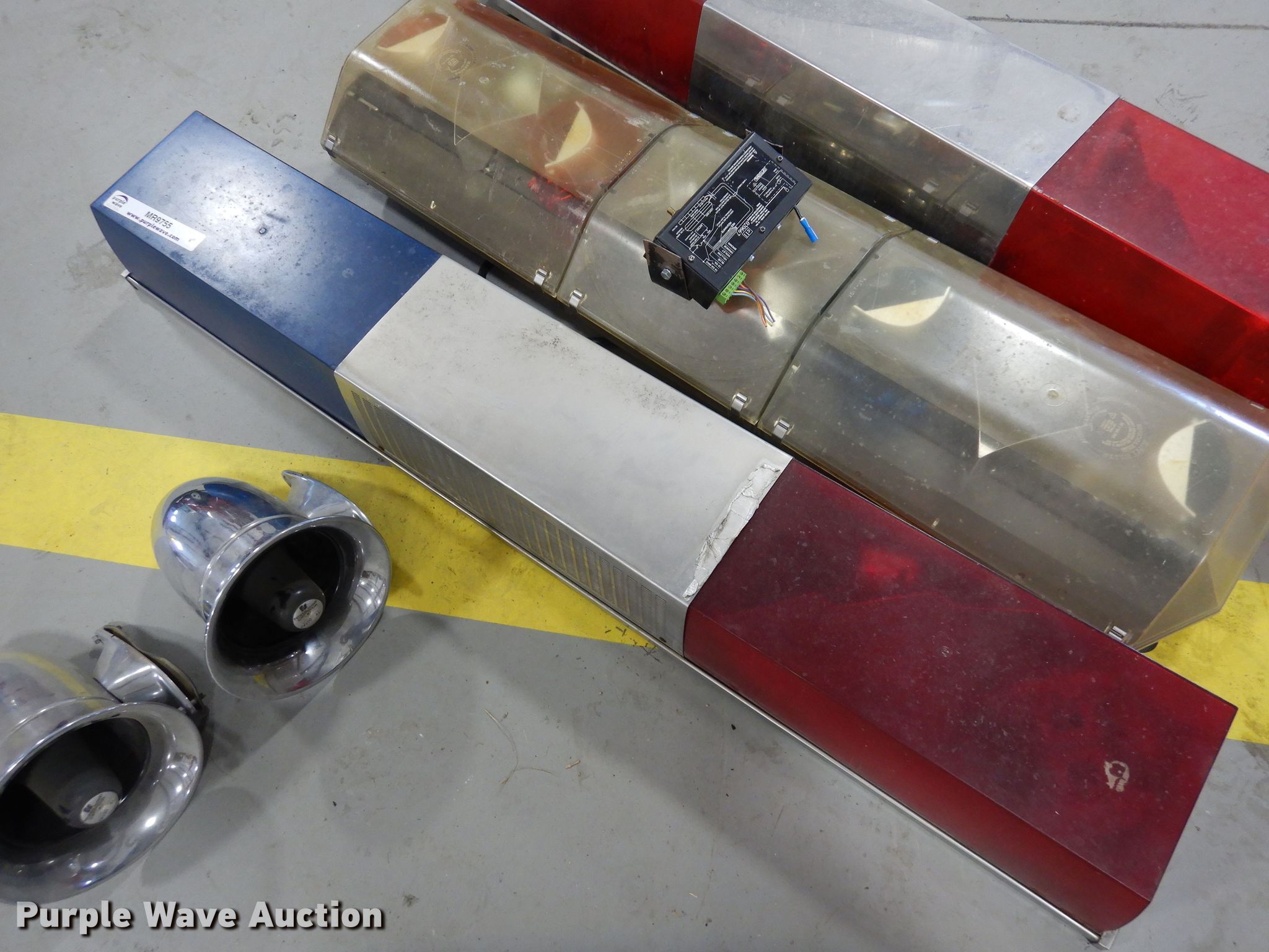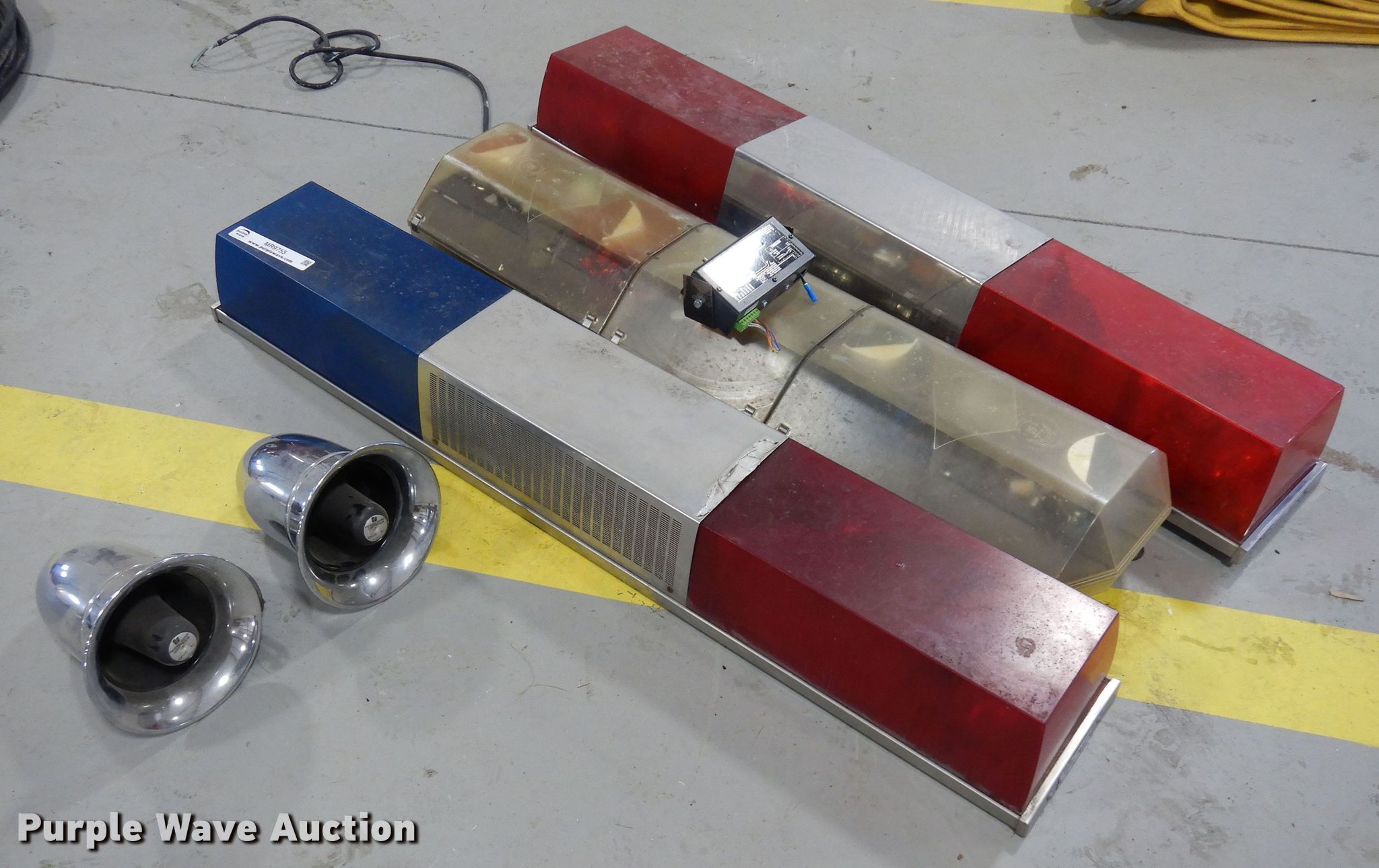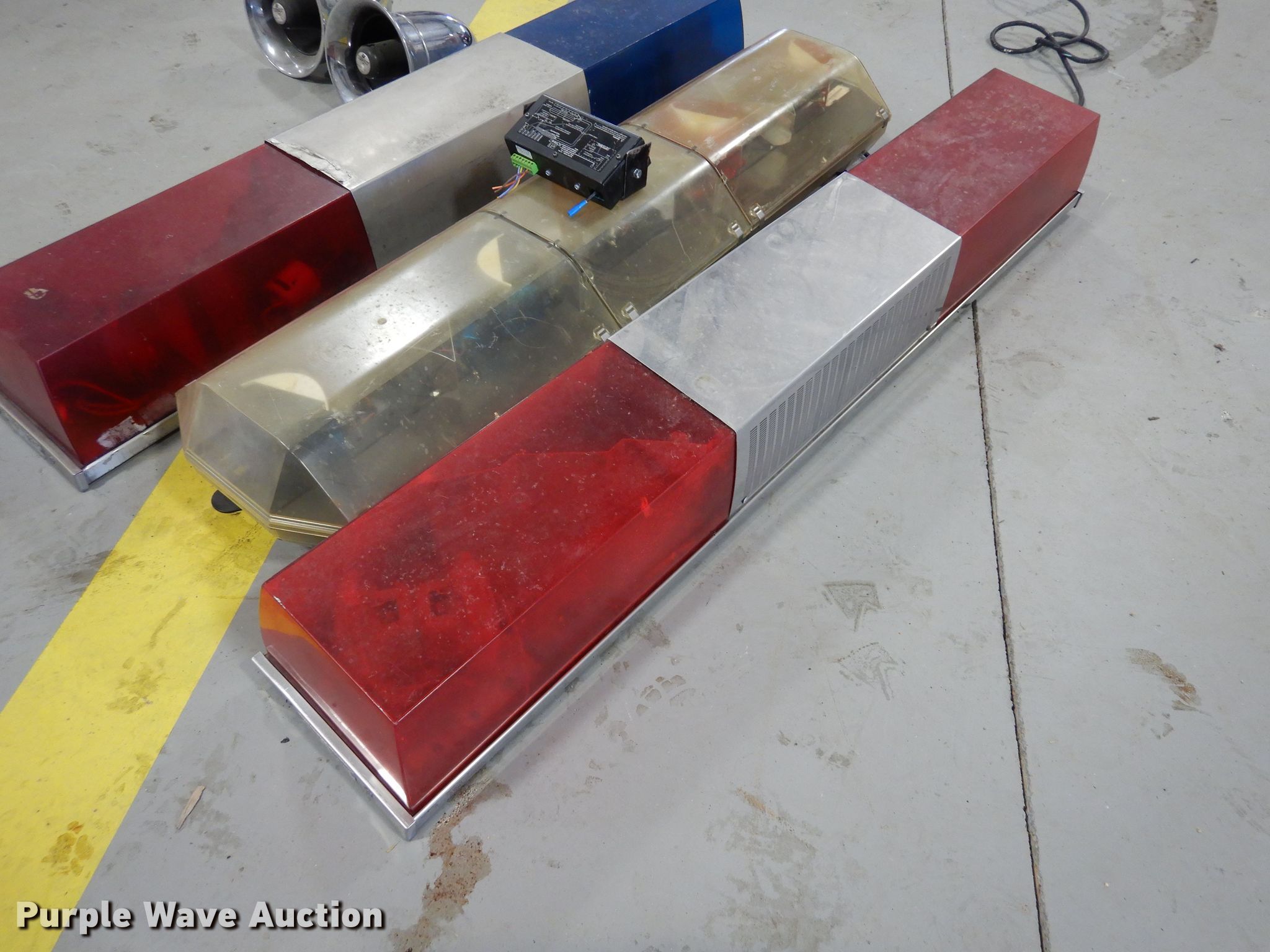 Purple Wave is selling a used Automotive Parts or Acces. in Colorado. This item is a Emergency vehicle equipment with the following: (2) Twin Sonic 12 light bars, Code 3 light bar, Control box, (2) Federal CP100 A1 sirens, Coax cable