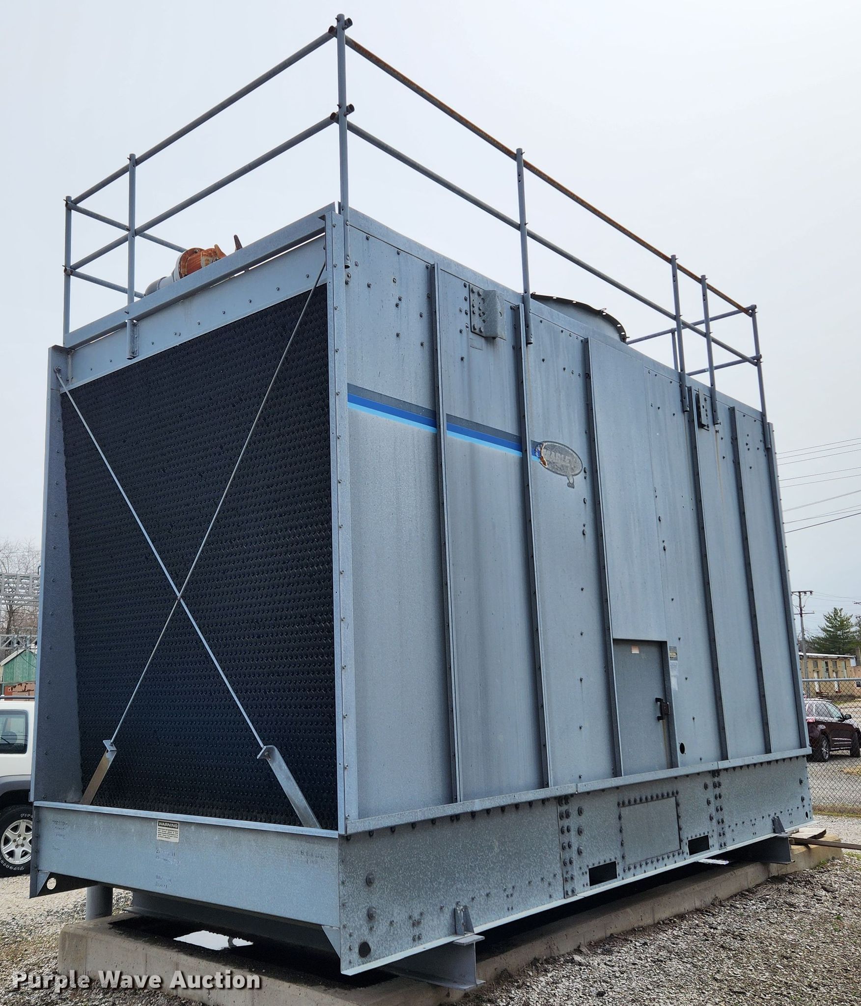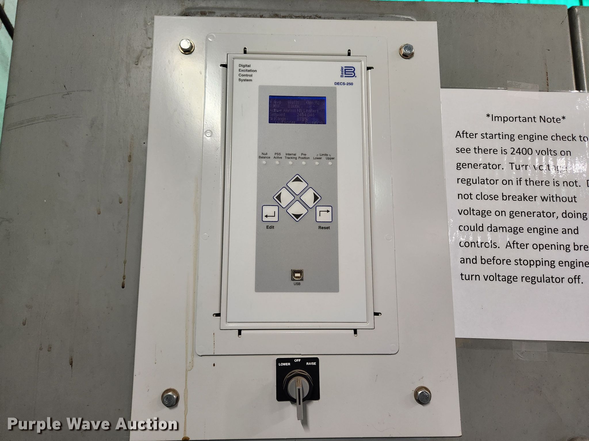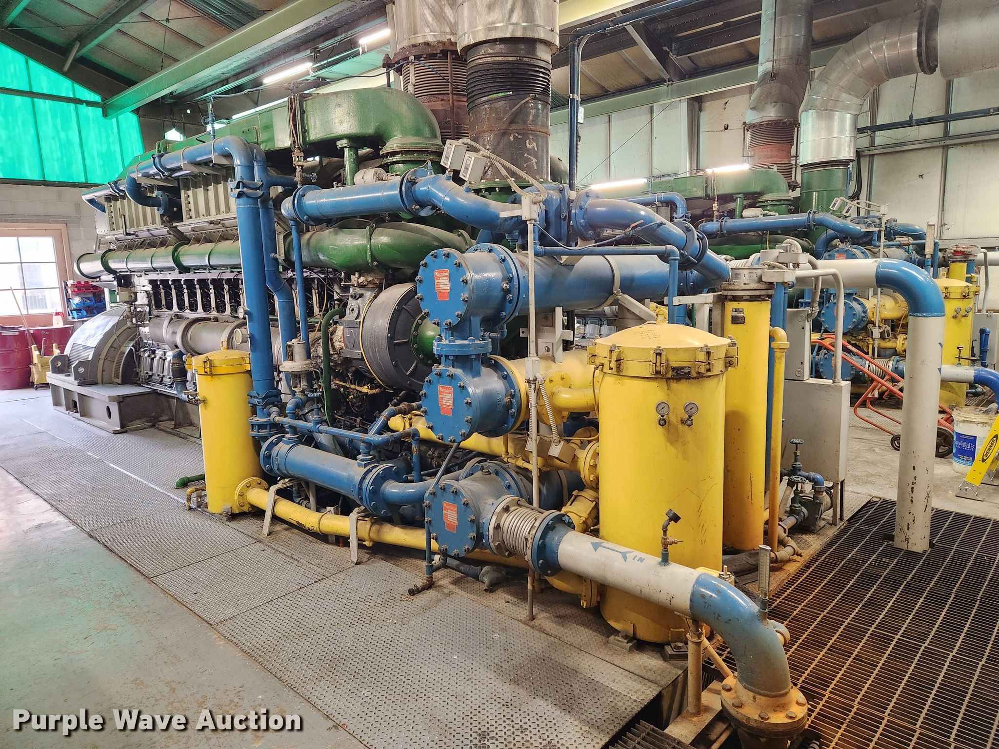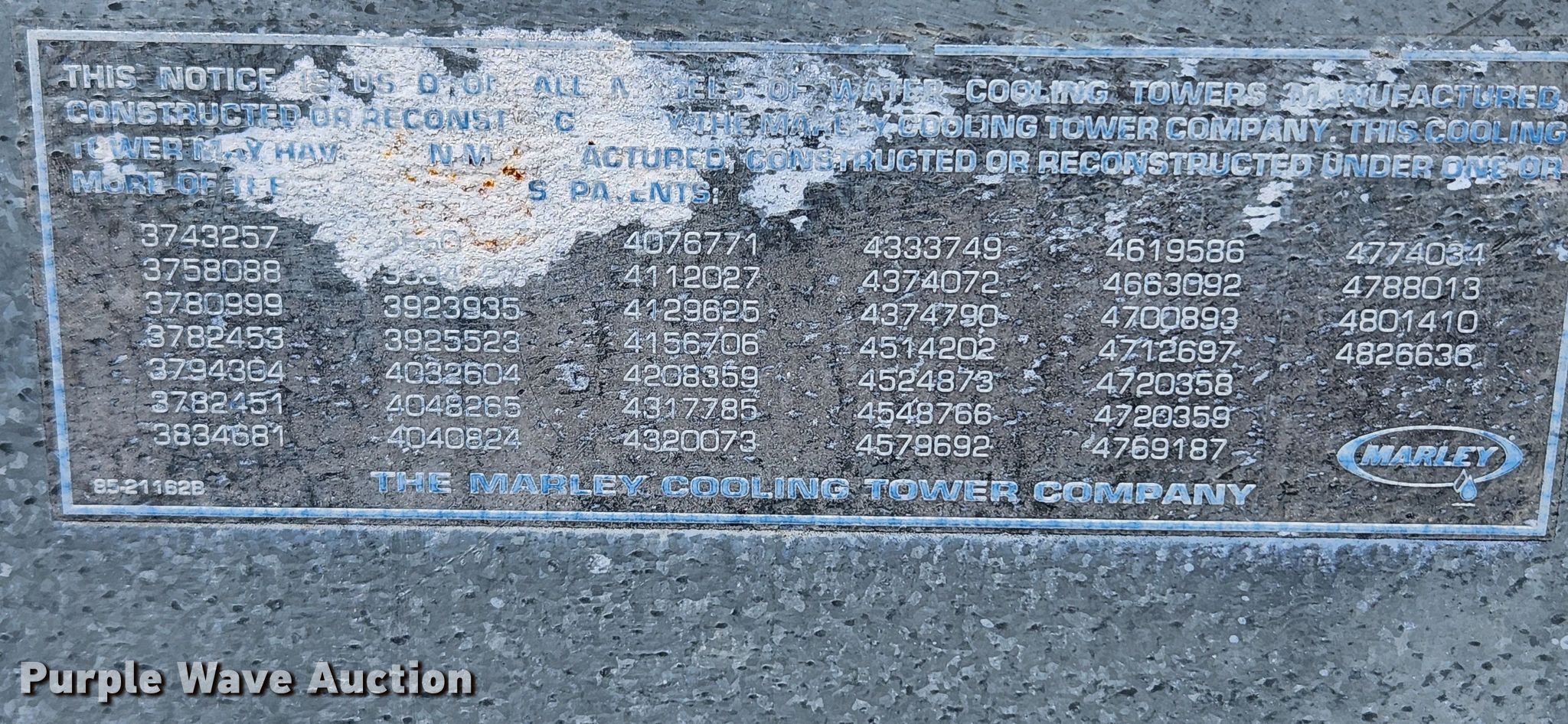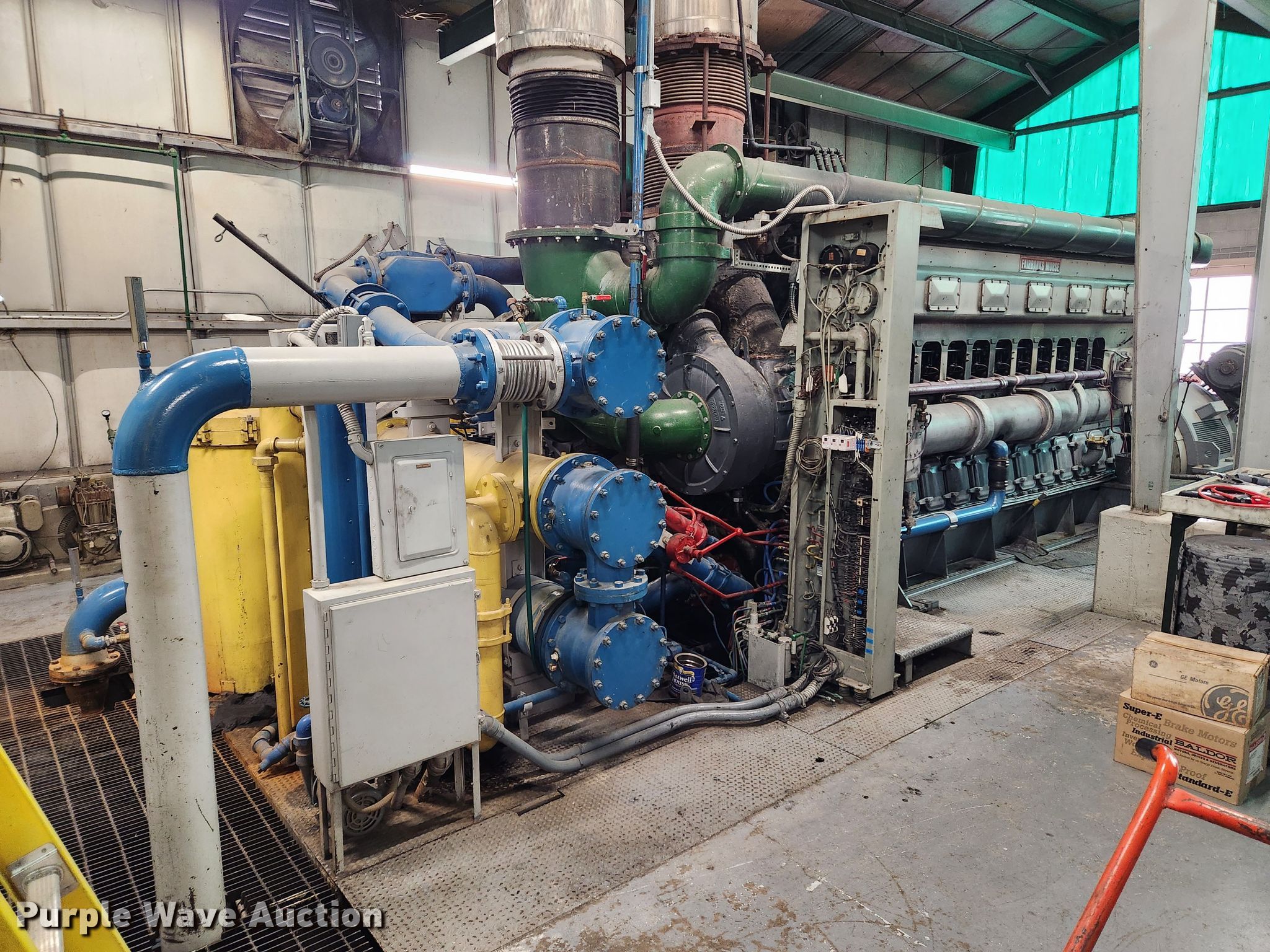 Fairbanks Morse 38TDD8 1/8 generator. Approximately 32' L 9'6" x 9' , Hours: 30,639 on meter, Serial: 970858, Unit #: 5. Engine Fairbanks Morse, Cylinders: 12, Fuel type: Diesel, HP: 2,880. Features Generator Fairbanks Morse, kVA: 2,563, kW: 2,050, Phase: Three, Skid mounted, Exterior exhaust system, Auxiliary cooling system, Auxiliary diesel fuel system, Cycoil oil bath air cleaner 54P03V Serial: C66786, 8' 3" x 12', Switch gear Control box, Marley cooling tower Serial: 002733-NC-421-91, 19' x 106" W x 142", Fan 96", Serial: 06H385734, Siemens Induction Motor Three phase, Volts: 2400/4160. City of Highland, IL. Highland, IL 62249