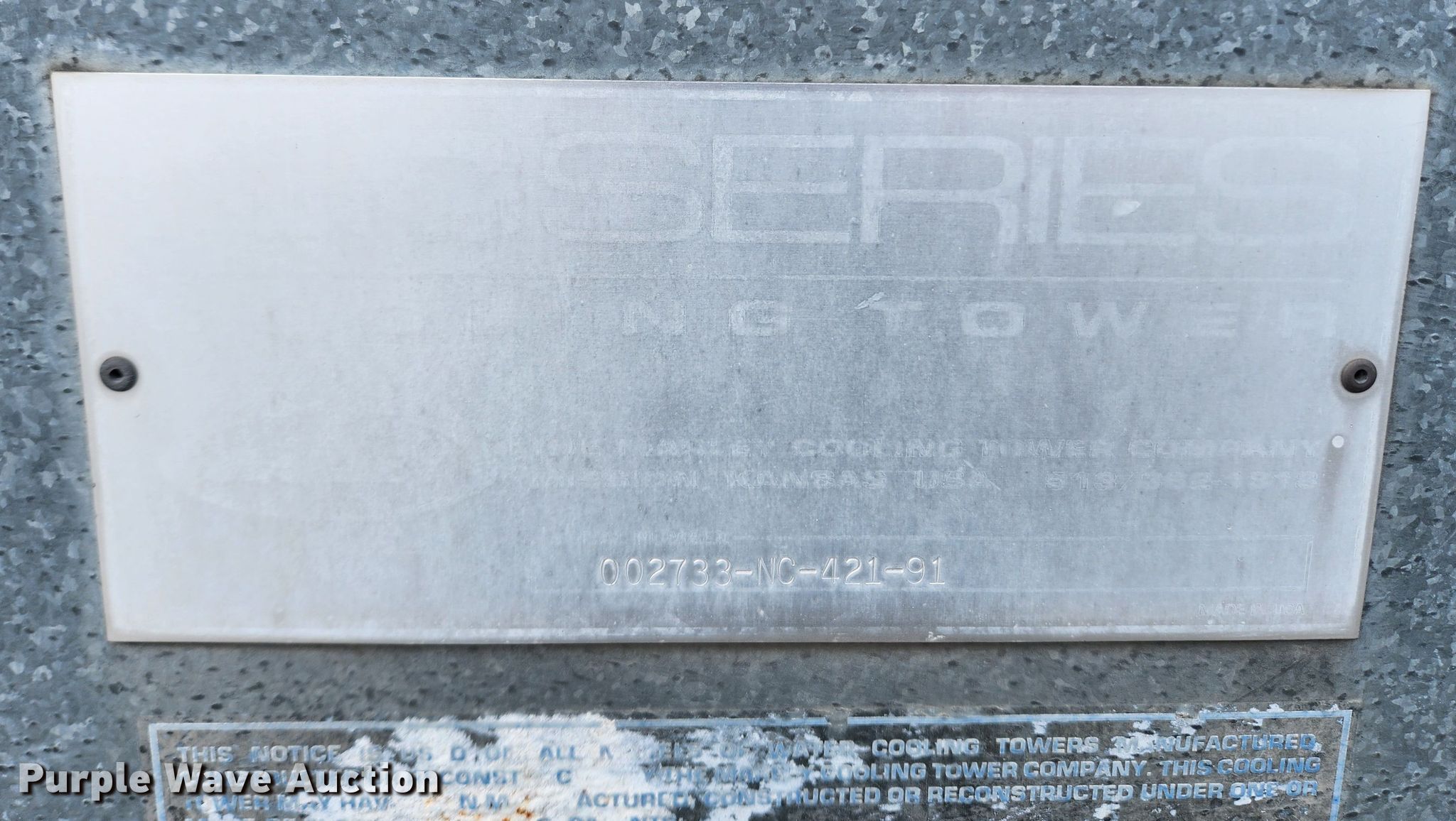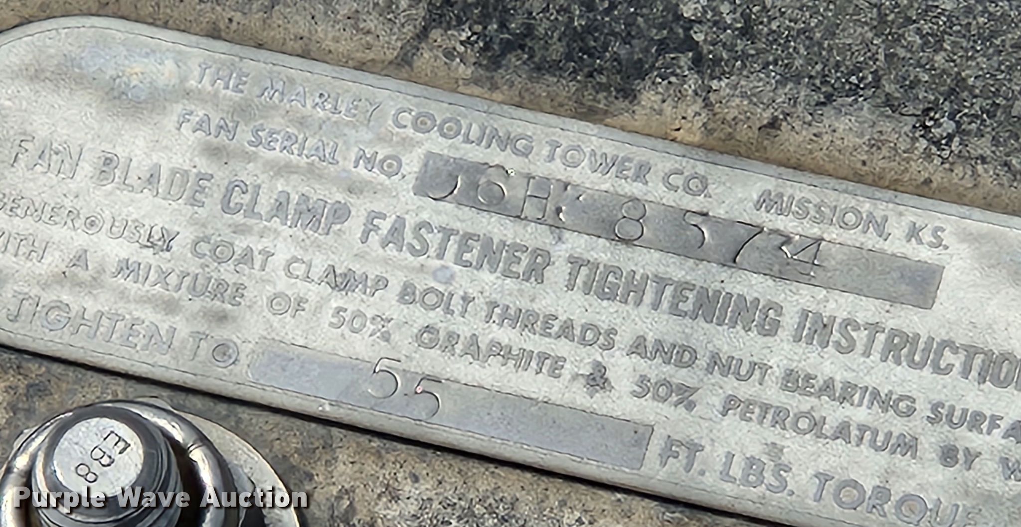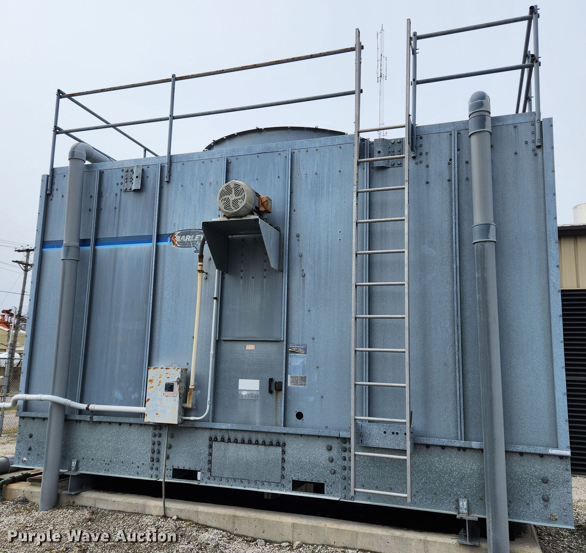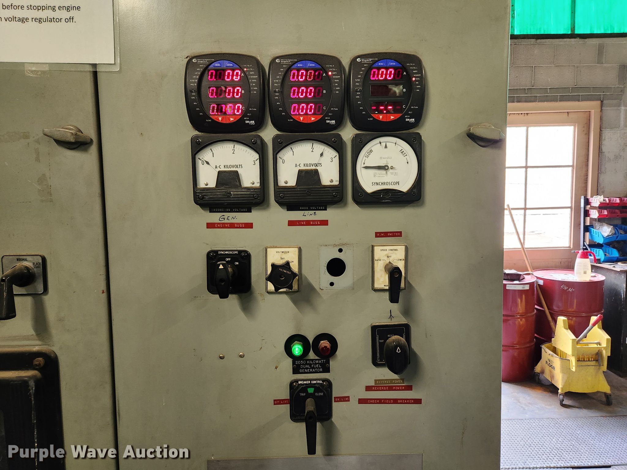 Fairbanks Morse 38TDD8 1/8 generator. Approximately 32' L 9'6" x 9' , Hours: 30,639 on meter, Serial: 970858, Unit #: 5. Engine Fairbanks Morse, Cylinders: 12, Fuel type: Diesel, HP: 2,880. Features Generator Fairbanks Morse, kVA: 2,563, kW: 2,050, Phase: Three, Skid mounted, Exterior exhaust system, Auxiliary cooling system, Auxiliary diesel fuel system, Cycoil oil bath air cleaner 54P03V Serial: C66786, 8' 3" x 12', Switch gear Control box, Marley cooling tower Serial: 002733-NC-421-91, 19' x 106" W x 142", Fan 96", Serial: 06H385734, Siemens Induction Motor Three phase, Volts: 2400/4160. City of Highland, IL. Highland, IL 62249