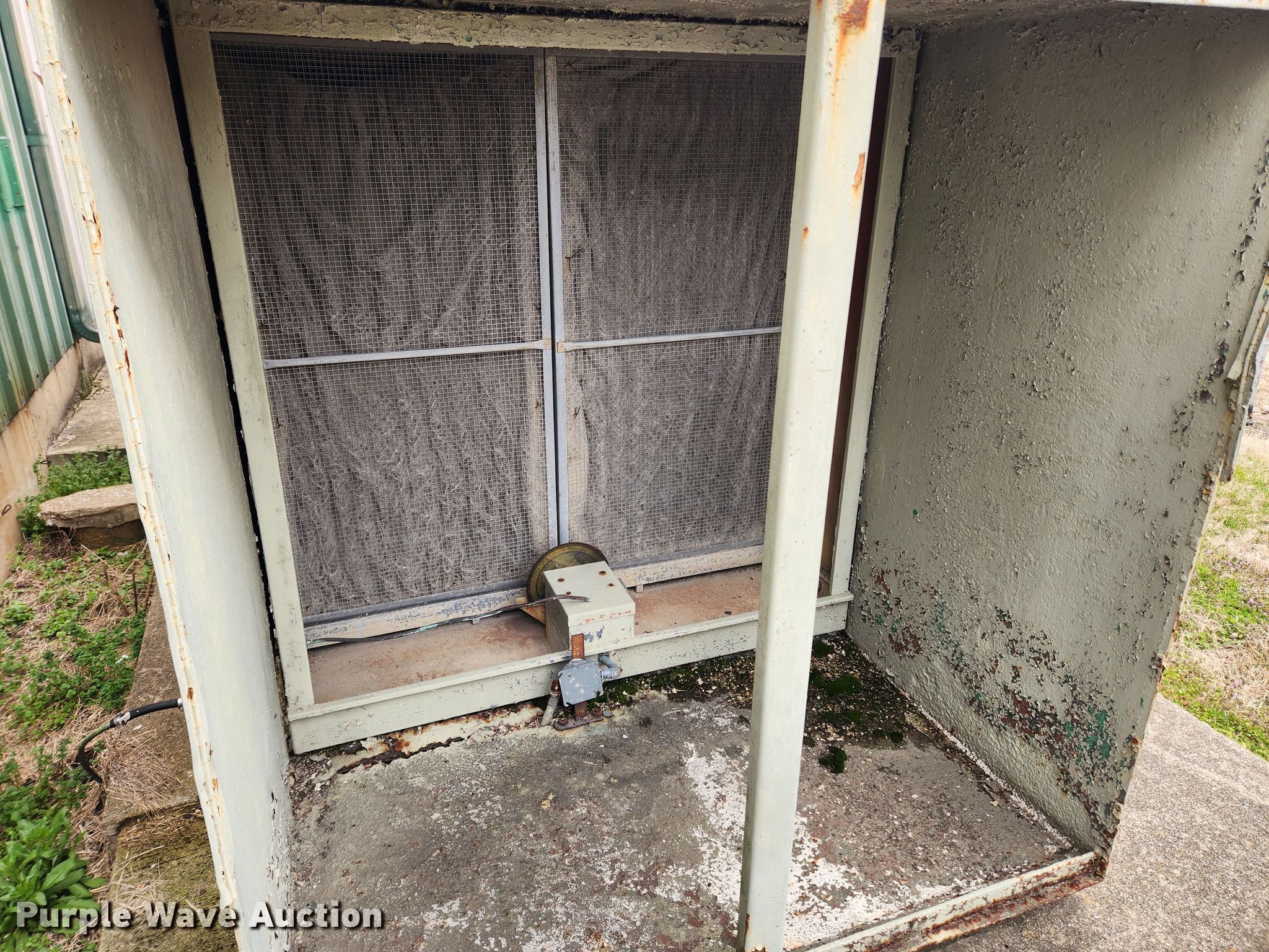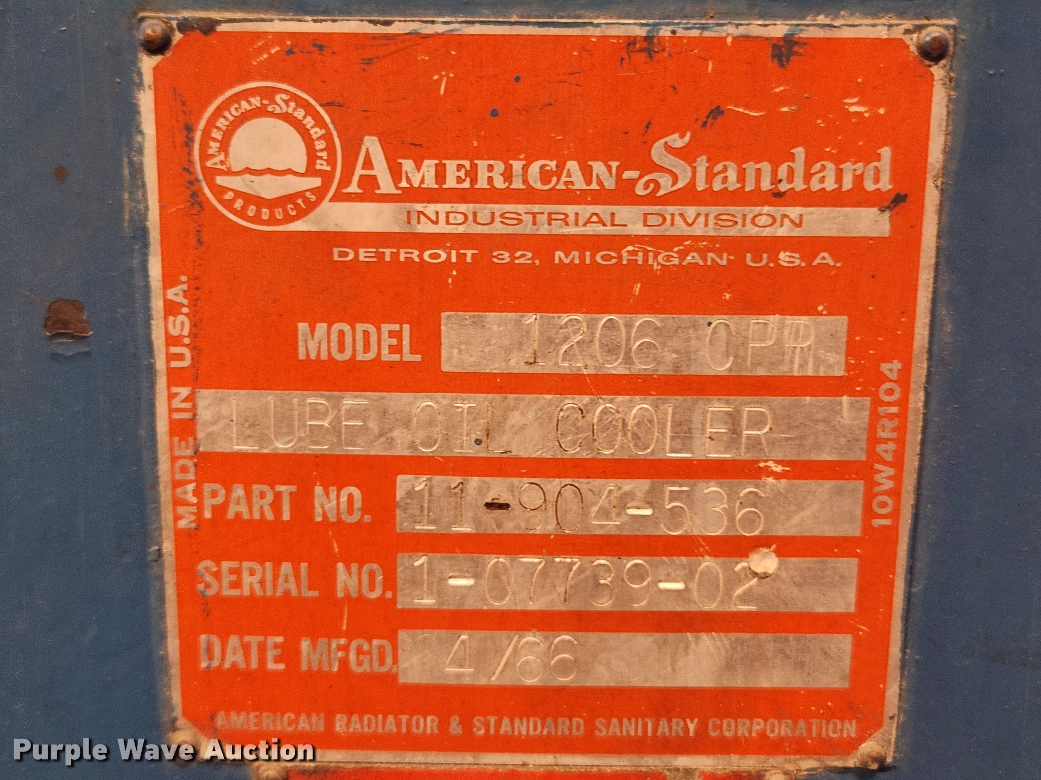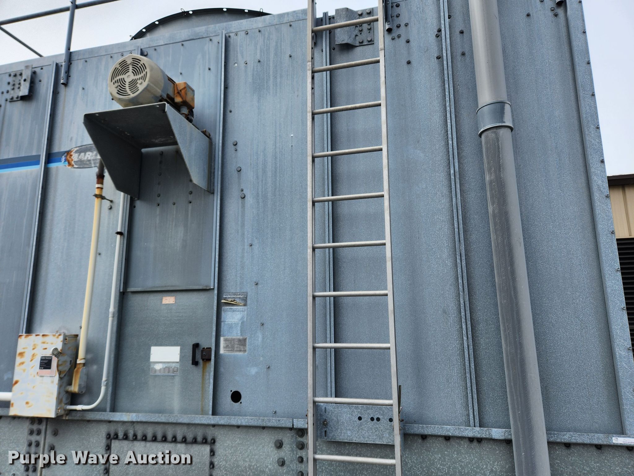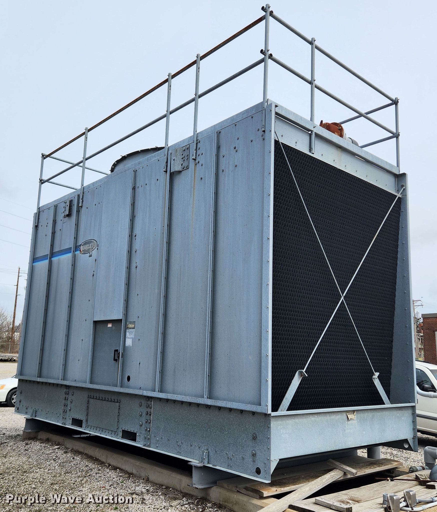 Fairbanks Morse 38TDD8 1/8 generator. Approximately 32' L 9'6" x 9' , Hours: 30,639 on meter, Serial: 970858, Unit #: 5. Engine Fairbanks Morse, Cylinders: 12, Fuel type: Diesel, HP: 2,880. Features Generator Fairbanks Morse, kVA: 2,563, kW: 2,050, Phase: Three, Skid mounted, Exterior exhaust system, Auxiliary cooling system, Auxiliary diesel fuel system, Cycoil oil bath air cleaner 54P03V Serial: C66786, 8' 3" x 12', Switch gear Control box, Marley cooling tower Serial: 002733-NC-421-91, 19' x 106" W x 142", Fan 96", Serial: 06H385734, Siemens Induction Motor Three phase, Volts: 2400/4160. City of Highland, IL. Highland, IL 62249