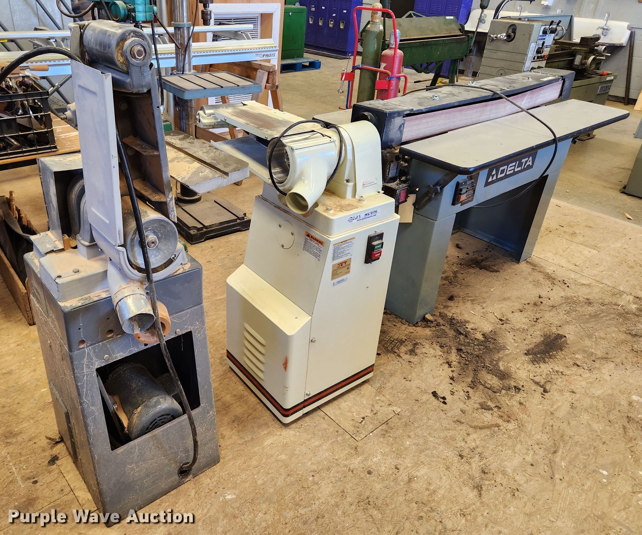 Purple Wave is selling a used Tools in Illinois. This item is a (3) belt sanders with the following: Delta, 115 V, Single phase, Rockwell/Delta 31-710, 115 V, Jet J-4300A 6" belt finishing machine, Non-operational