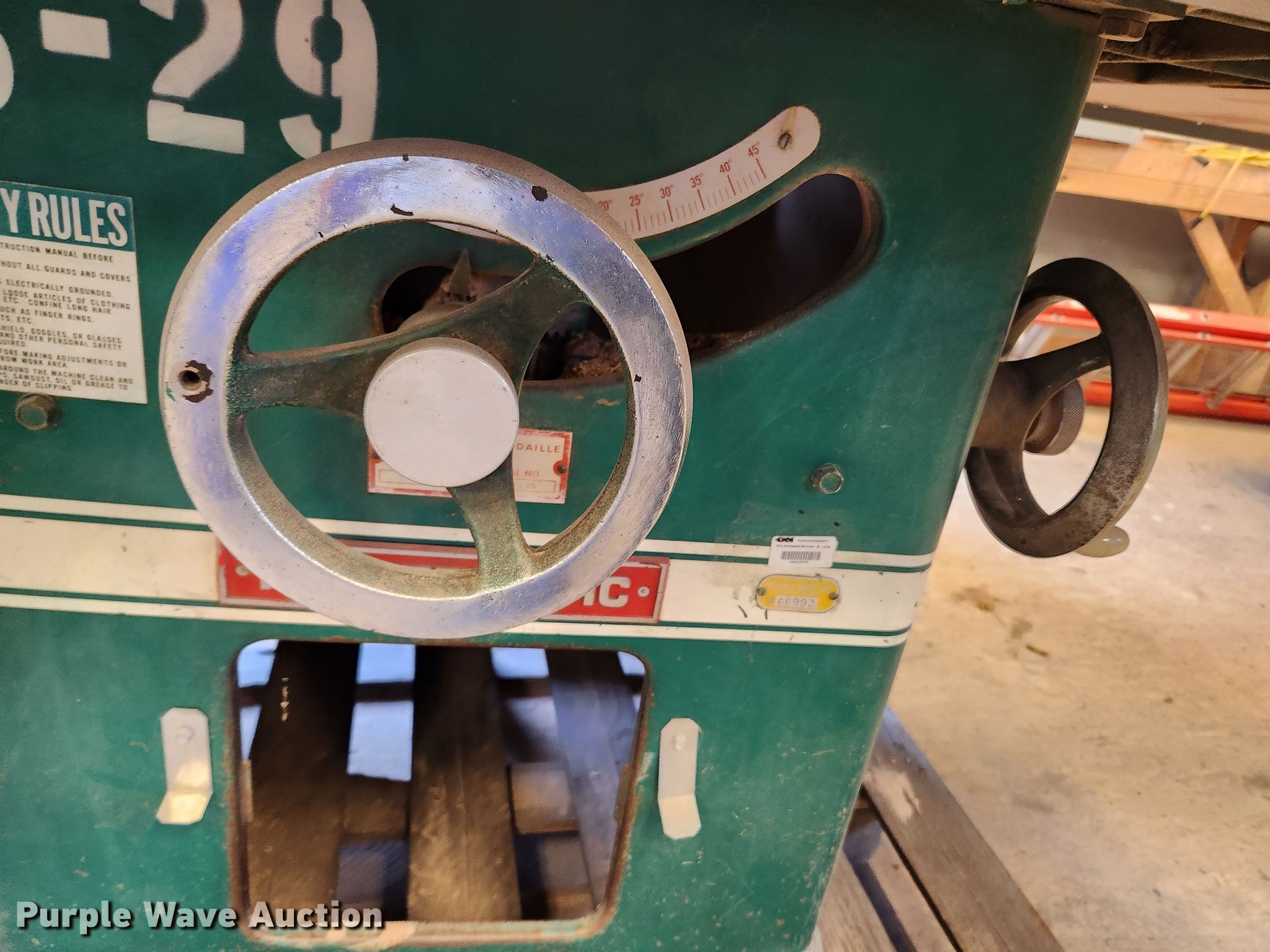 Purple Wave is selling a used Tools in Illinois. This item is a Powermatic 72 table saw with the following: Serial: 372136