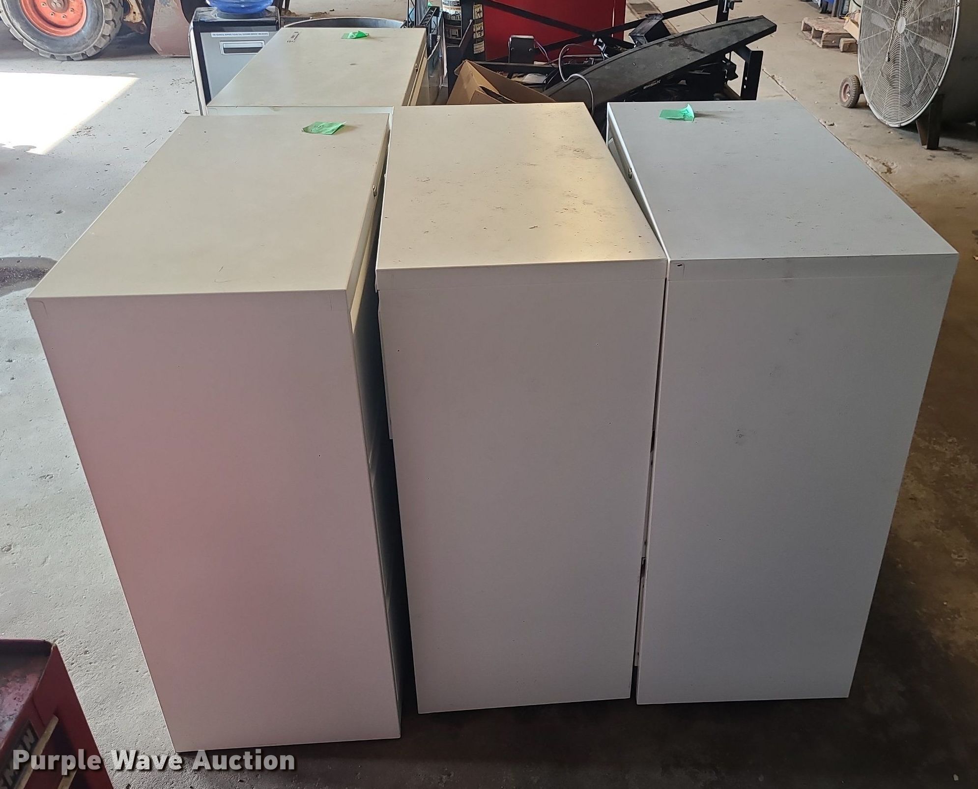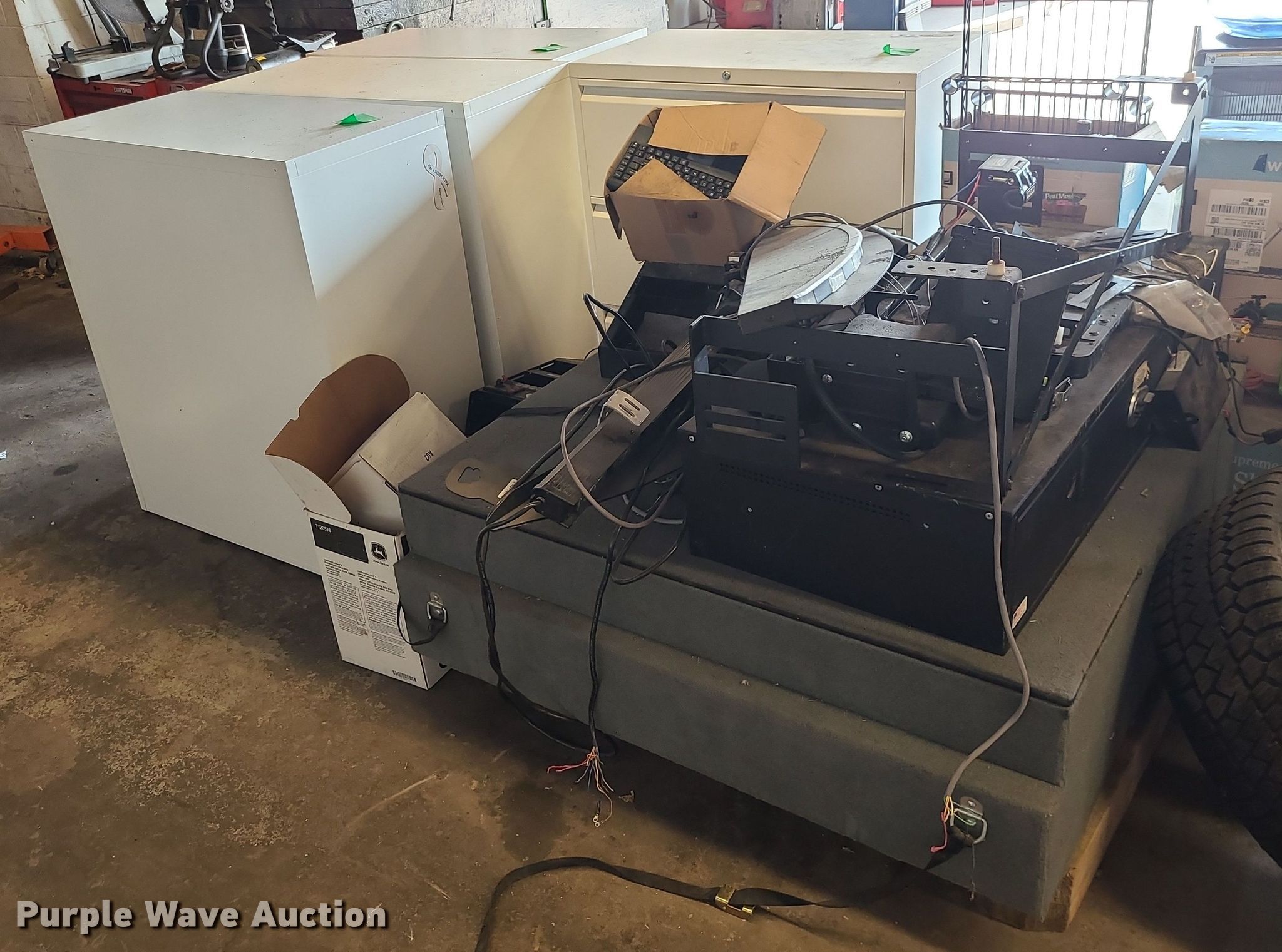 Purple Wave is selling a used Furniture in Missouri. This item is a Furniture with the following: (4) file cabinets, Gun safe, Lights, Wiring and more, Unknown operating conditions