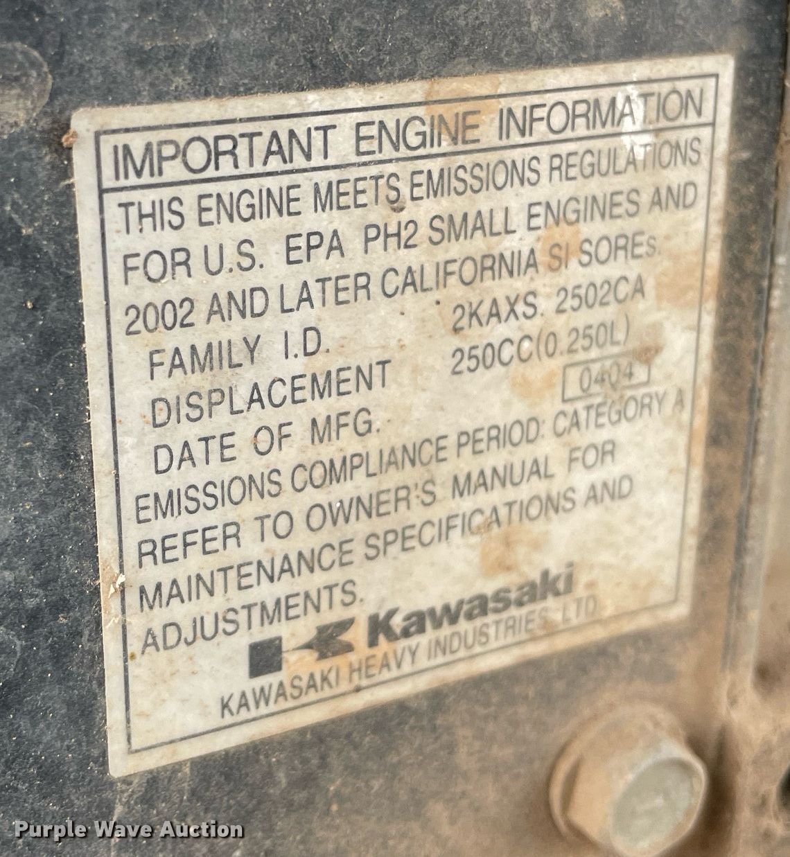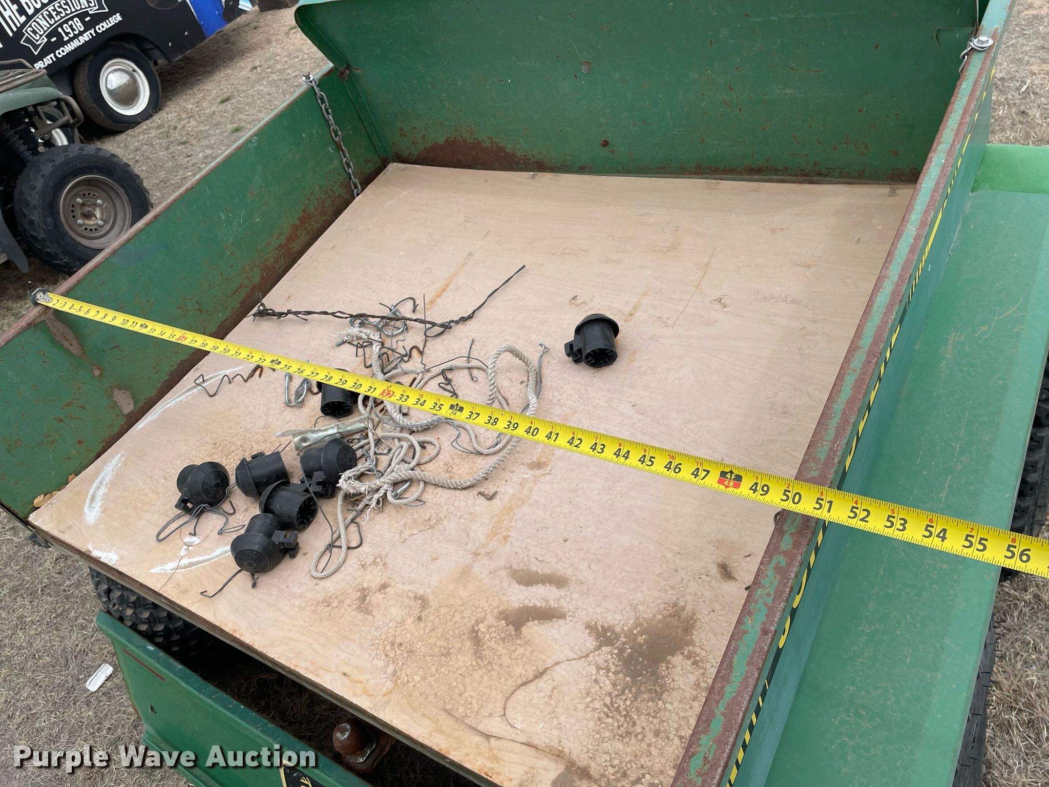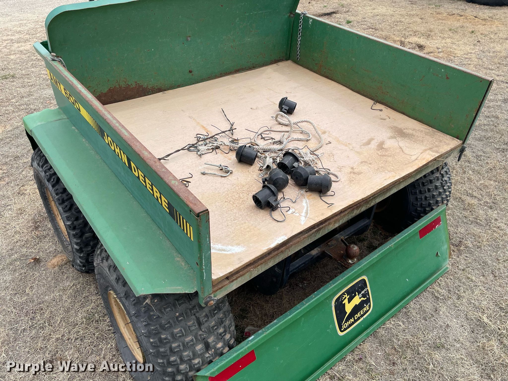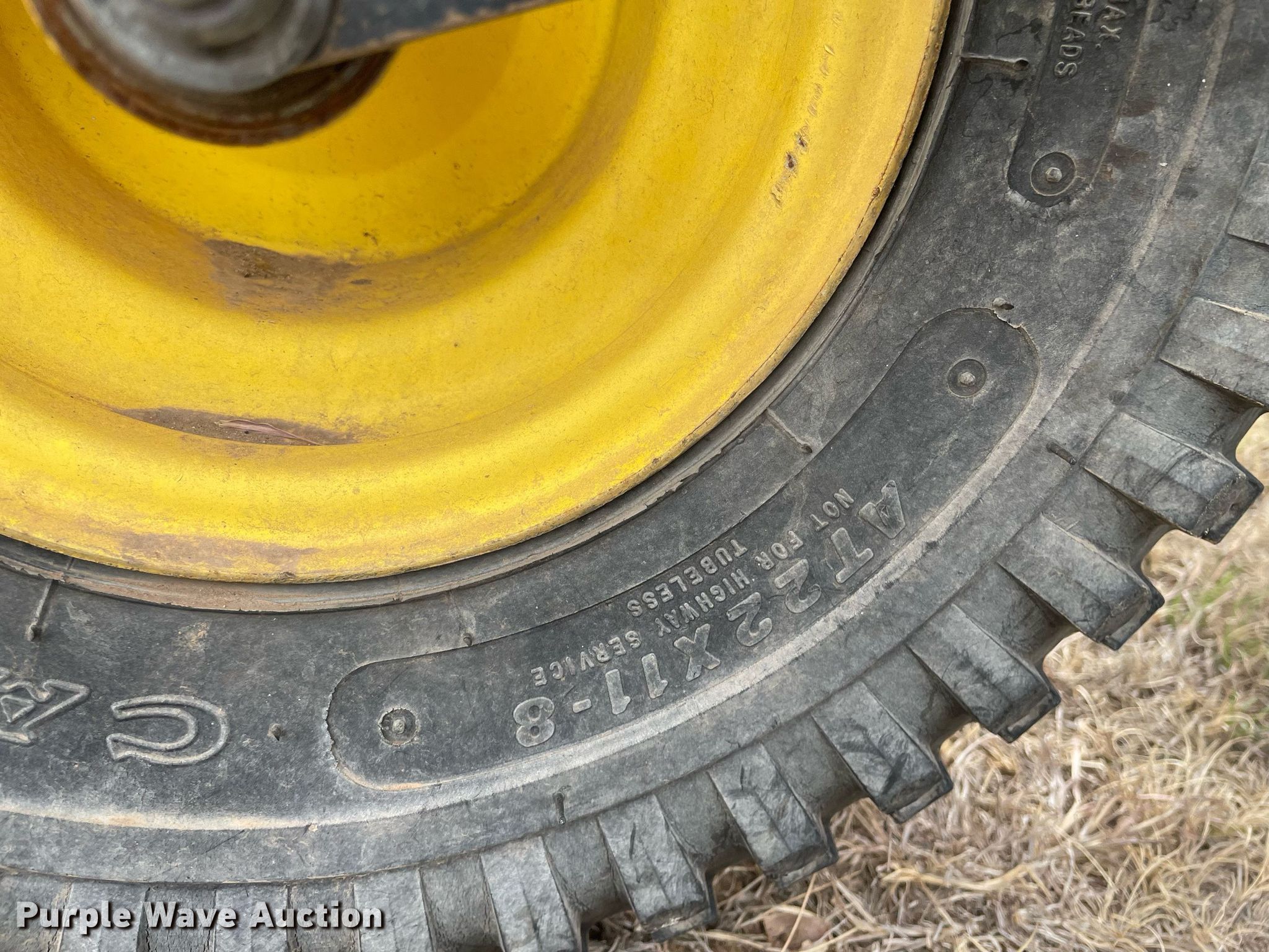 1988 John Deere AMT600 utility vehicle. Serial: W00600X007922. Engine Kawasaki, Displacement: 250 cc, Cylinders: 1, Fuel type: Gas, Electric start. Transmission CVT. Features Dump bed 48" L x 48" W, Dump bed type: Manual. Tires Front: 22x11-8, Rear: 25x12-9. Notes Dead battery, Unknown operating condition. Transfer of ownership documentation will be a bill of sale. Pratt Community College. Pratt, KS 67124