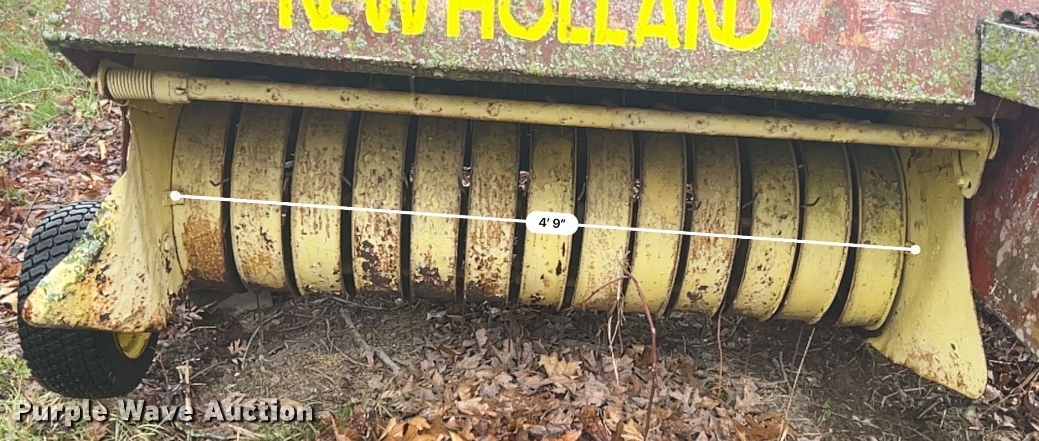 Purple Wave is selling a used Square Baler in Missouri. This item is a New Holland 269 small square baler with the following: PTO: 540, Pickup width: 4' 8", Small square bale size: 14"x18", Bale chute