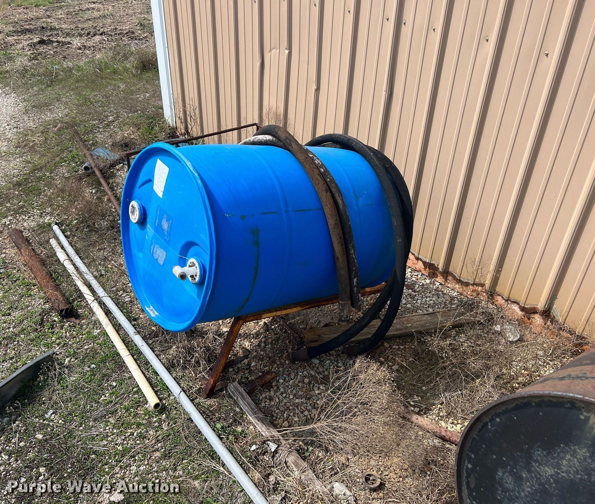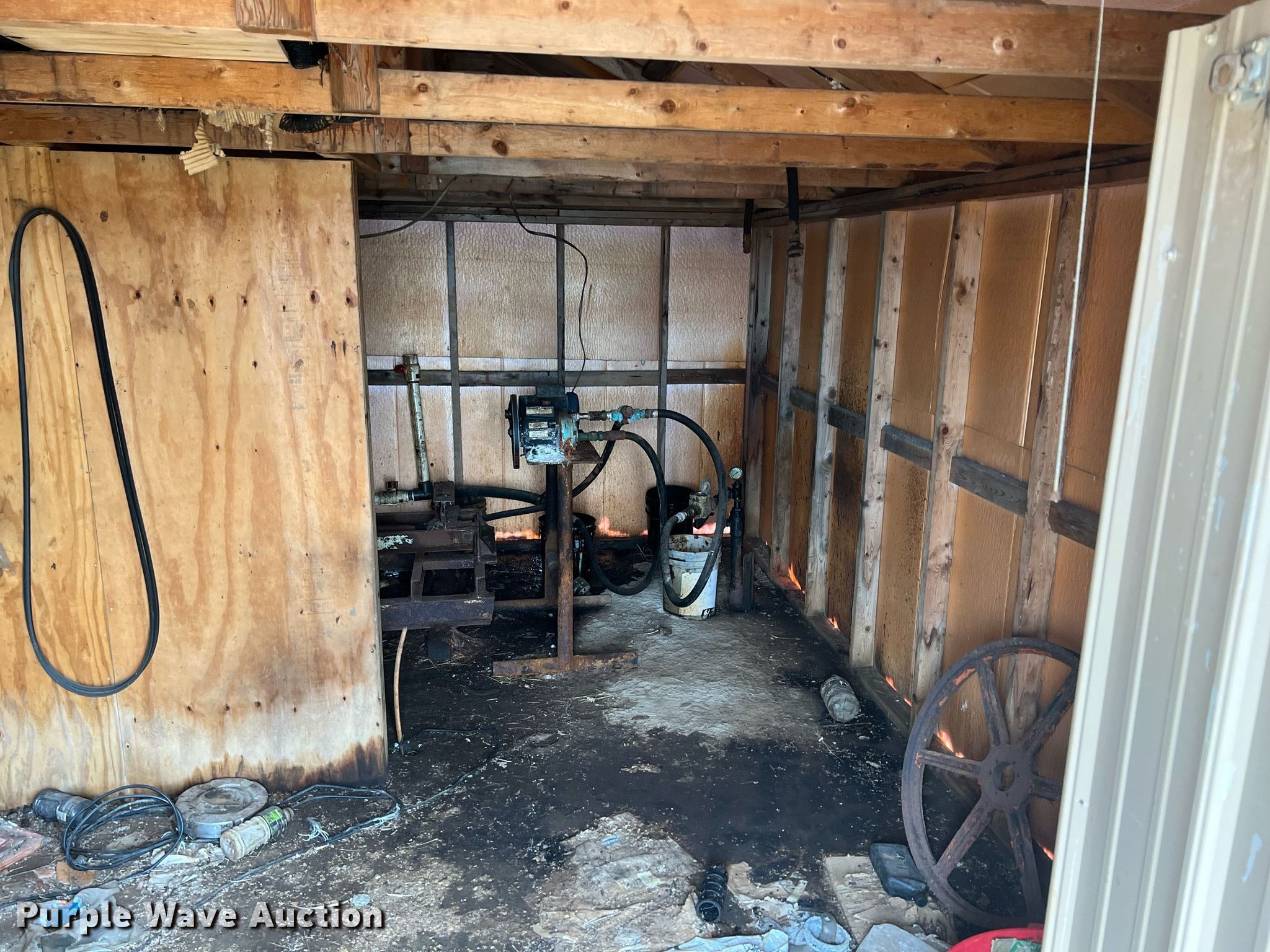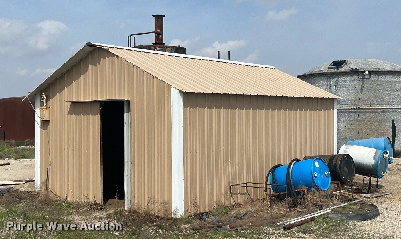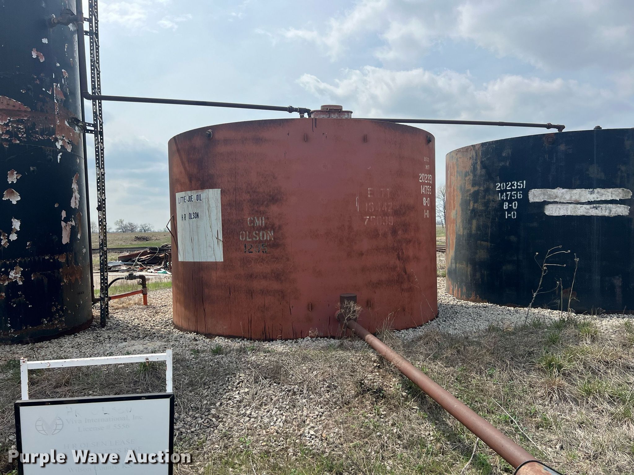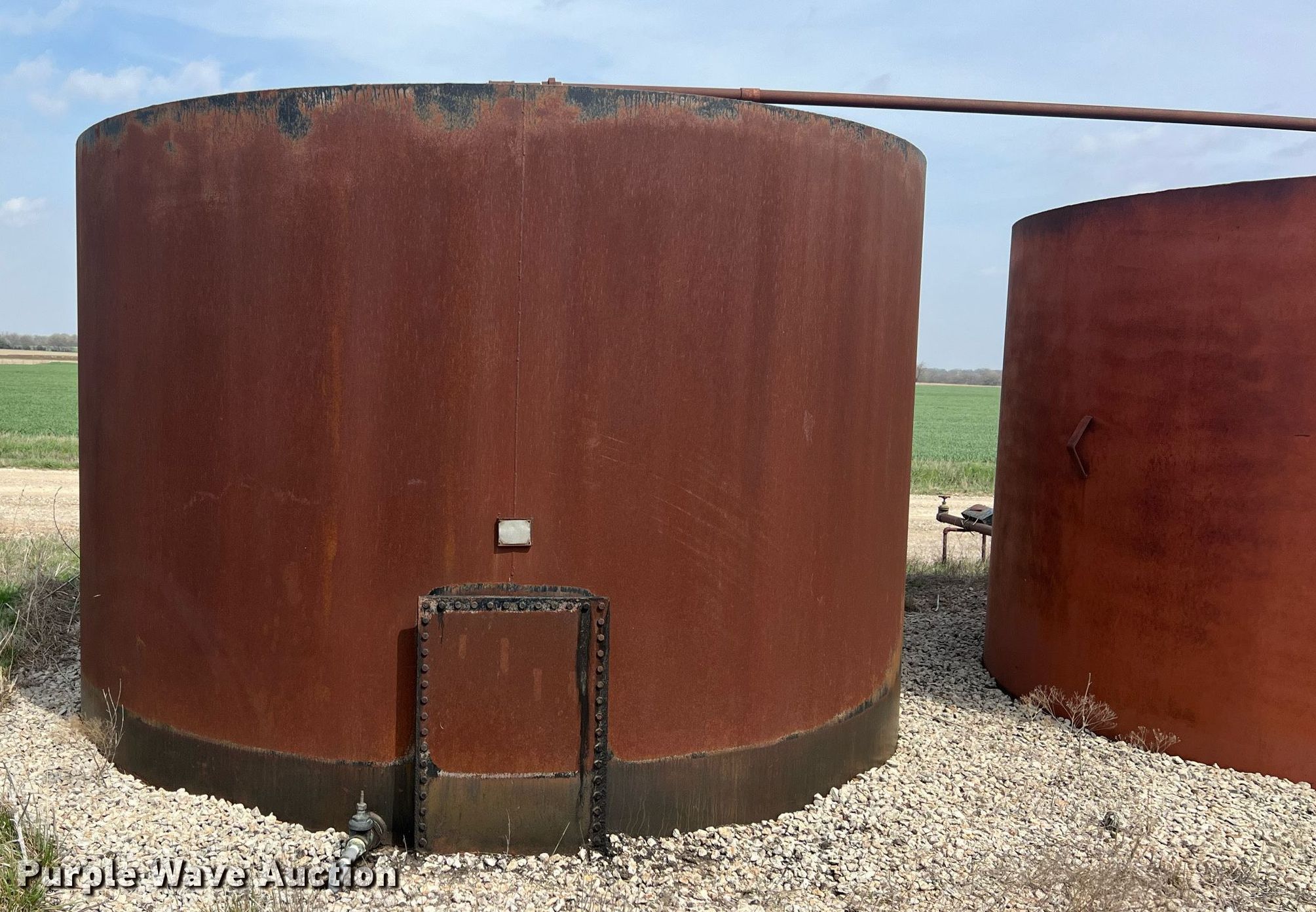 Purple Wave is selling a used Other Industrial or Business in Kansas. This item is a Oilfield equipment with the following: Control #: 2023FP3-02 - HR Olson, (2) metal tanks, Capacity: approx. 100 barrels, Gun barrel, Capacity: approx. 75 barrels, (2) fiberglass tanks, Capacity: approx. 100 barrels, (4) chemical barrels, Capacity: 55 gallons, Stands, Pump house, 18' x 12', Pump, (2) electric motors, Hoses, Pulleys, Casing clamps