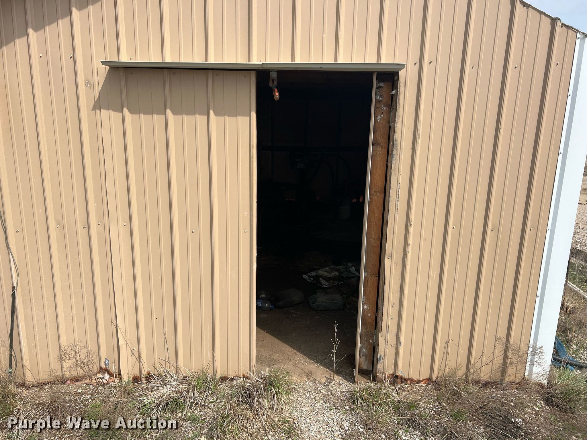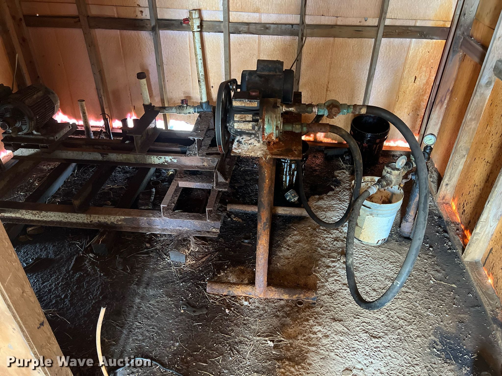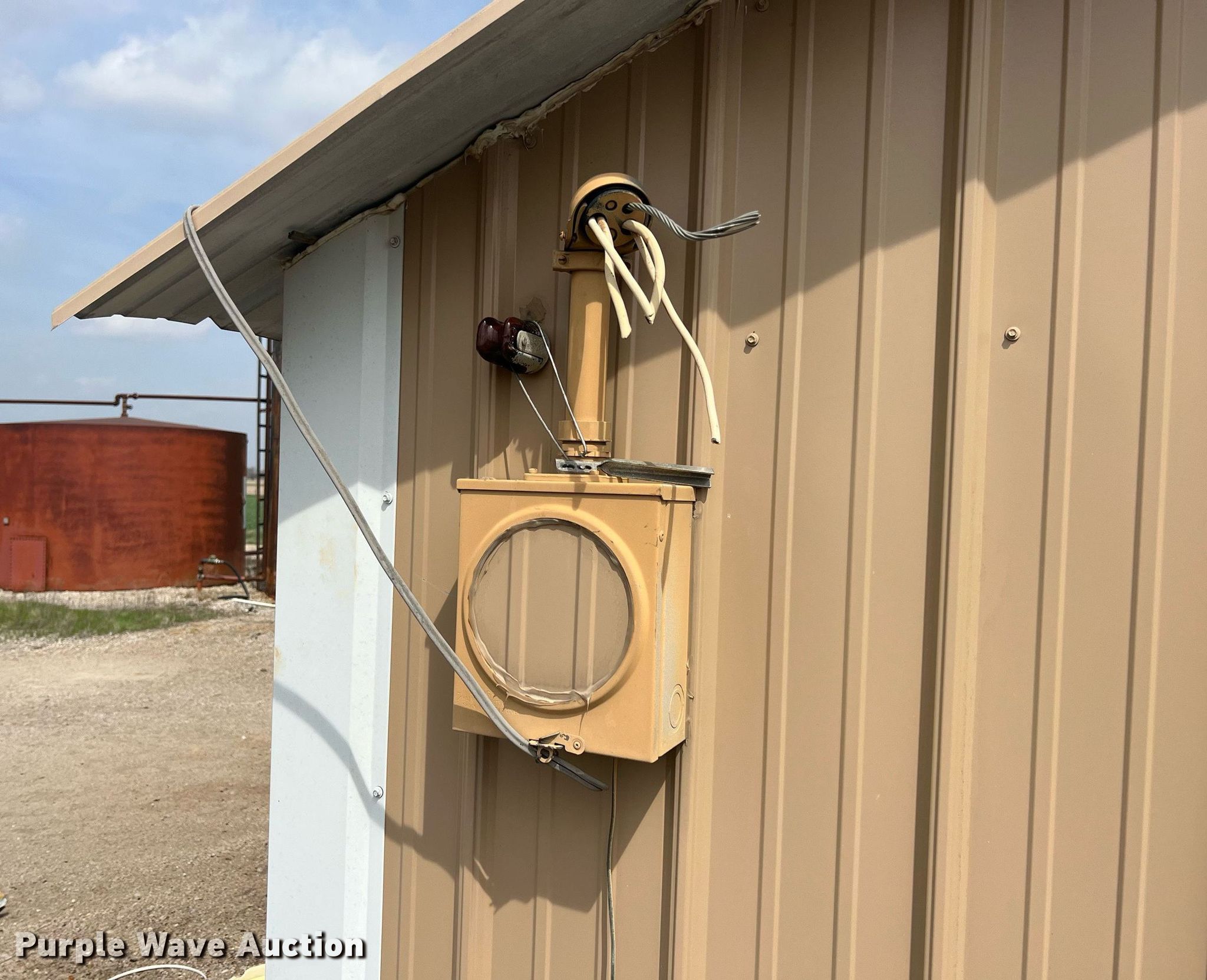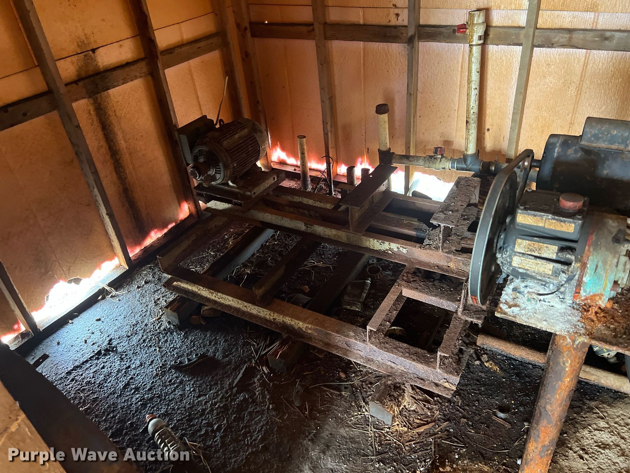 Purple Wave is selling a used Other Industrial or Business in Kansas. This item is a Oilfield equipment with the following: Control #: 2023FP3-02 - HR Olson, (2) metal tanks, Capacity: approx. 100 barrels, Gun barrel, Capacity: approx. 75 barrels, (2) fiberglass tanks, Capacity: approx. 100 barrels, (4) chemical barrels, Capacity: 55 gallons, Stands, Pump house, 18' x 12', Pump, (2) electric motors, Hoses, Pulleys, Casing clamps