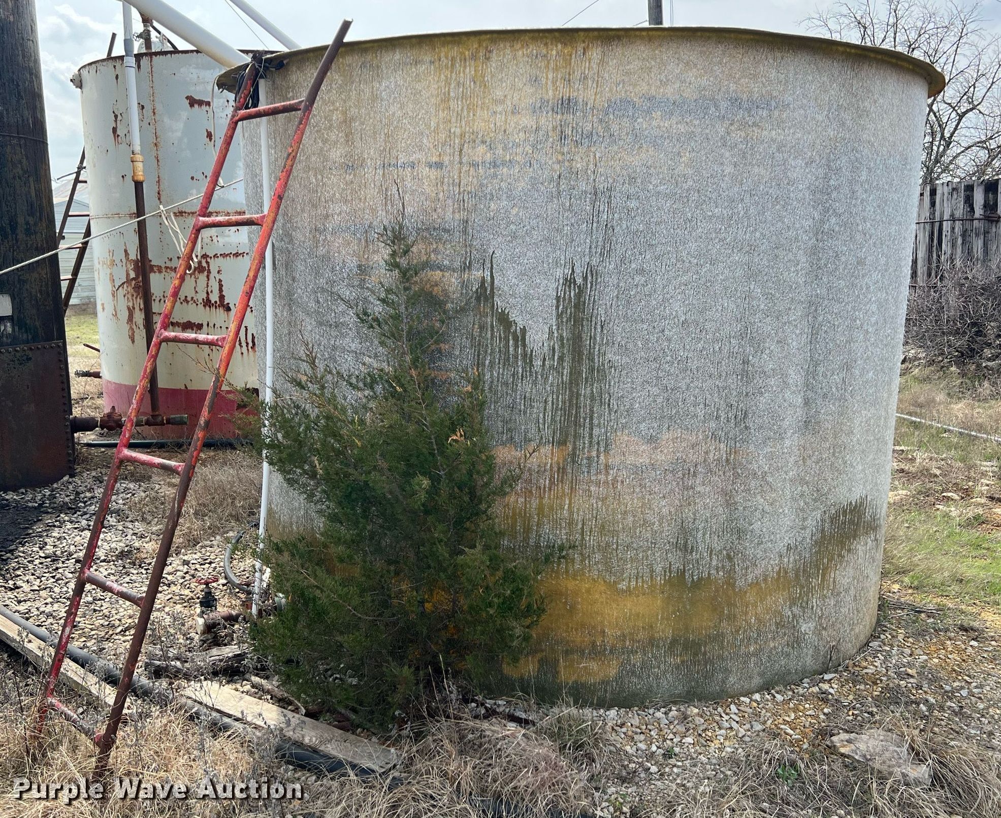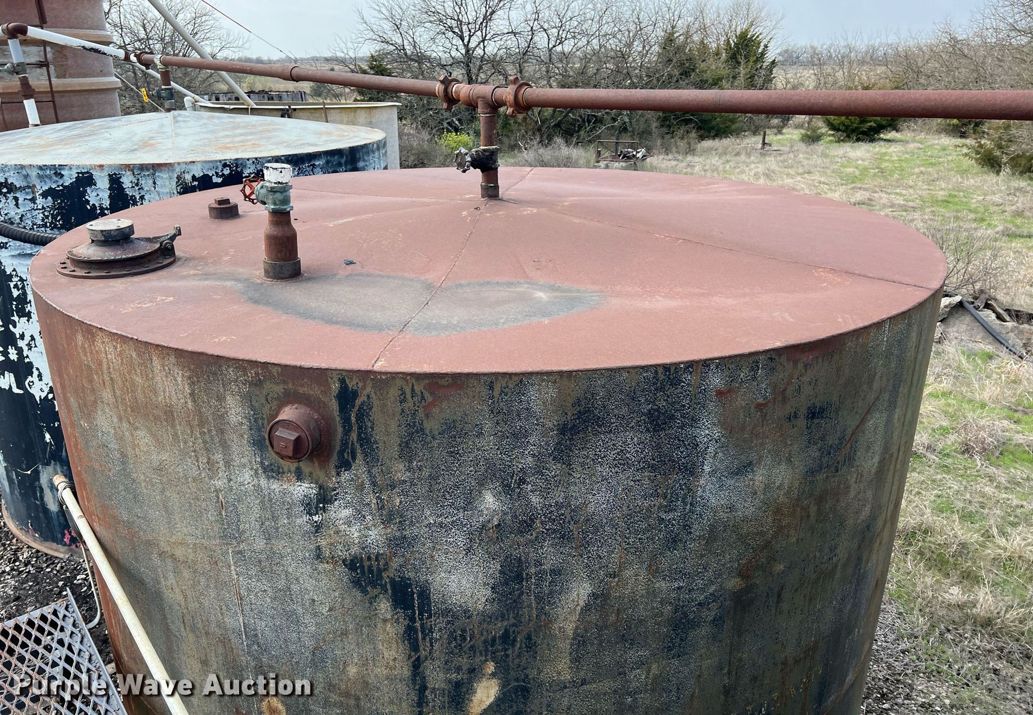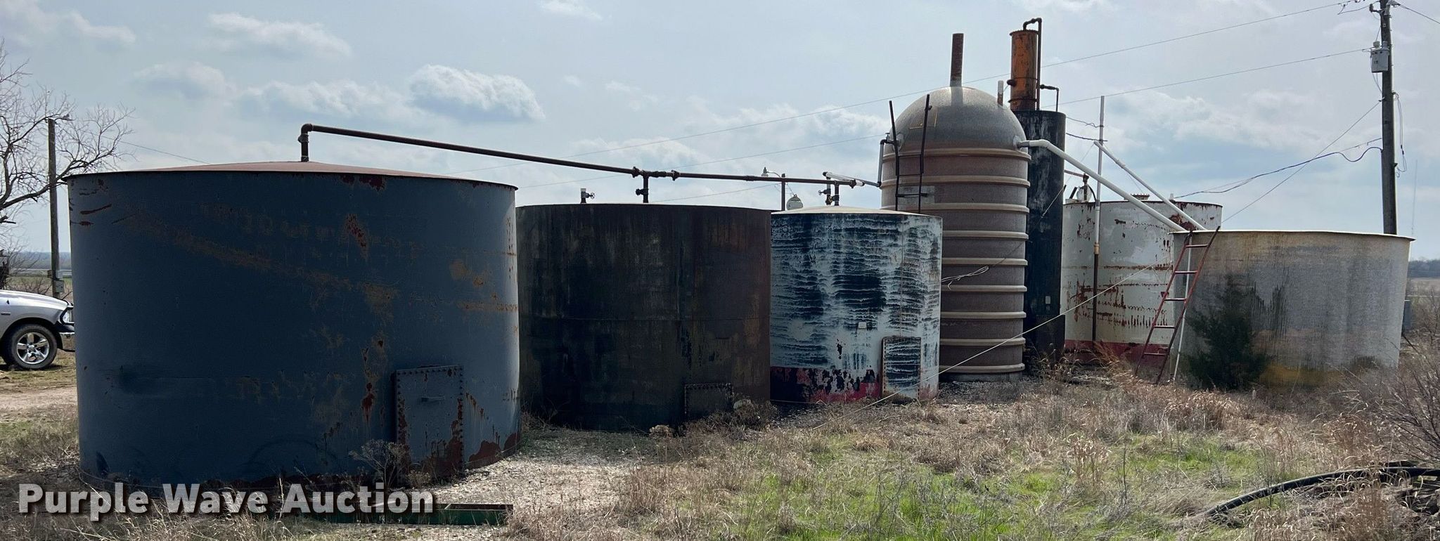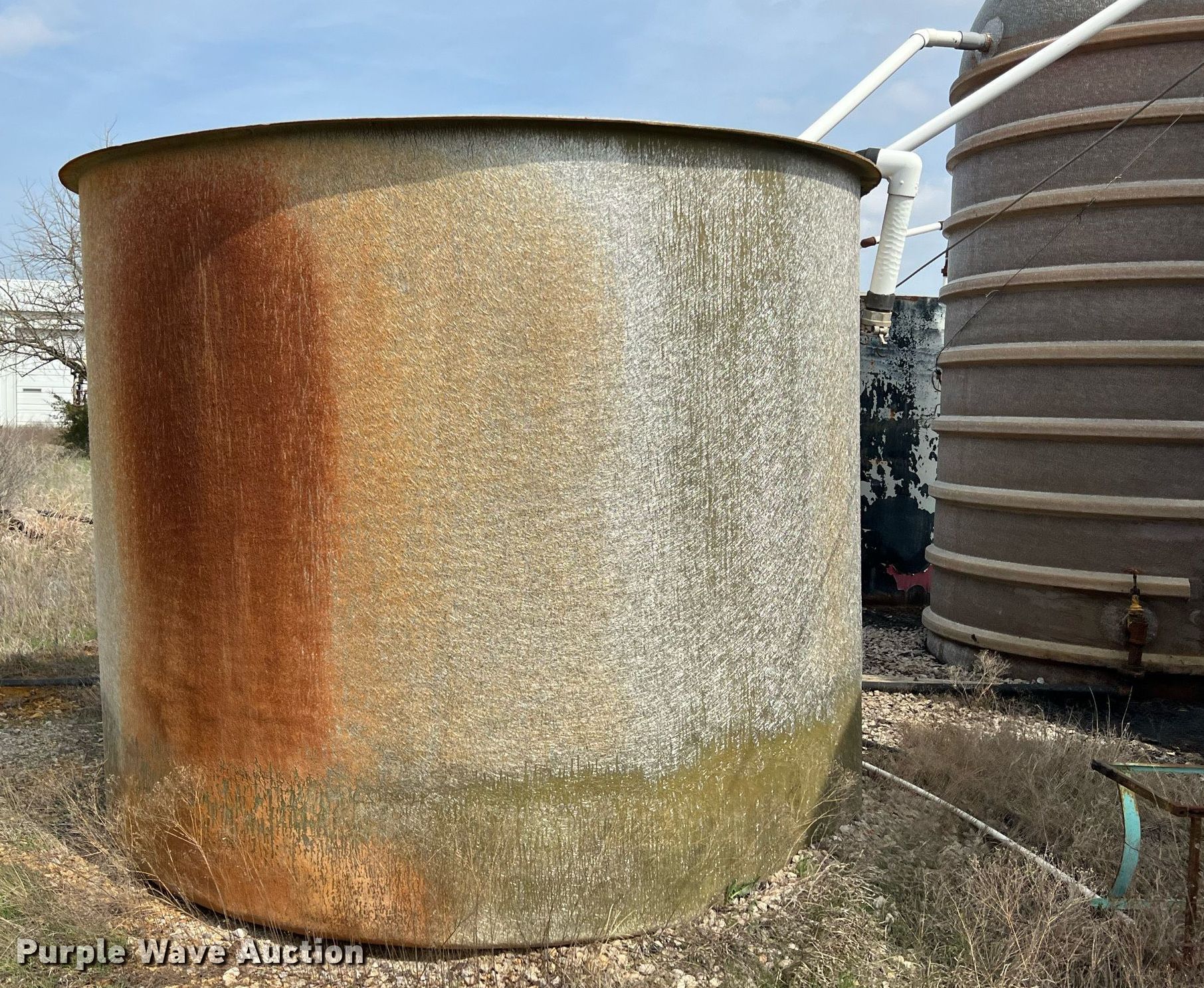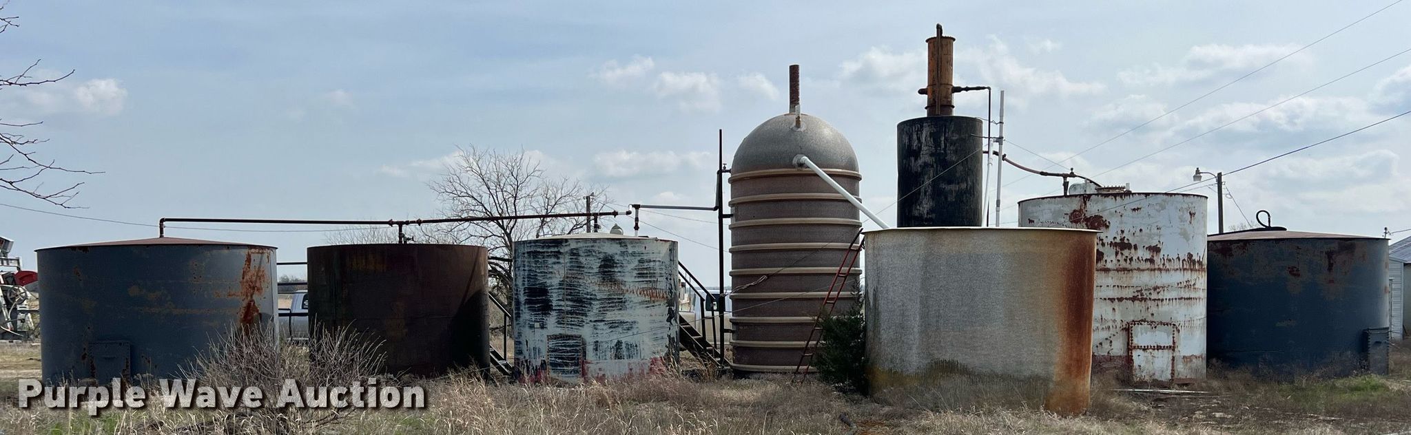 Purple Wave is selling a used Tanks in Kansas. This item is a (12) tanks with the following: Control #: 2023FP3-02 - Miley, (5) metal tanks, Fiberglass gun barrel, Capacity: approx. 50 barrels, Fiberglass tank, (4) tanks, Capacity: approx. 100 barrels, Steel gun barrel, Capacity: approx. 50 barrels