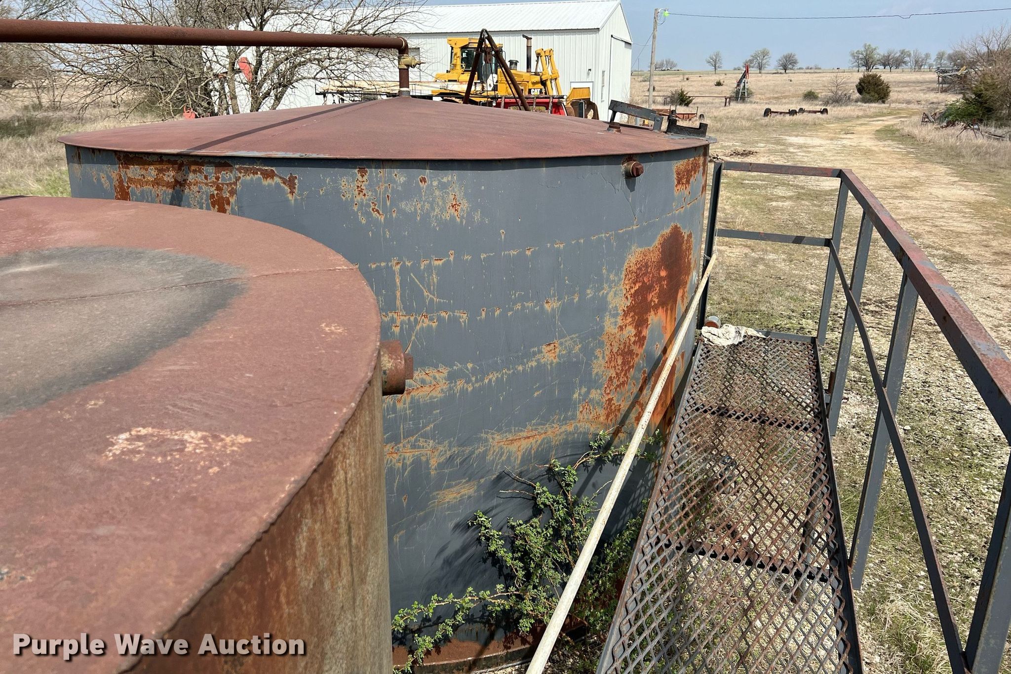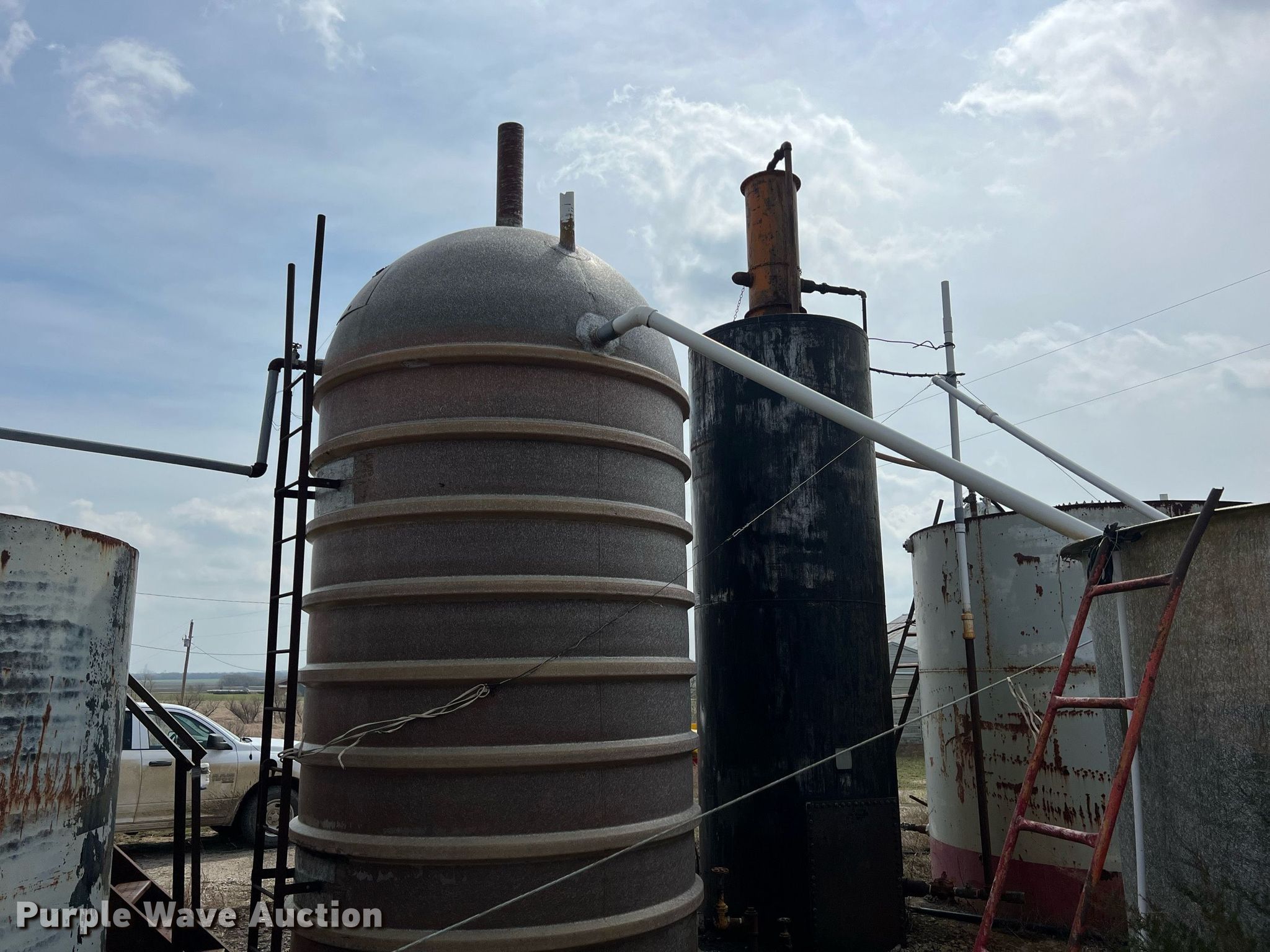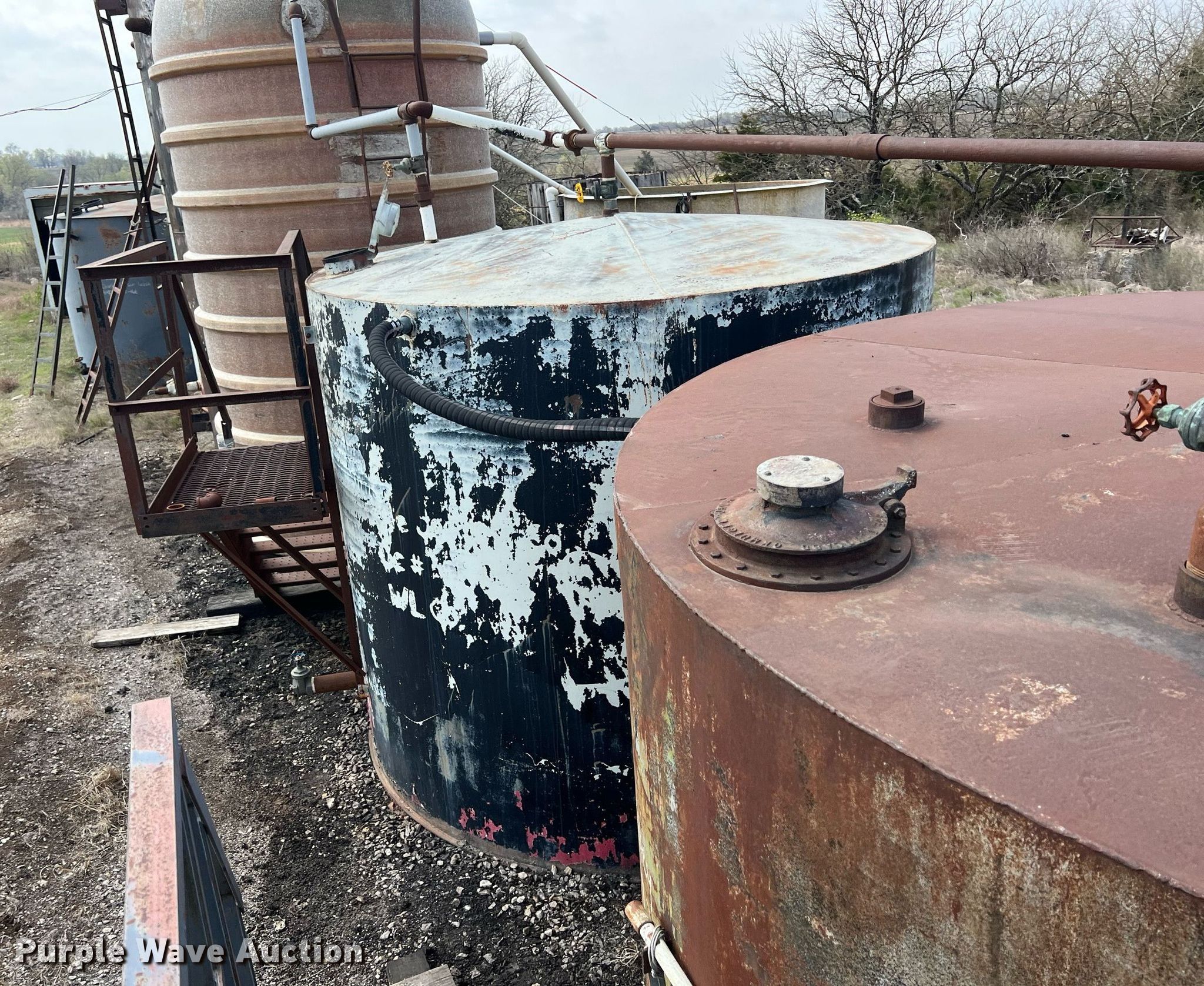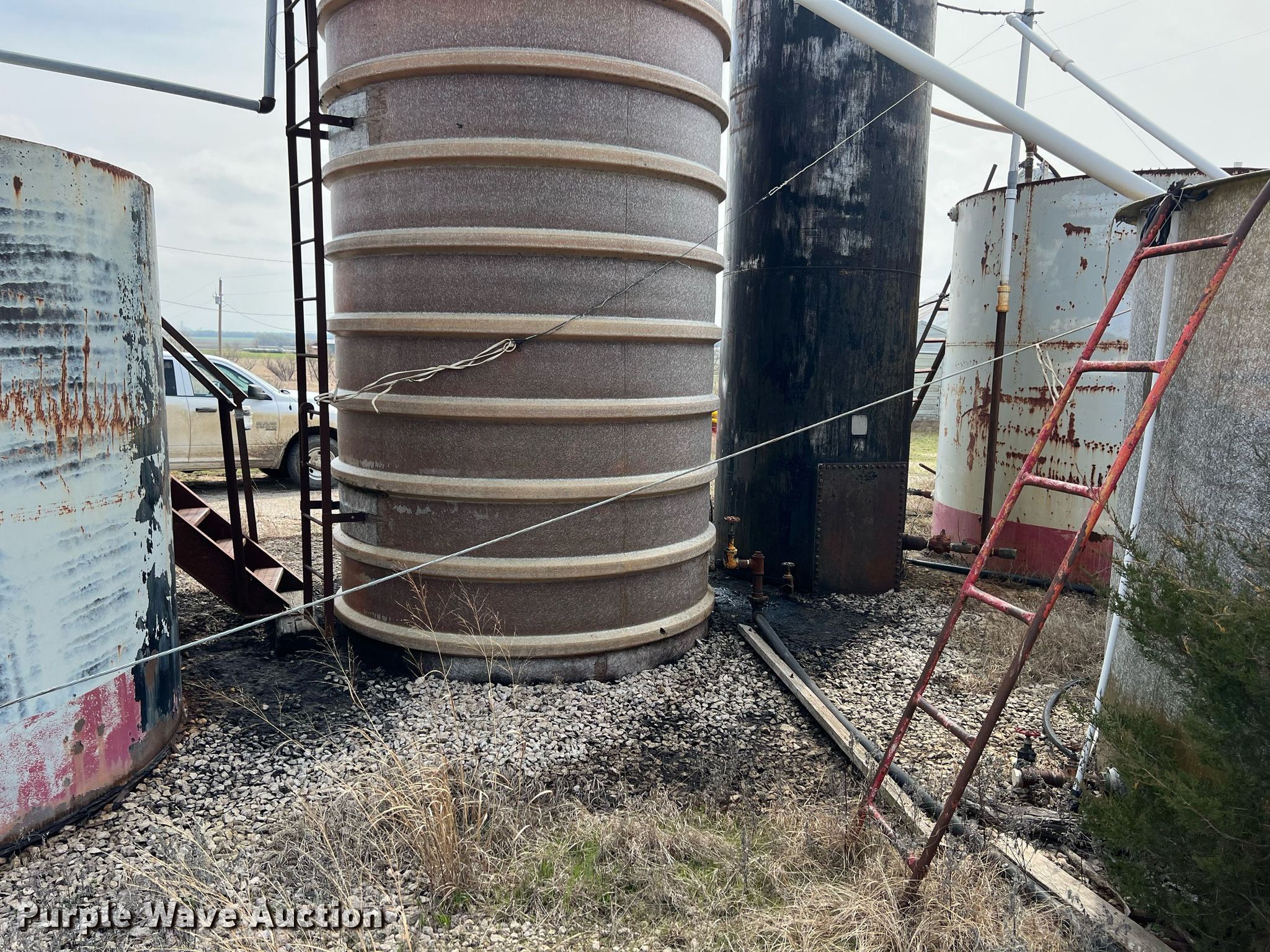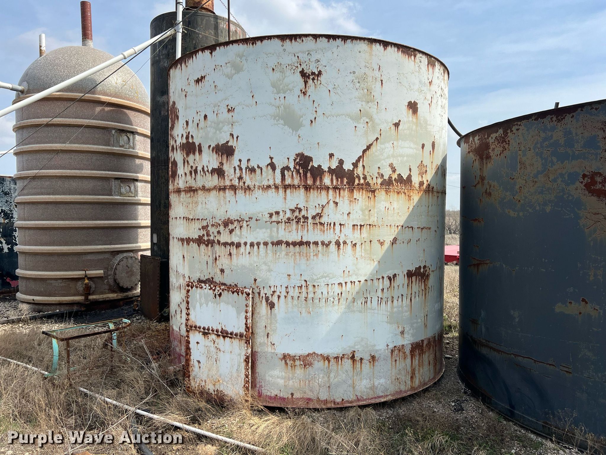 Purple Wave is selling a used Tanks in Kansas. This item is a (12) tanks with the following: Control #: 2023FP3-02 - Miley, (5) metal tanks, Fiberglass gun barrel, Capacity: approx. 50 barrels, Fiberglass tank, (4) tanks, Capacity: approx. 100 barrels, Steel gun barrel, Capacity: approx. 50 barrels