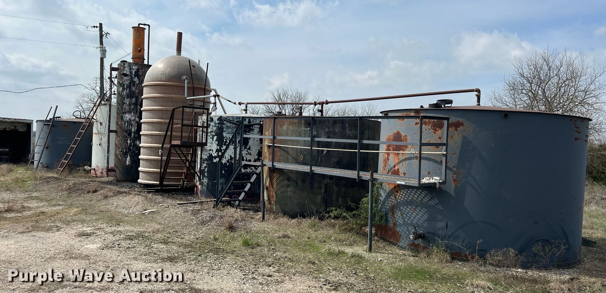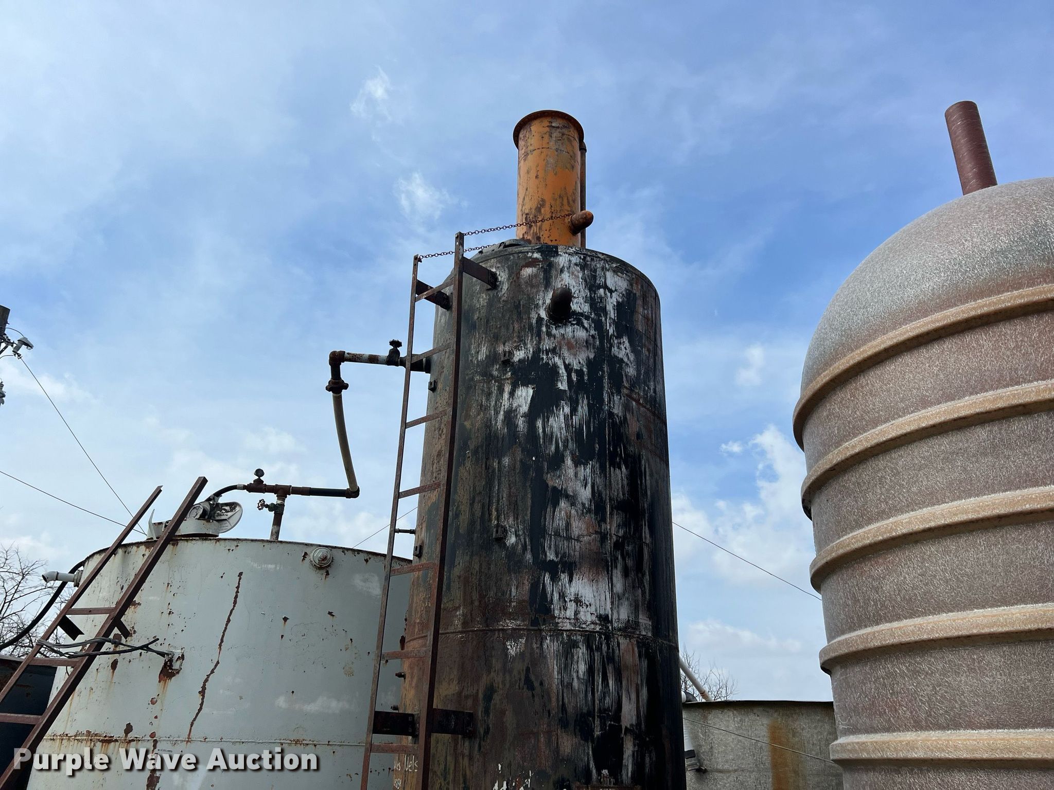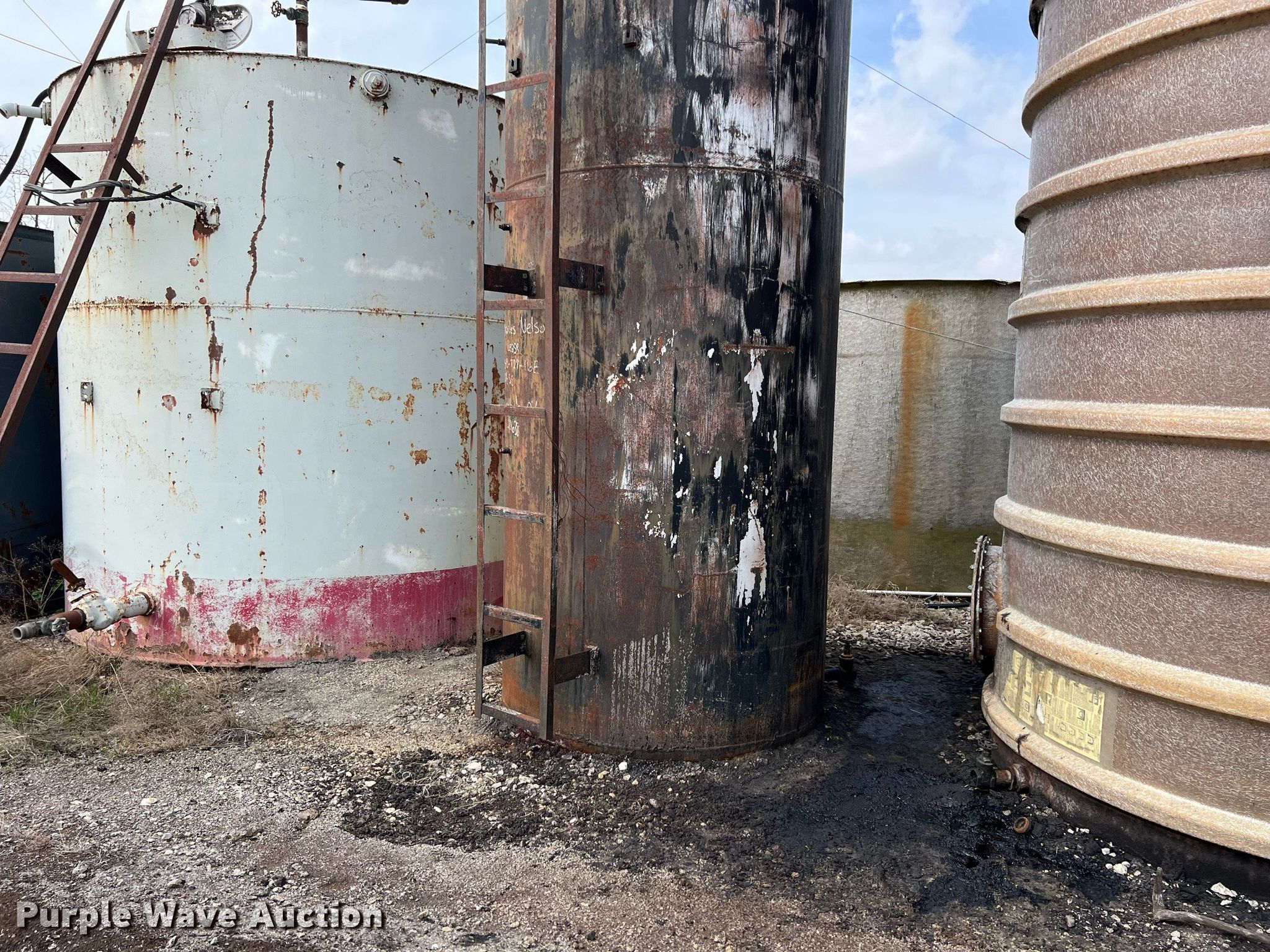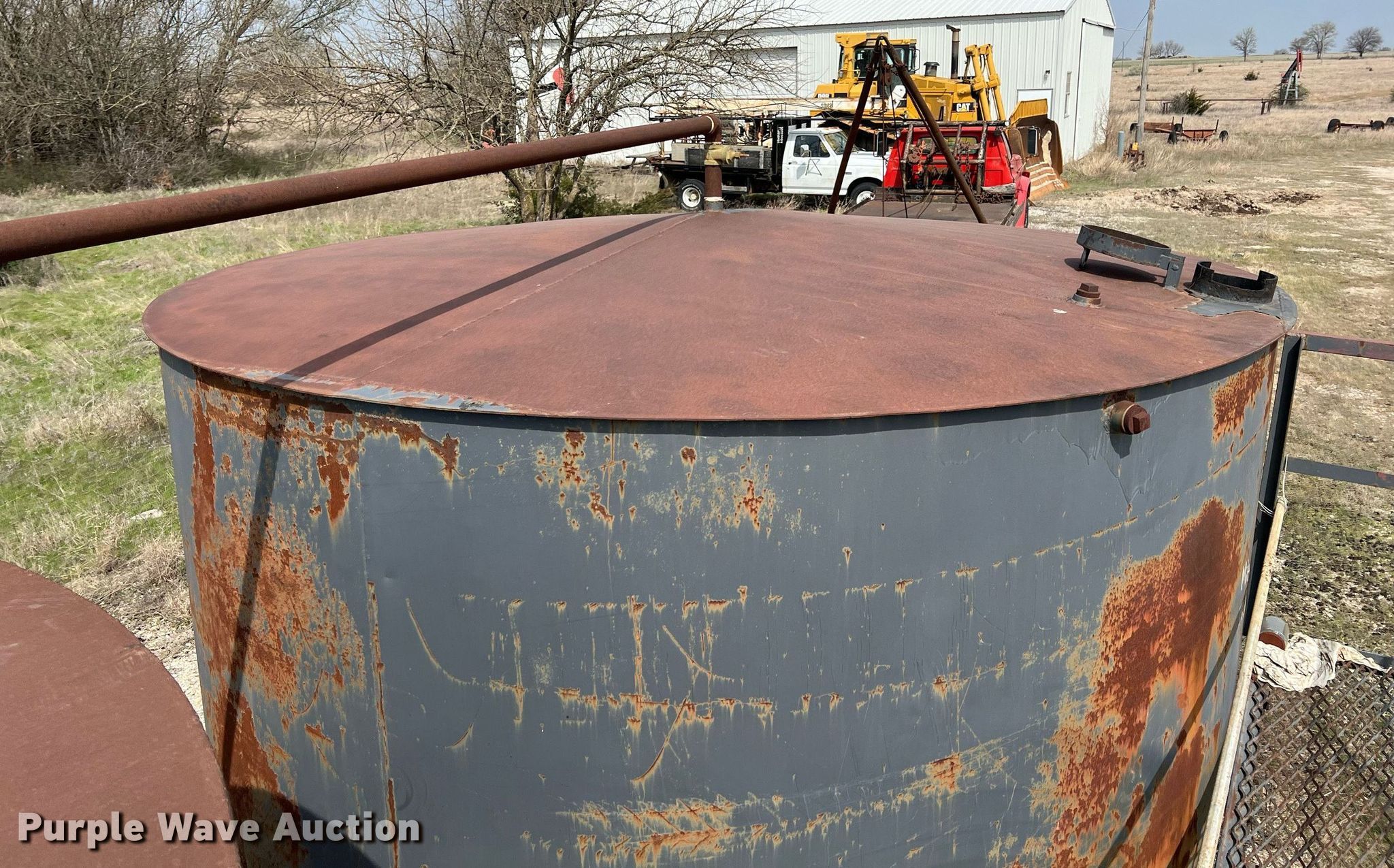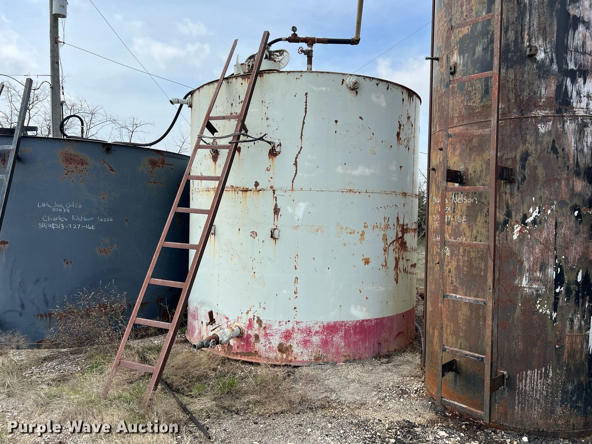 Purple Wave is selling a used Tanks in Kansas. This item is a (12) tanks with the following: Control #: 2023FP3-02 - Miley, (5) metal tanks, Fiberglass gun barrel, Capacity: approx. 50 barrels, Fiberglass tank, (4) tanks, Capacity: approx. 100 barrels, Steel gun barrel, Capacity: approx. 50 barrels