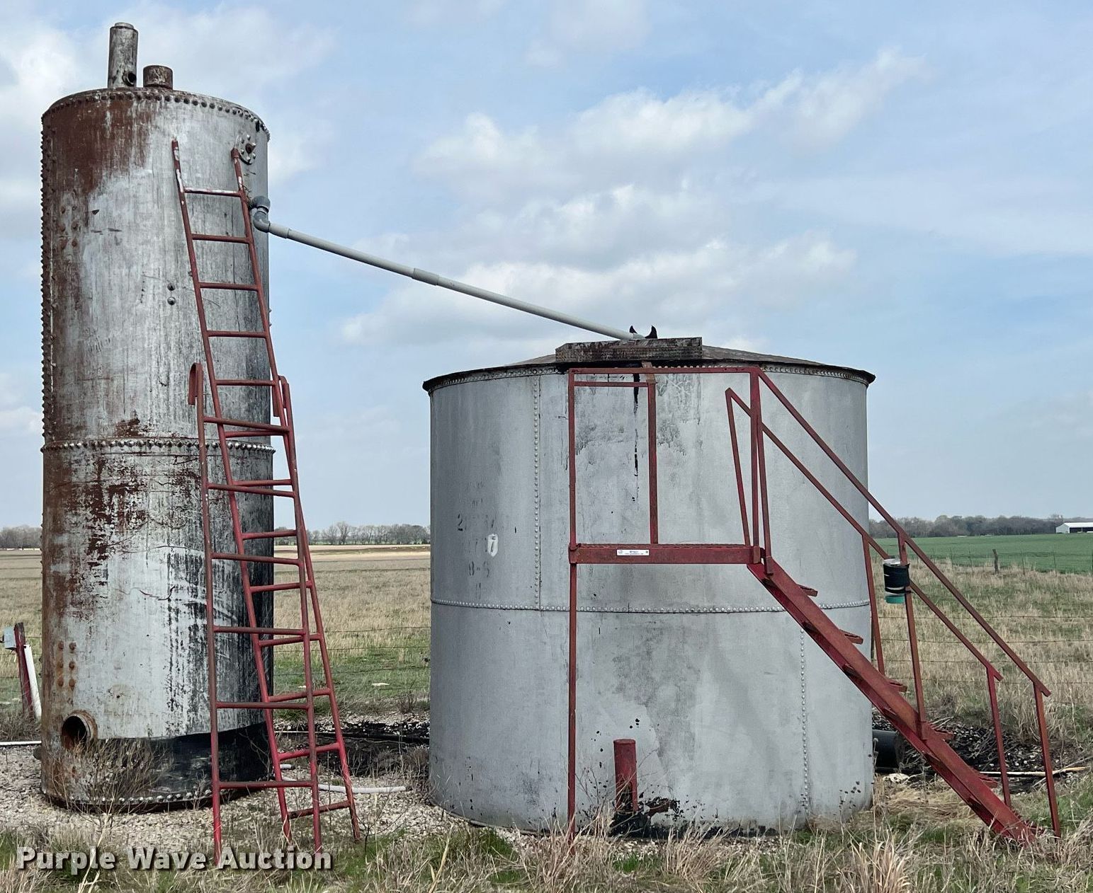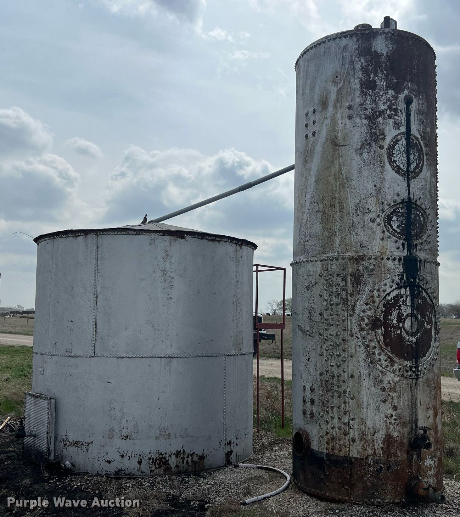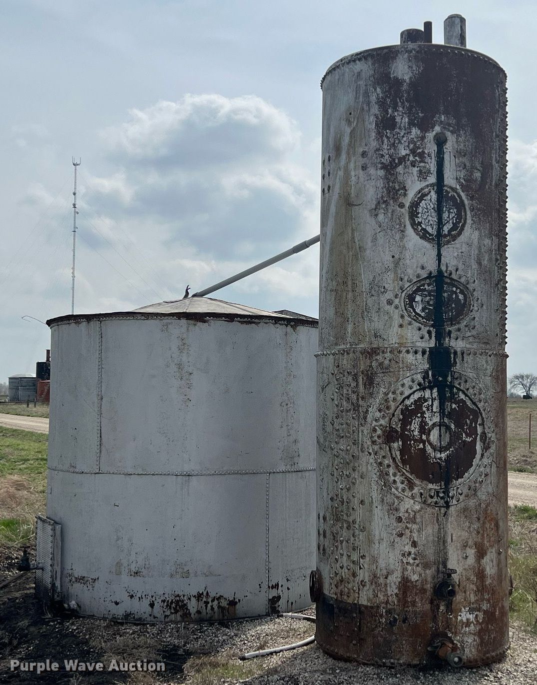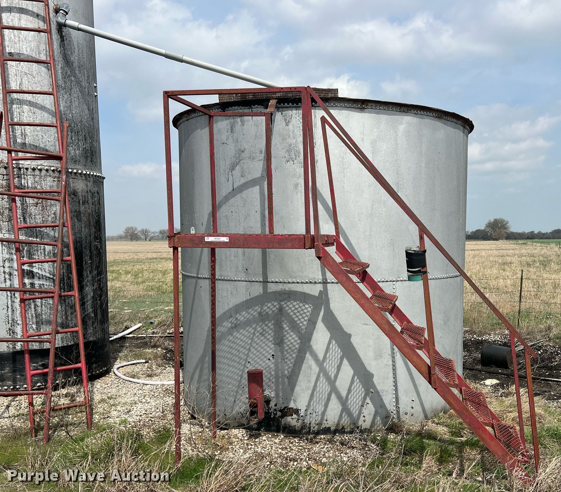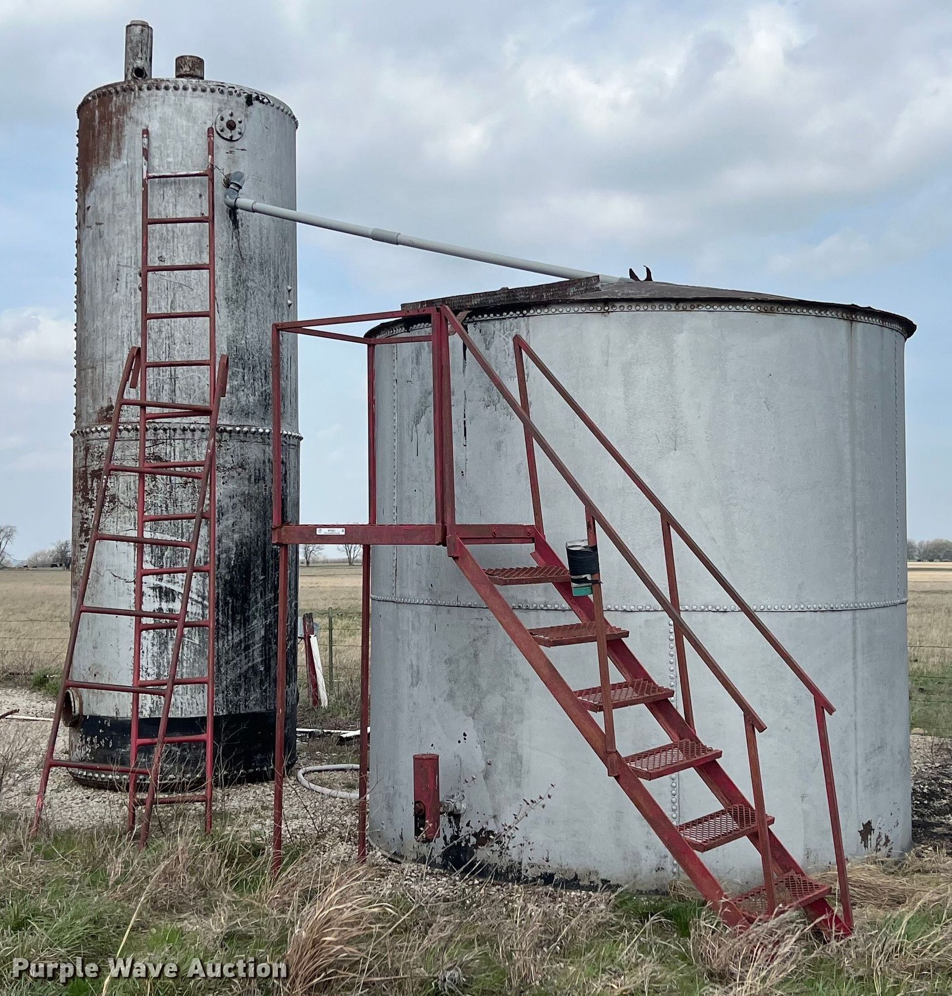 Purple Wave is selling a used Tanks in Kansas. This item is a (2) tanks with the following: Control #: 2023FP3-02 Beck, Metal gun barrel, Capacity: 50 barrels, Metal water tank, Capacity: 100 barrels