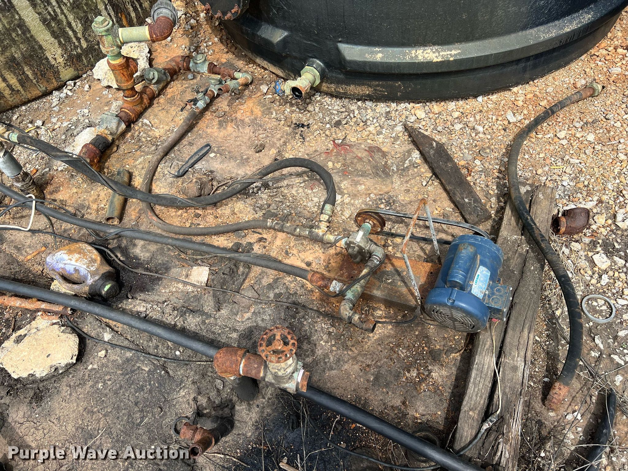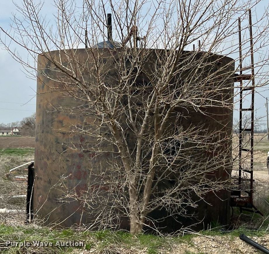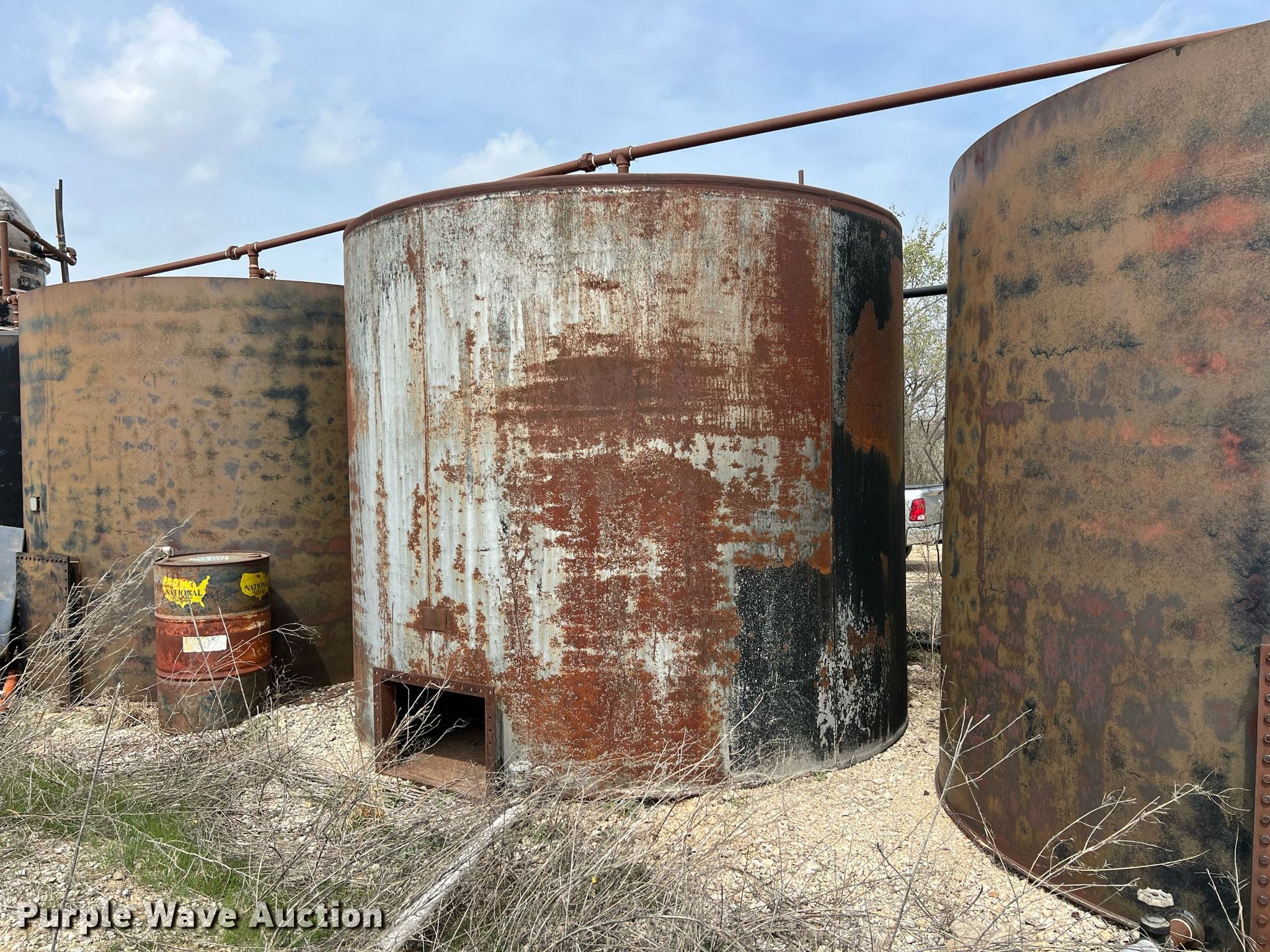 Purple Wave is selling a used Tanks in Kansas. This item is a (6) tanks with the following: Control #: 2023FP3-02 - White, (4) metal tanks, Capacity: 100 barrels, Fiberglass gun barrel, Capacity: 50 barrels, Fiberglass water tank, Capacity: 100 barrels, Transfer pump