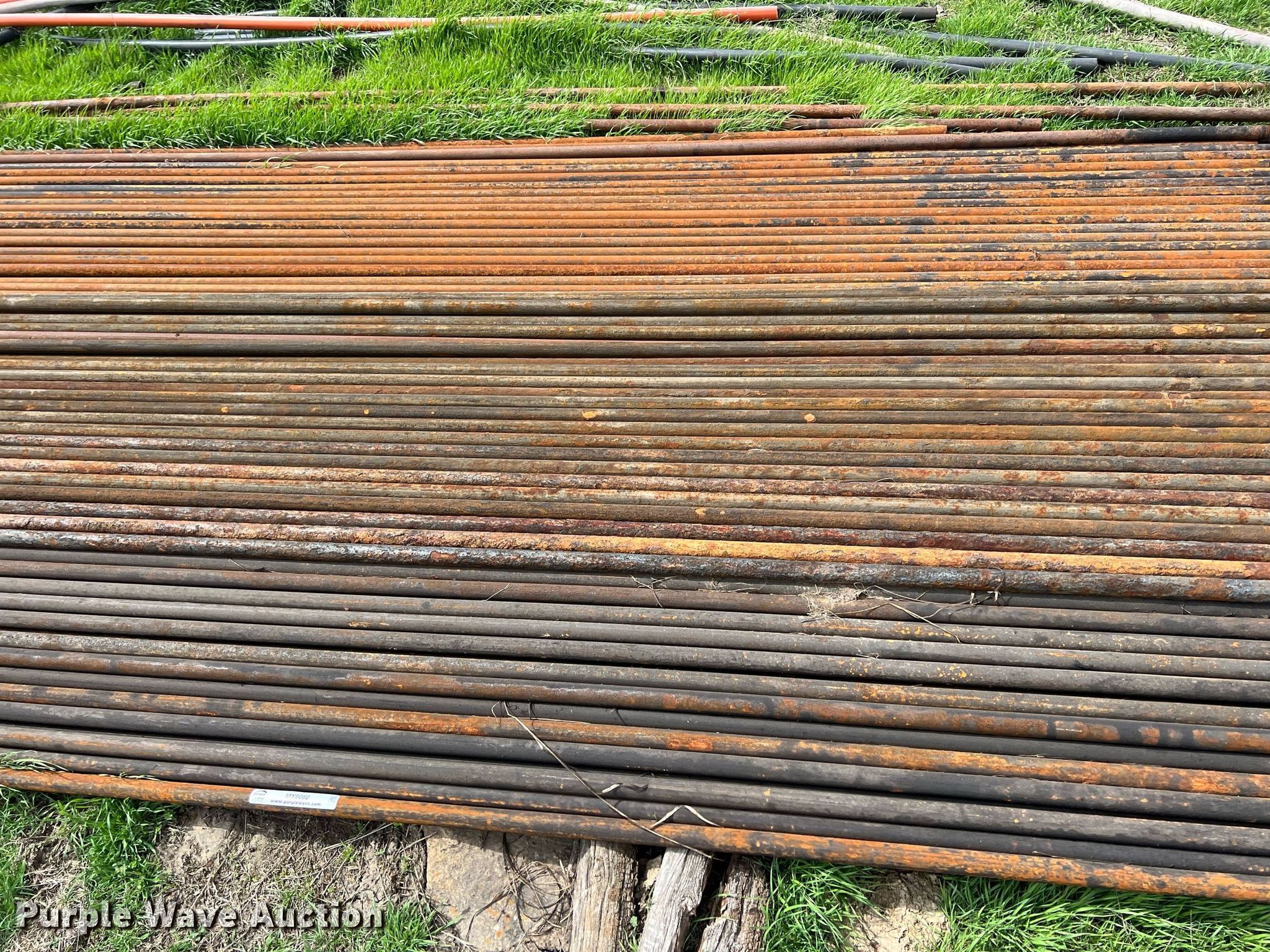 Oilfield pipe. Control #: 2023FP3-02 - Dulin, Approx. 140 joints of 30'L x 1" diameter pipes, Approx. 7 joints of 1" diameter pipes, Approx. 51 pieces of poly pipe. KCC Conservation Division Oilfield Salvage Disposal. Chanute, KS 66720