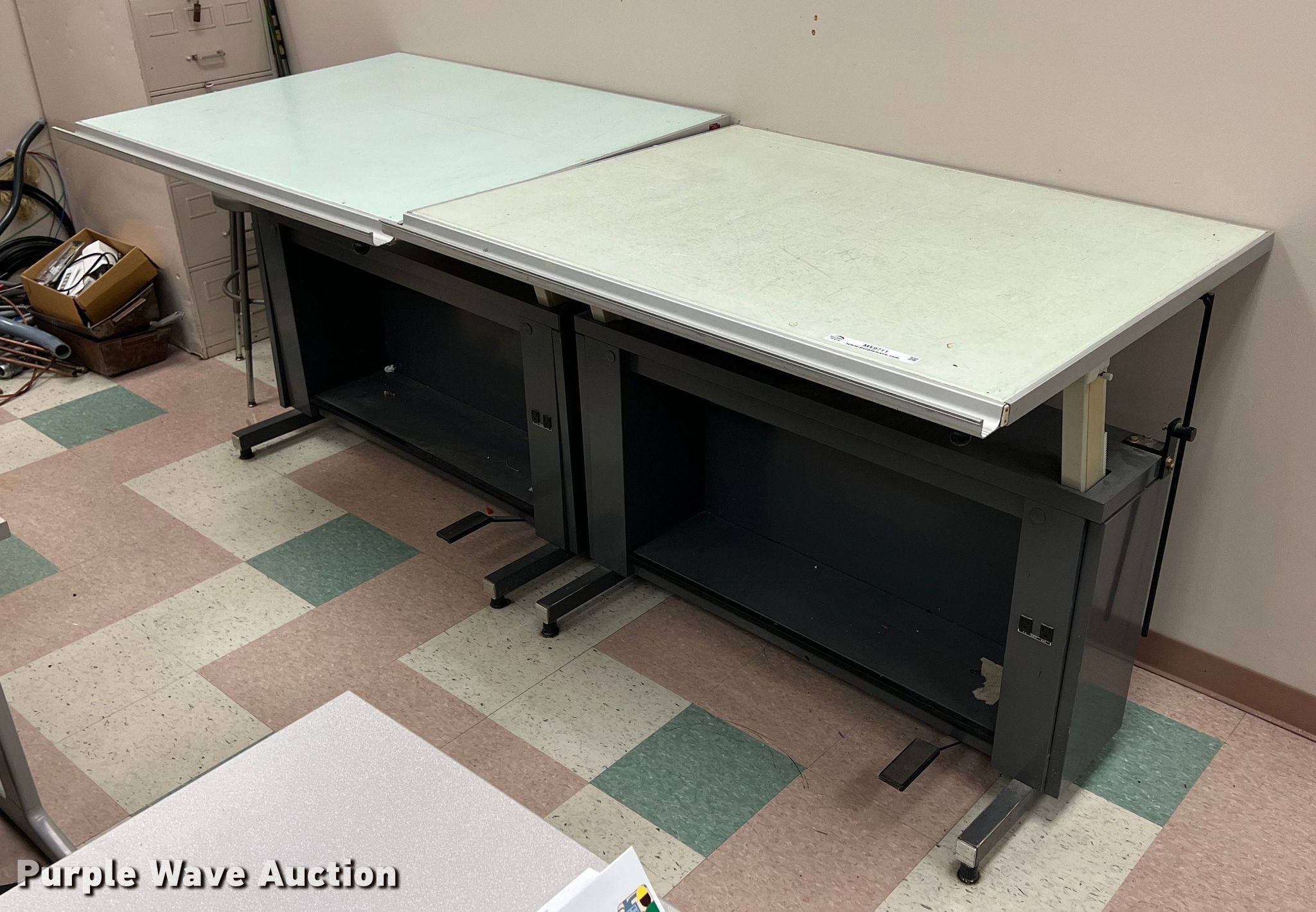 Purple Wave is selling a used Furniture in Kansas. This item is a (2) drafting tables with the following: 50" x 40"