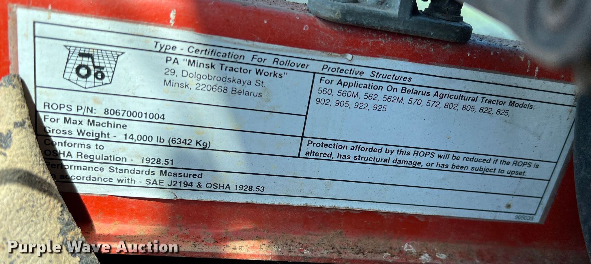 Purple Wave is selling a used Tractor in Oklahoma. This item is a Belarus 925 MFWD tractor with the following: Hours: 1,122 on meter, Serial: 401596