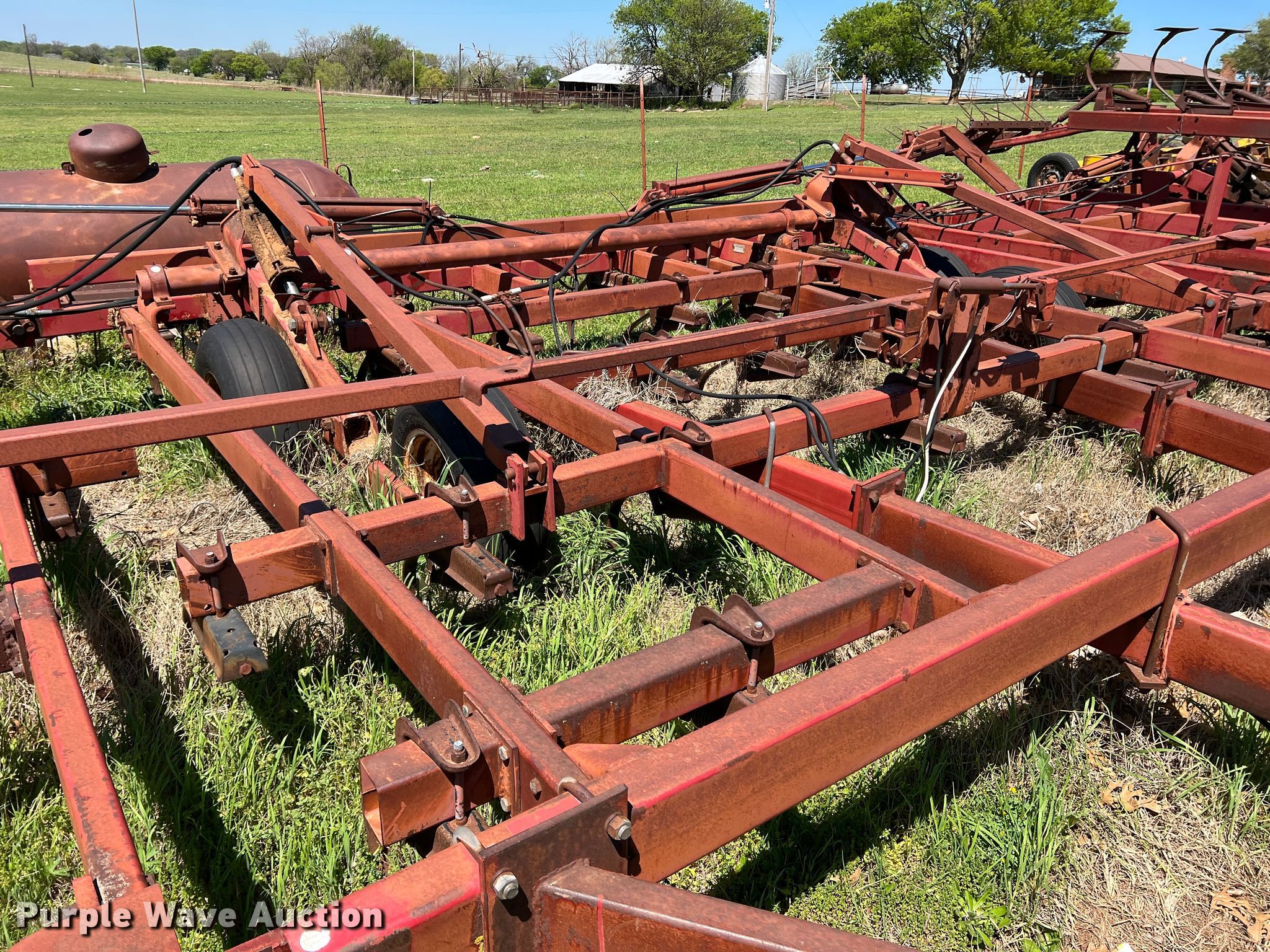 International field cultivator. Overall width: 42'. Features Shanks: 70, Sweep width: 9", Operation Hydraulic lift, Hydraulic fold, Attachments Tine harrow Harrow bars: 3.. Tires Tire size: 7.60-15. White Farms. 183455 N 2660 Rd. Walters, OK 73572