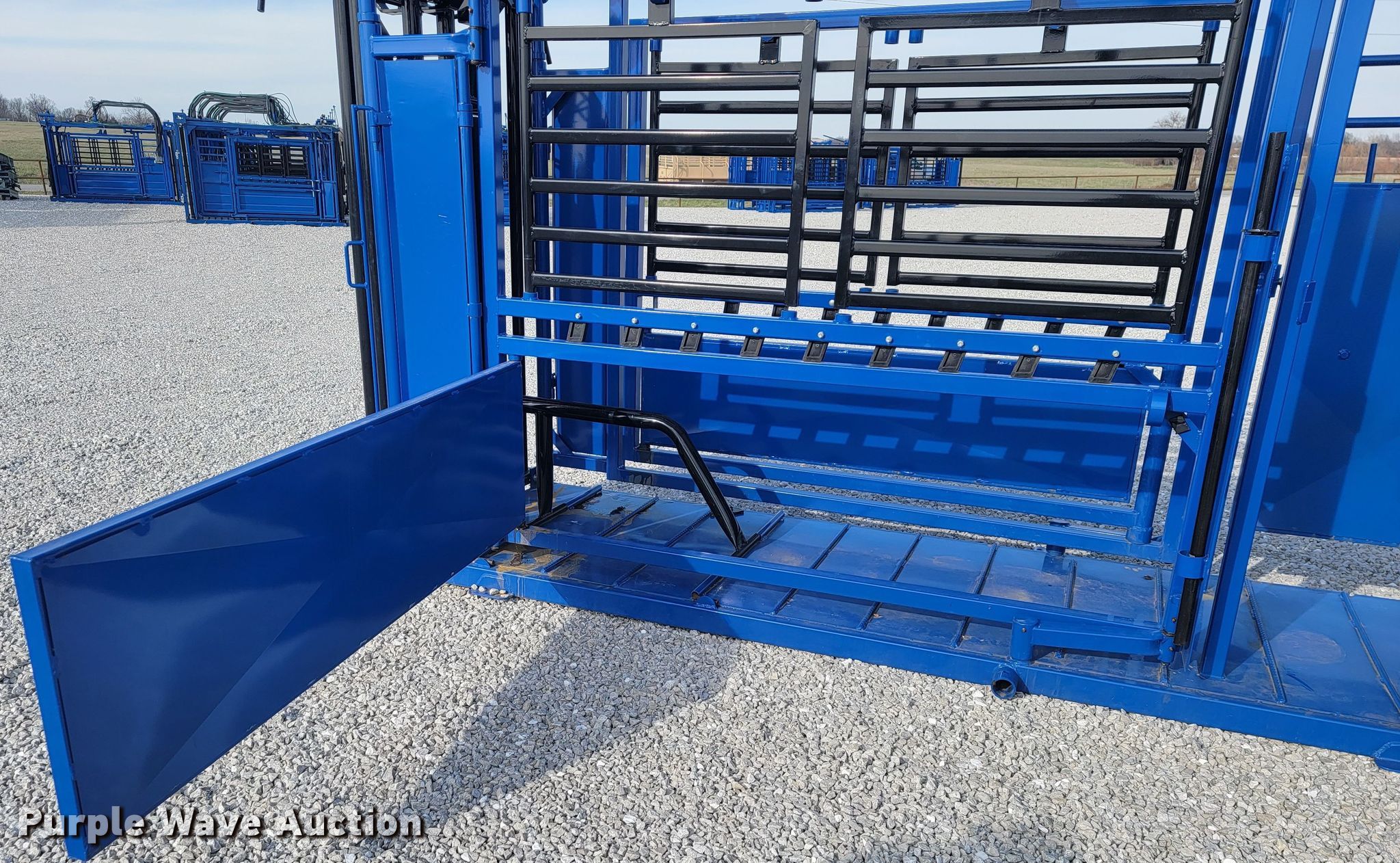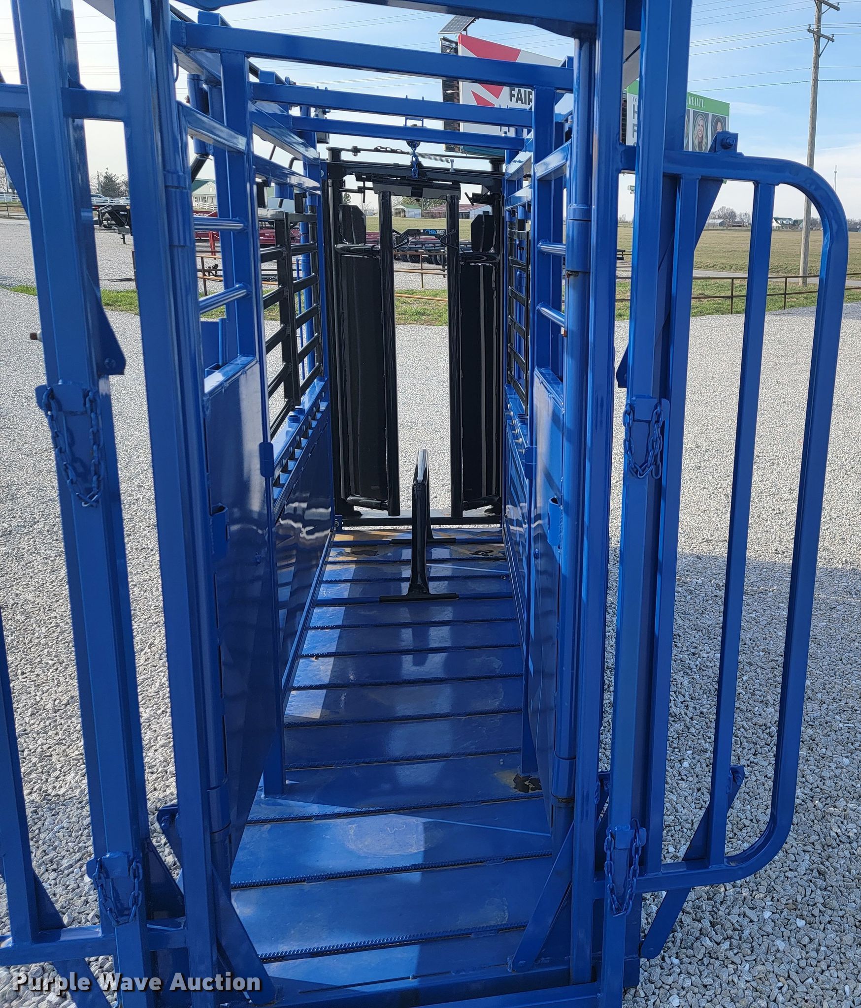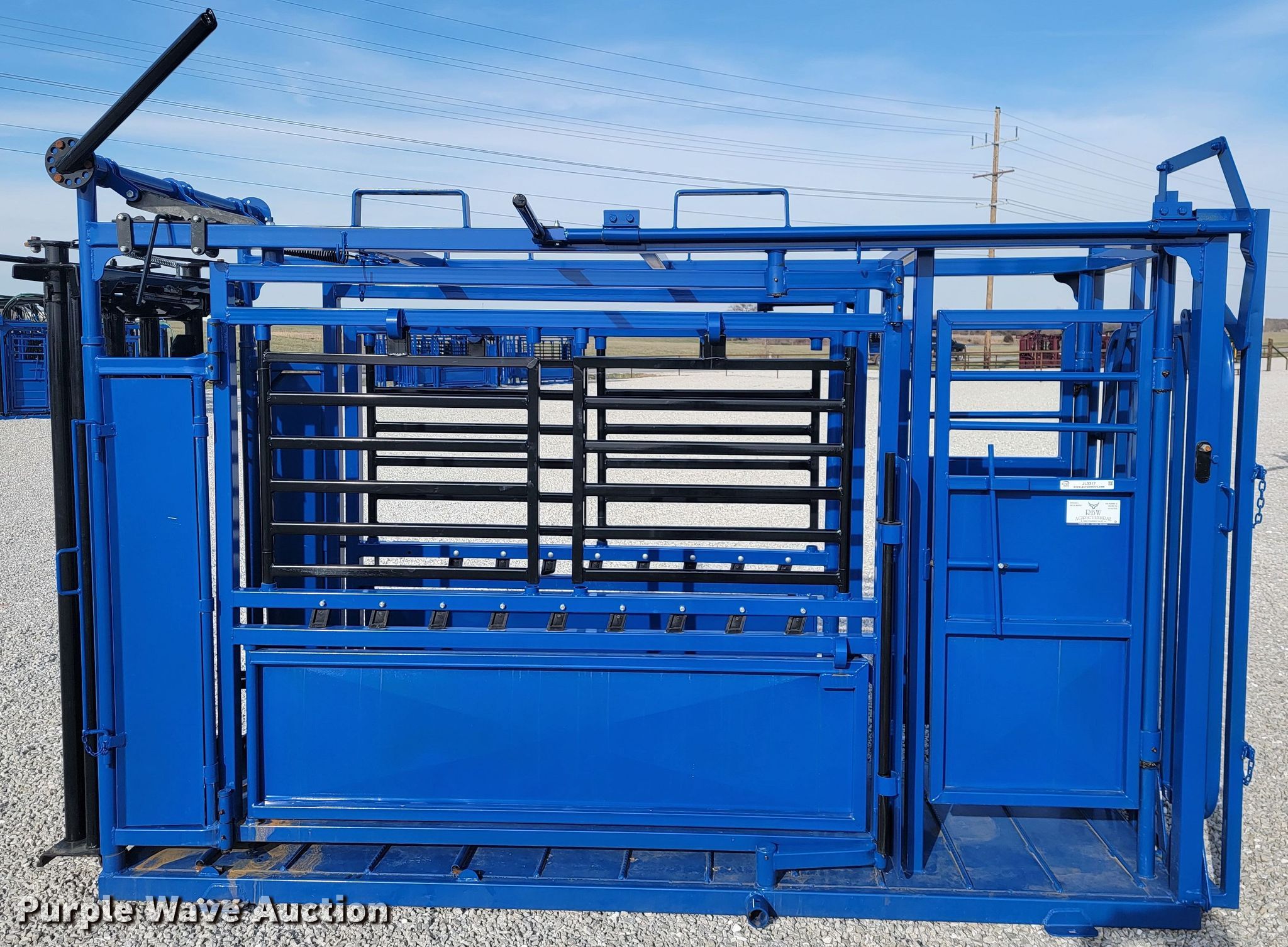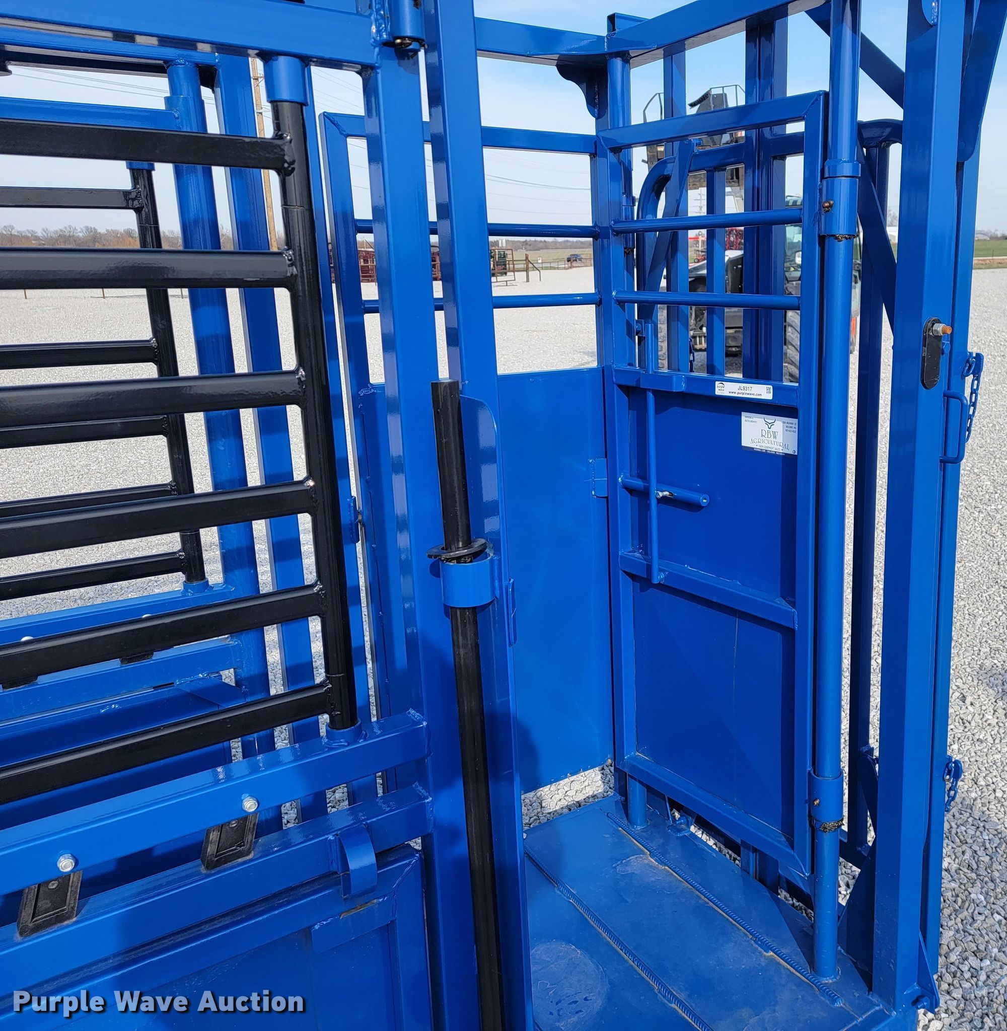 Purple Wave is selling a used Livestock Equip. in Missouri. This item is a Squeeze chute with the following: Automatic catch, Palpation station, Tailgate, Branding doors, Injection door