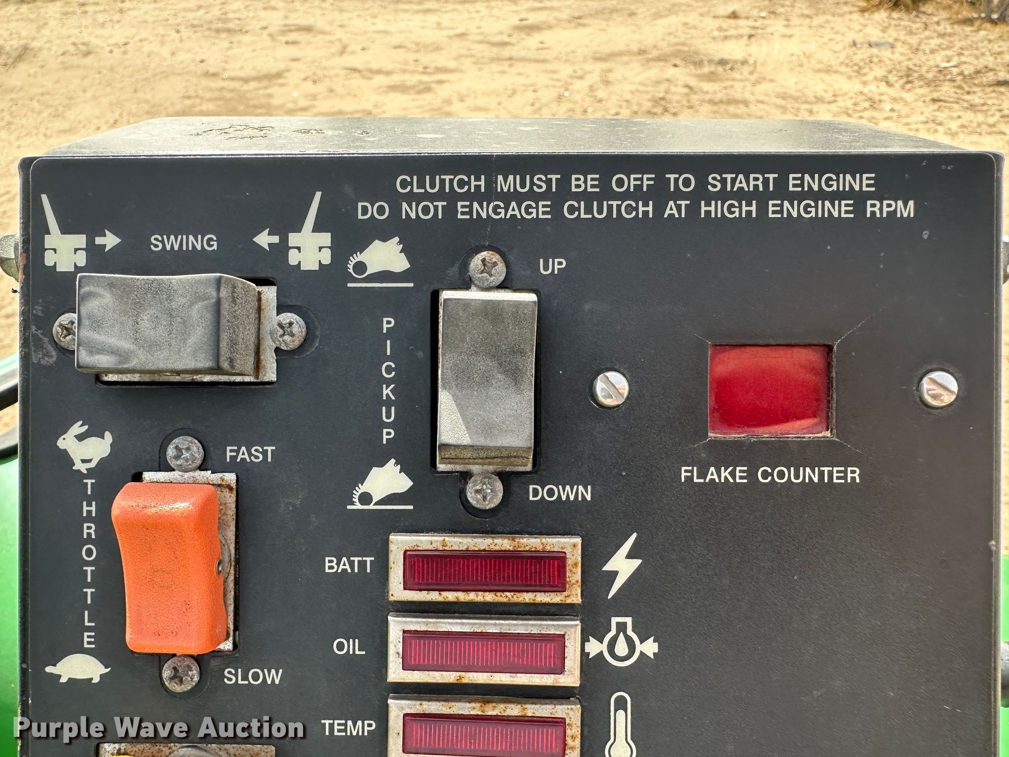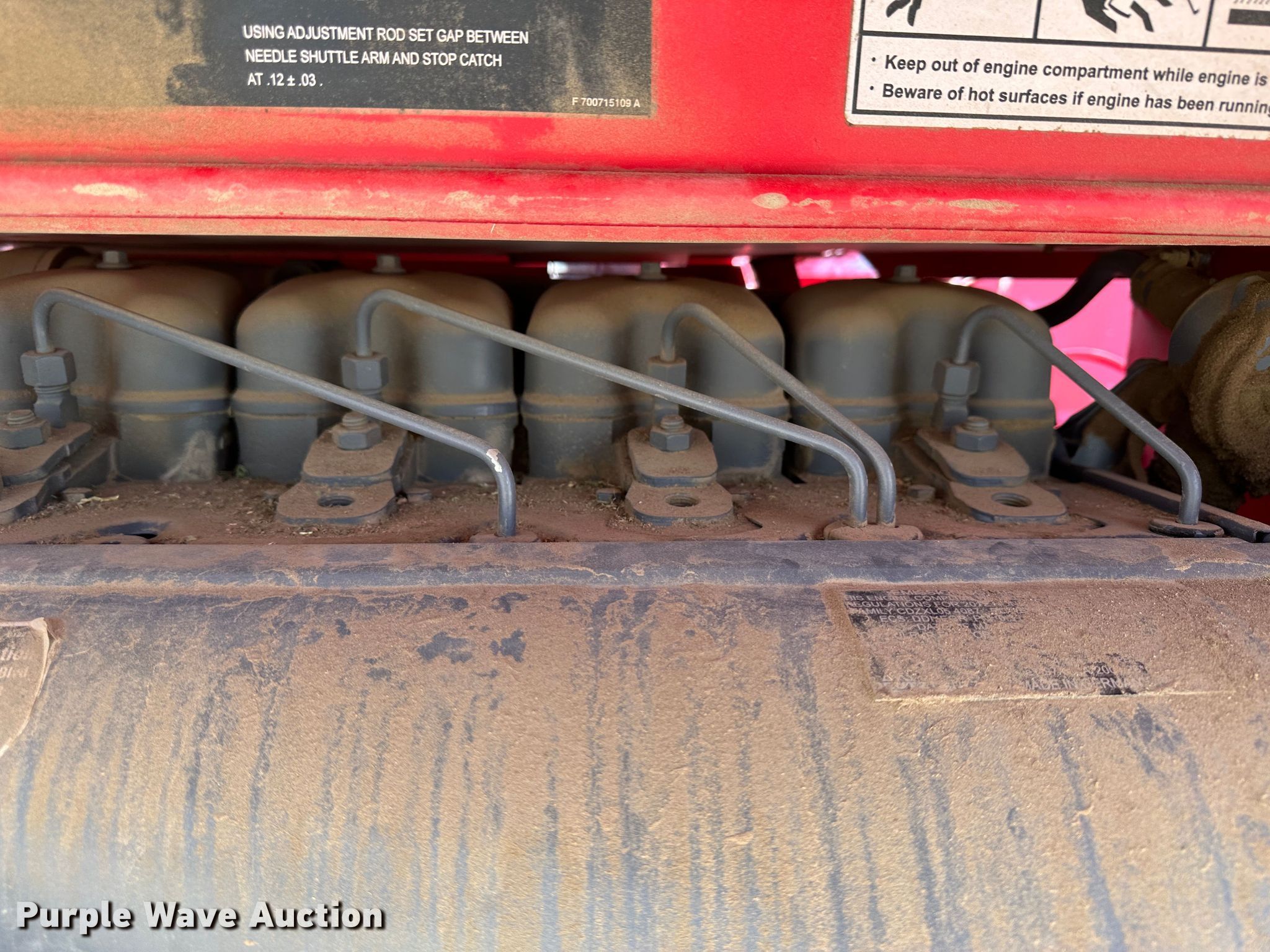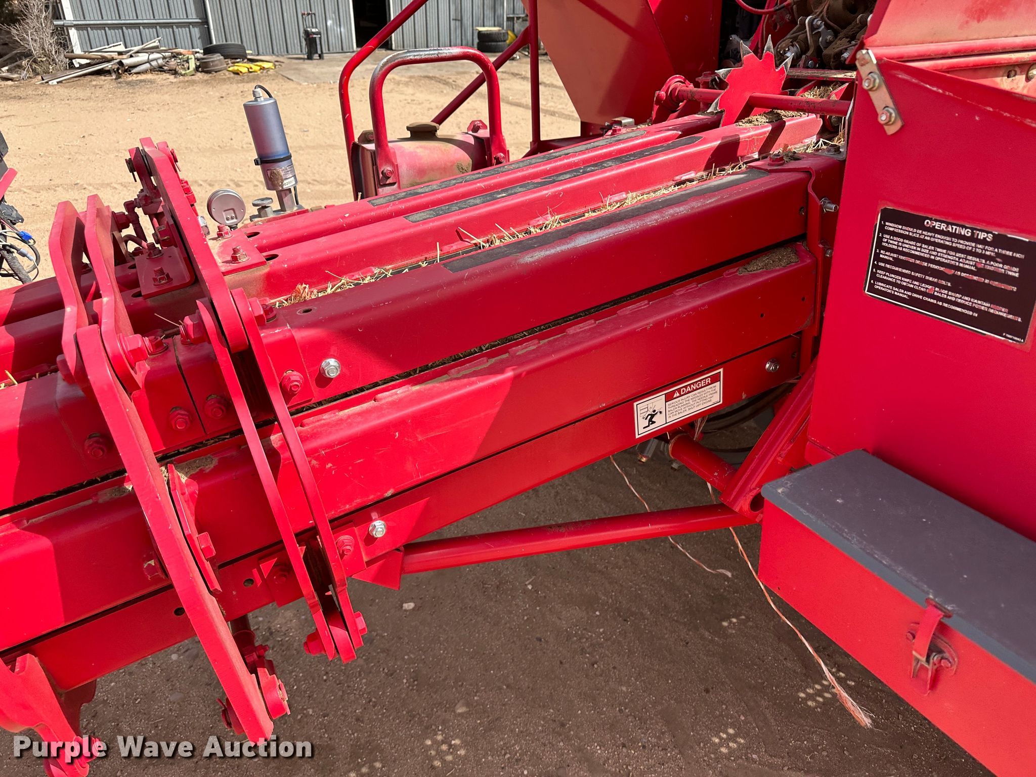 Massey Ferguson 1843S small square baler. Serial: AGCM1843SDHBS5220. Engine Deutz, Cylinders: 4, Fuel type: Diesel. Features Monitor, Transport lights, Pickup width: 6' 6", Hydraulic pickup lift, Small square bale size: 16"x18", Knotters Quantity: 3, Twine tie, Bale chute. Tires Size: 14L-16.1SL. 7150 S Co Rd 18. Garden City, KS 67846
