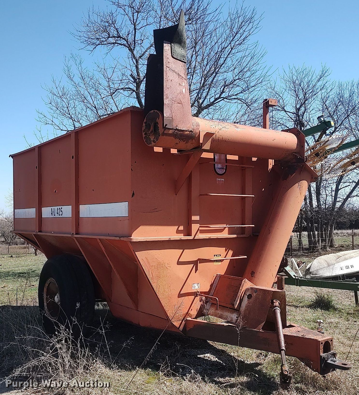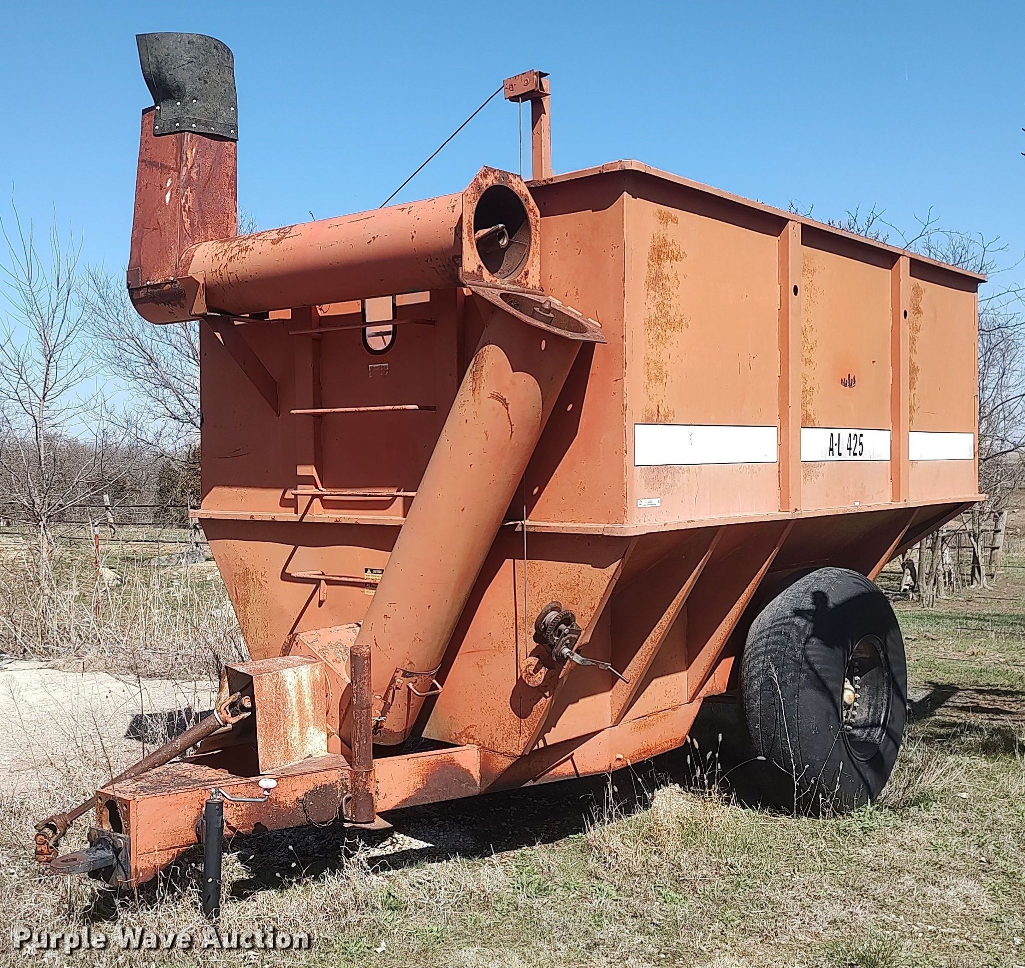Purple Wave is selling a used Grain Cart or Gravity Wagon in Kansas. This item is a A-L 425 grain cart with the following: Auger diameter: 12", Sight glass, PTO: 1 3/4" 1000