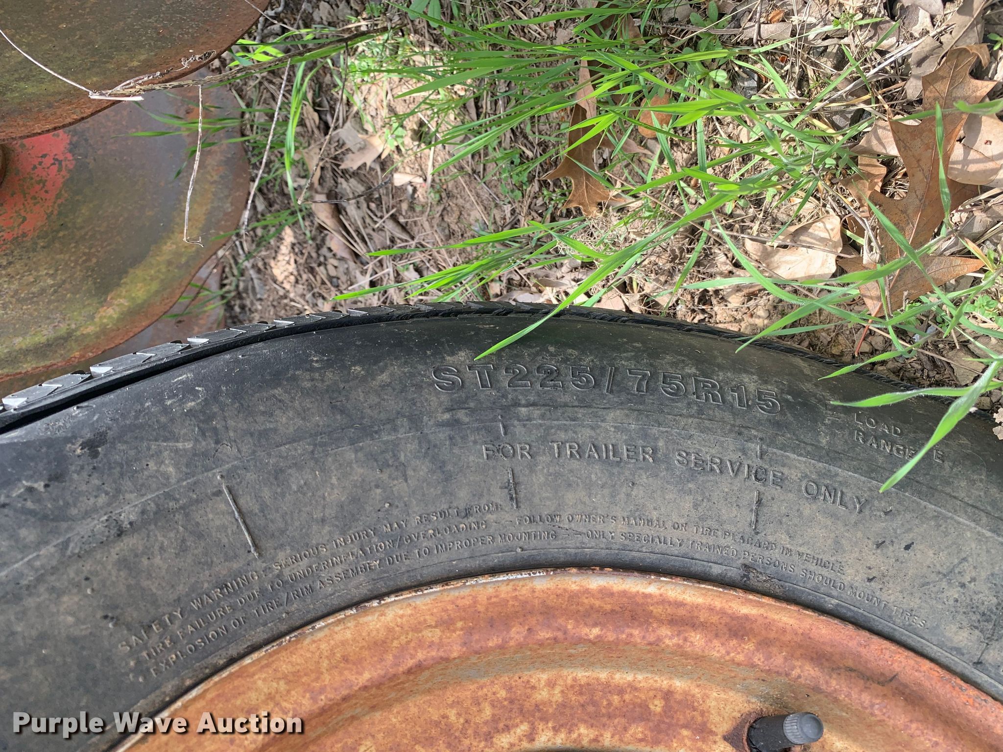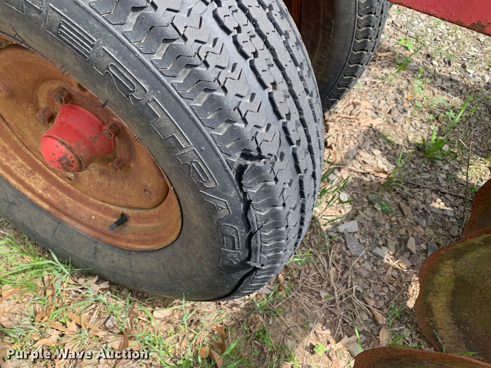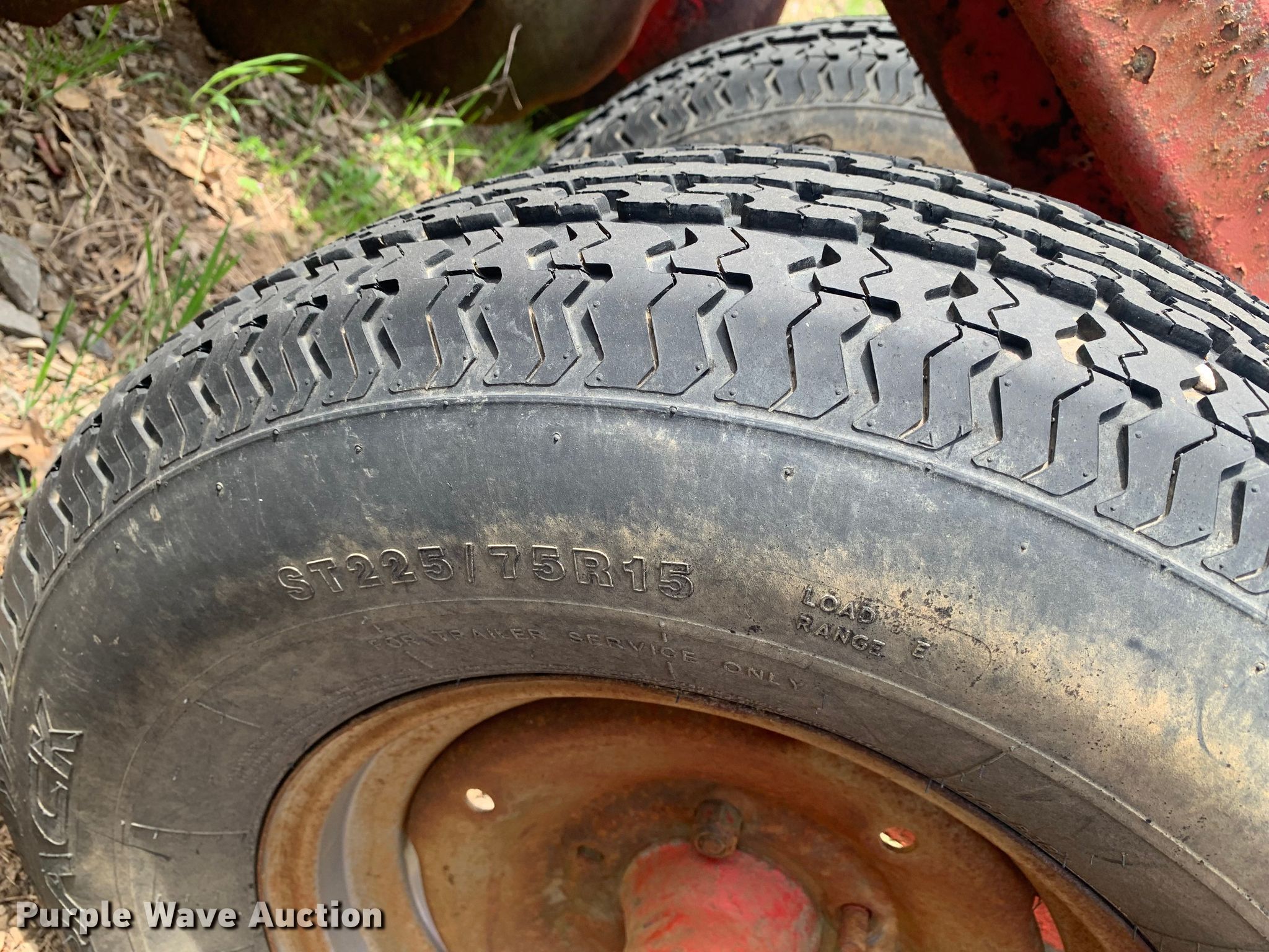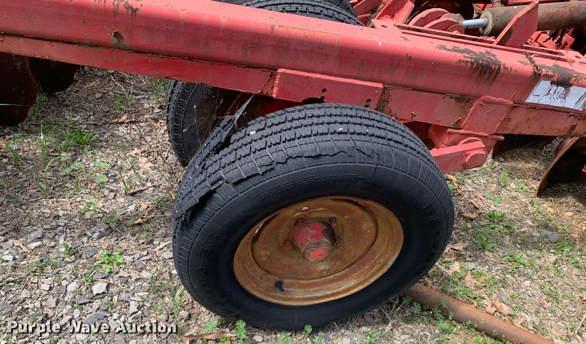 Bush Hog off-set disk. Overall width: 10'. Features Blade diameter Front: 20", Rear: 23", Spacing: 10.5", Disk scrapers, Operation Hydraulic lift. Tires Tire size: P215/70R15. Notes Flat tires. Don - Warren Cattle Company. 1503 Crowe Road. Lavaca, AR 72941