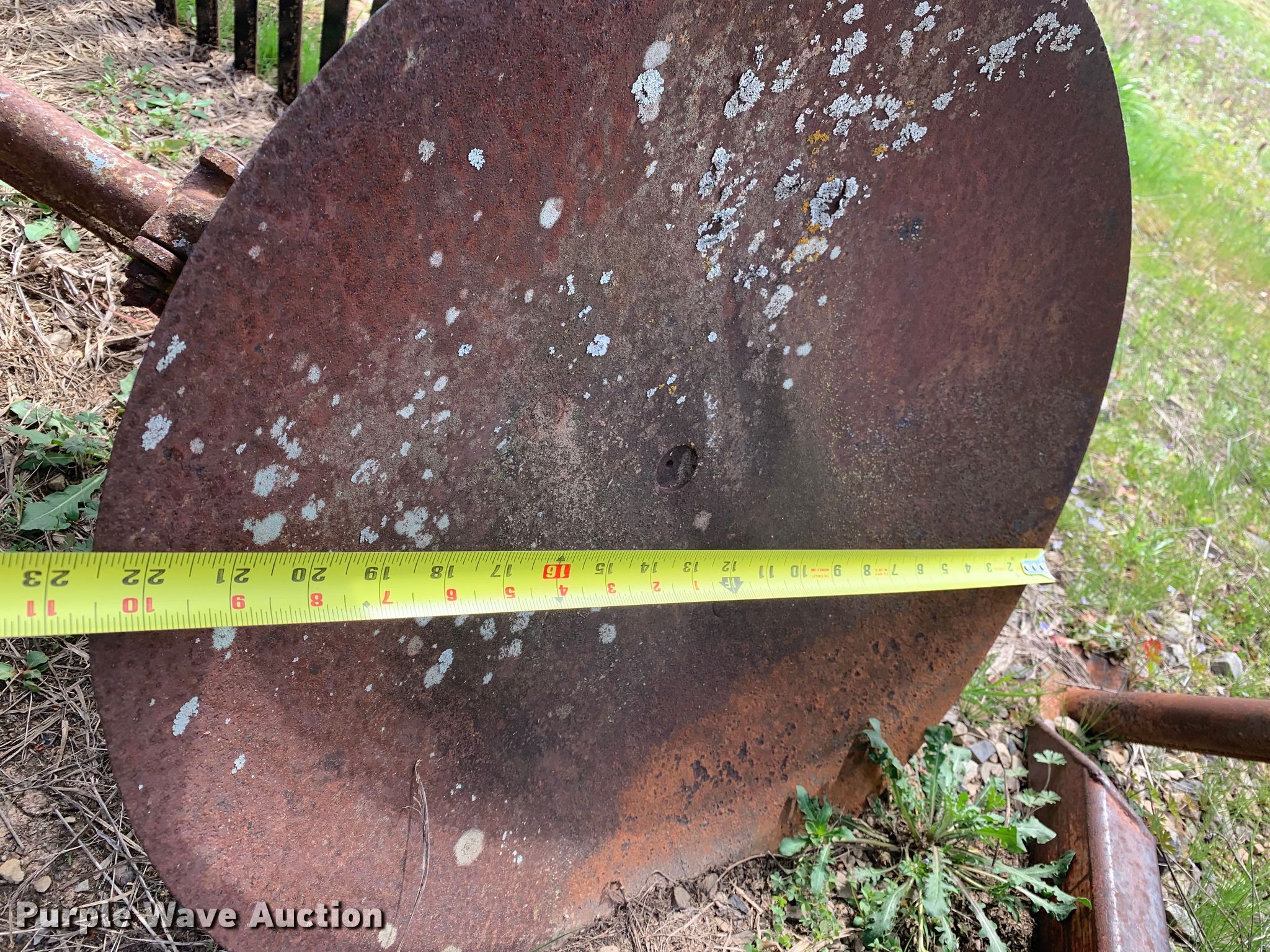 Ferguson PA020 two bottom turn plow. Overall width: 2', Serial: 3655. Features Hitch: Three point, Front disk: 22.5" , Middle disk: 22.5", Rear disk: 16". Don - Warren Cattle Company. 1503 Crowe Road. Lavaca, AR 72941