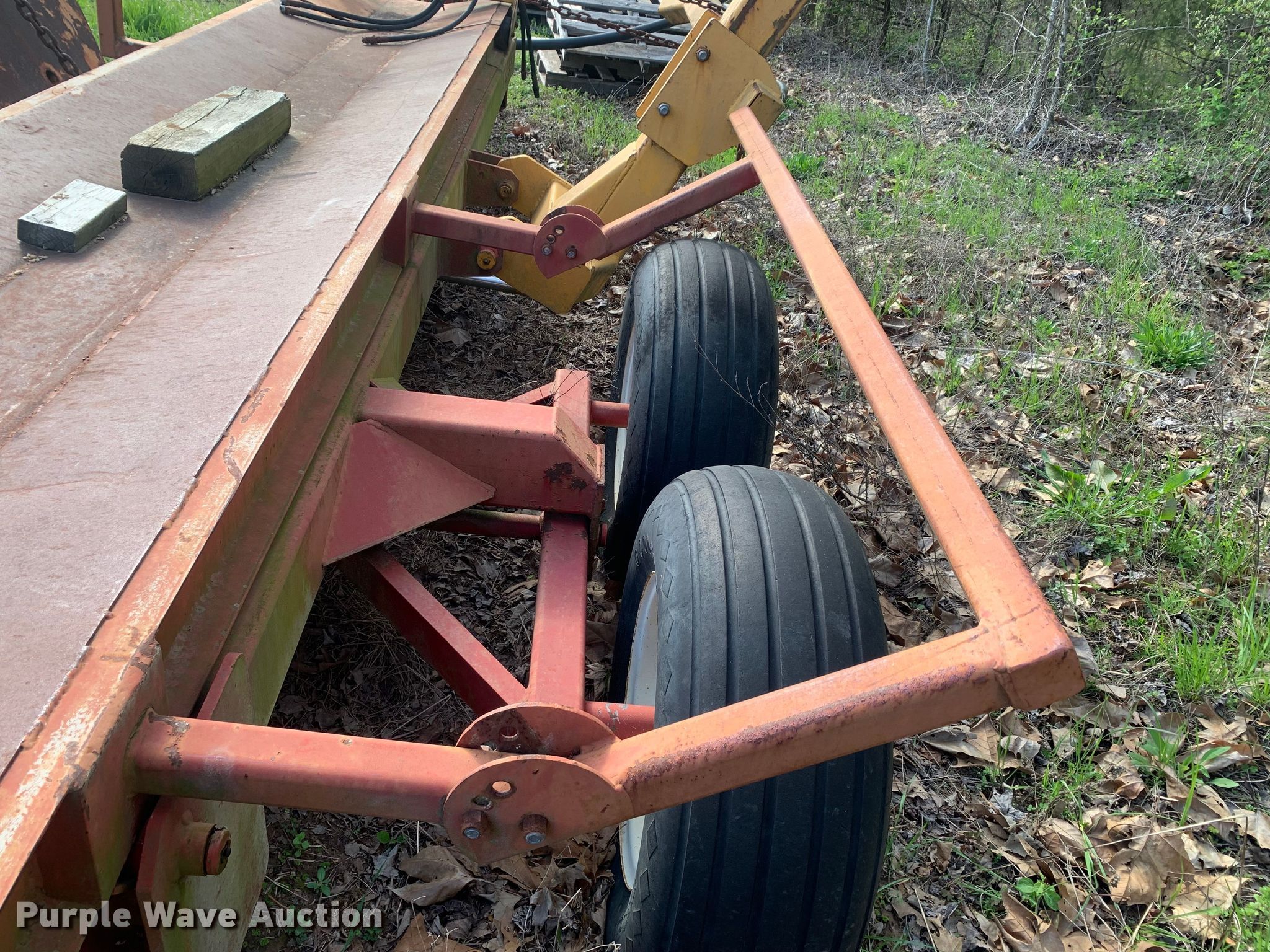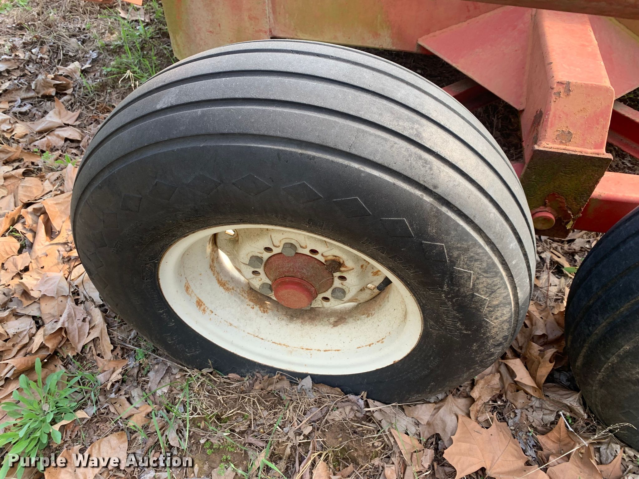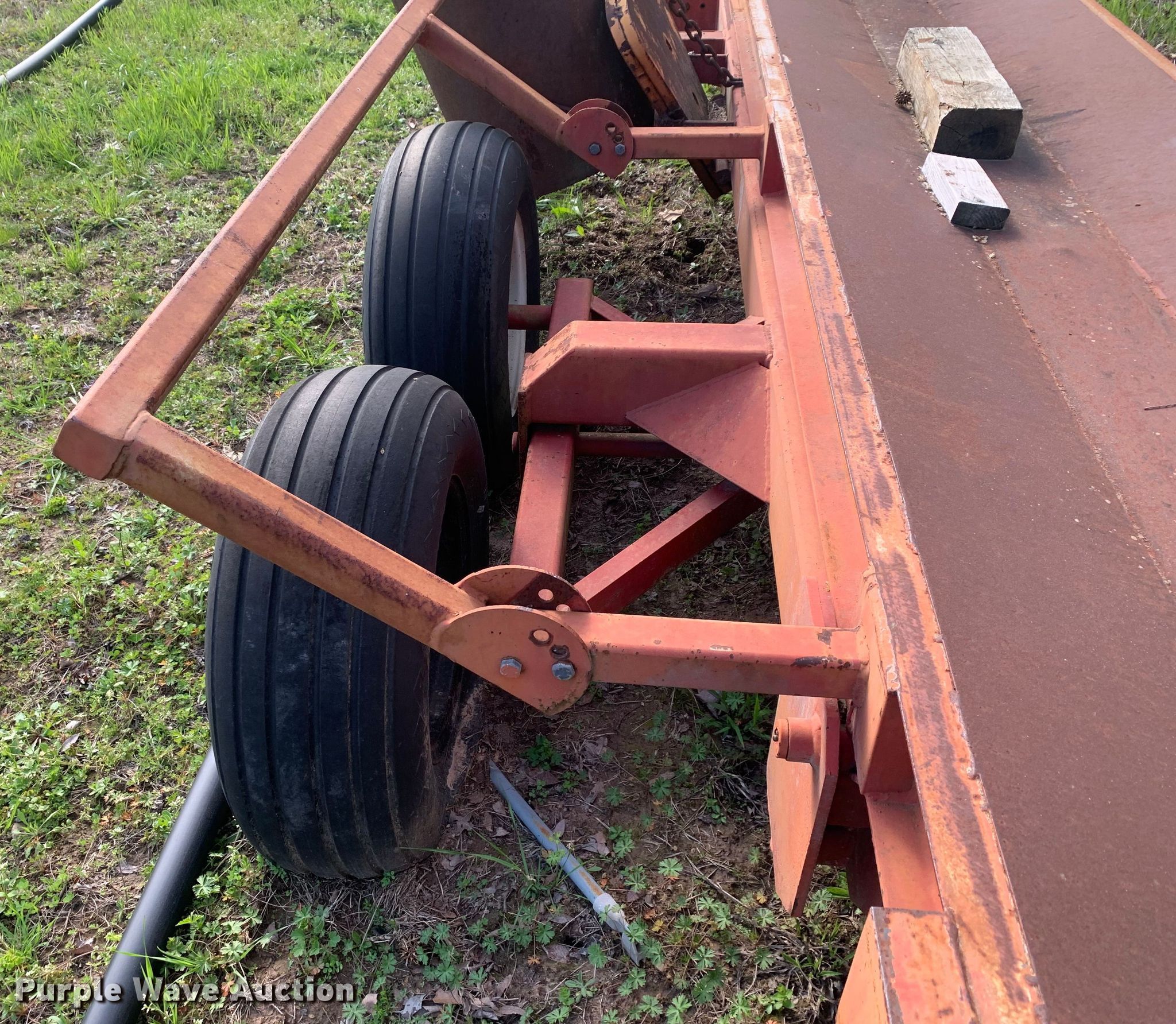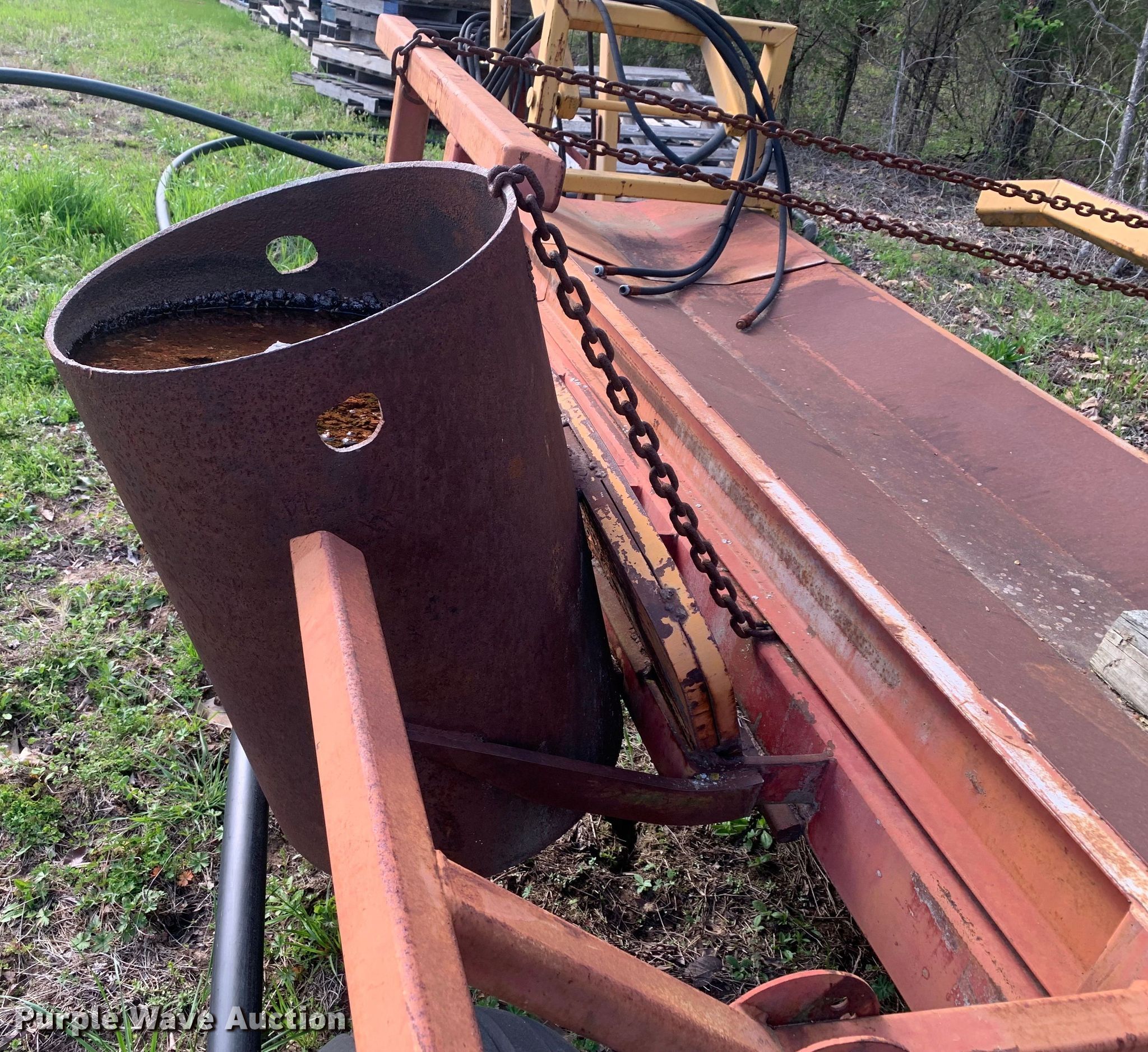 Techno-bale hay bale mover. Serial: 9FM10068. Dimensions Overall: 21' L x 6'10" W, Deck: 15' 3" L x 3' W. Features Counter weight, Hydraulic loaders. Tires Size: 11L-15. Don - Warren Cattle Company. 1503 Crowe Road. Lavaca, AR 72941
